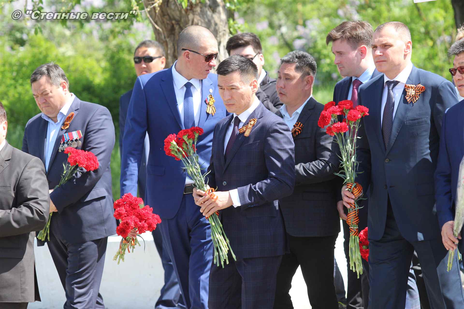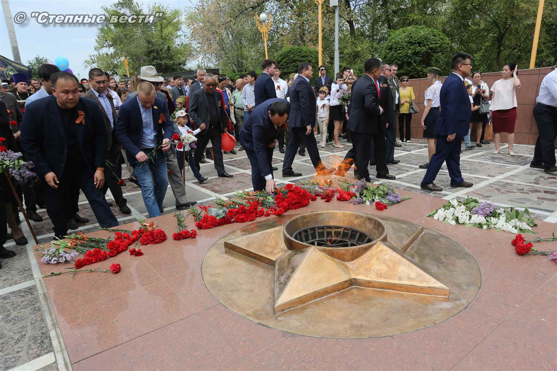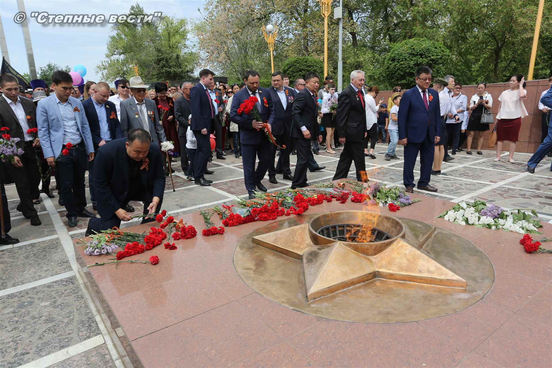 В Элисте состоялся торжественный митинг-шествие, посвященный 74-й годовщине Победы в Великой Отечественной войне 1941-1945 годов. В праздничном мероприятии приняли участие руководители органов власти Калмыкии во главе с временно исполняющим обязанности главы республики Бату Хасиковым, ветераны Великой Отечественной войны, делегации федеральных, республиканских министерств, ведомств и бюджетных учреждений, муниципальных организаций Элисты, а также представители общественных объединений.