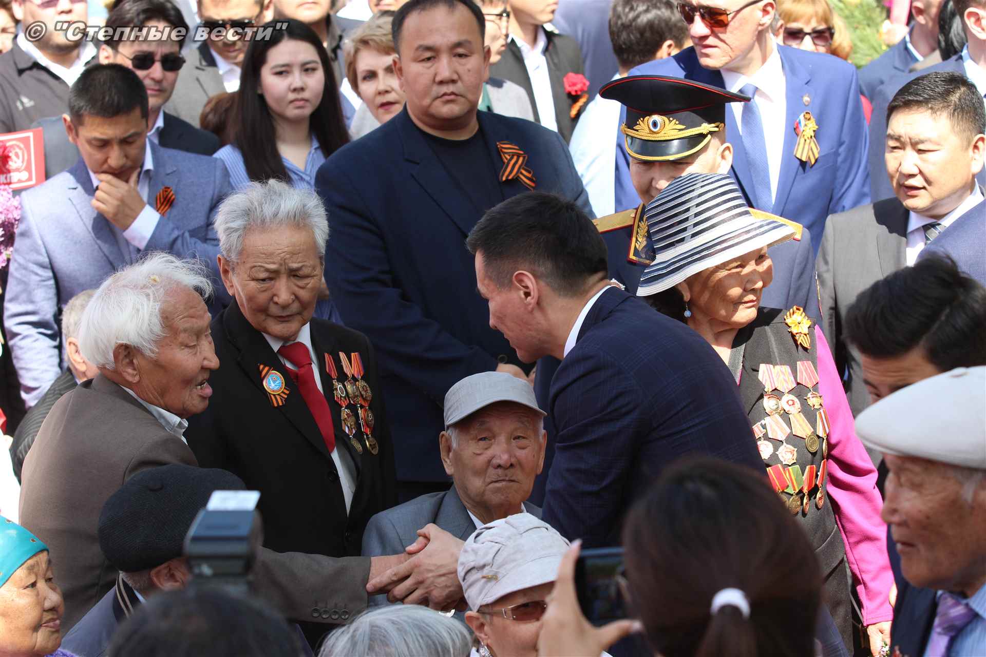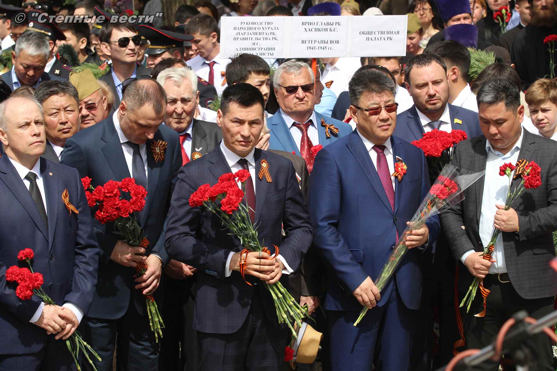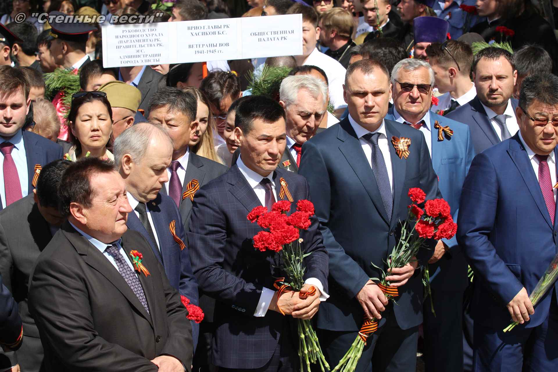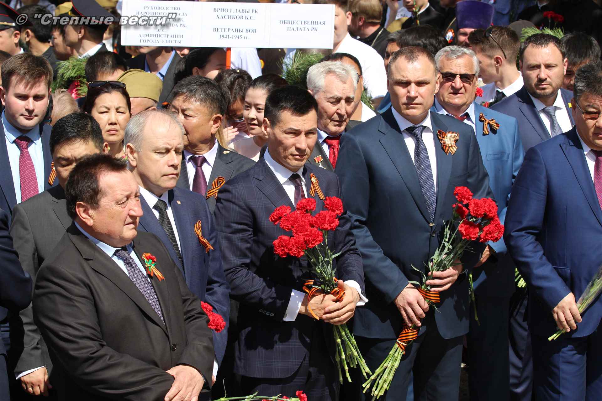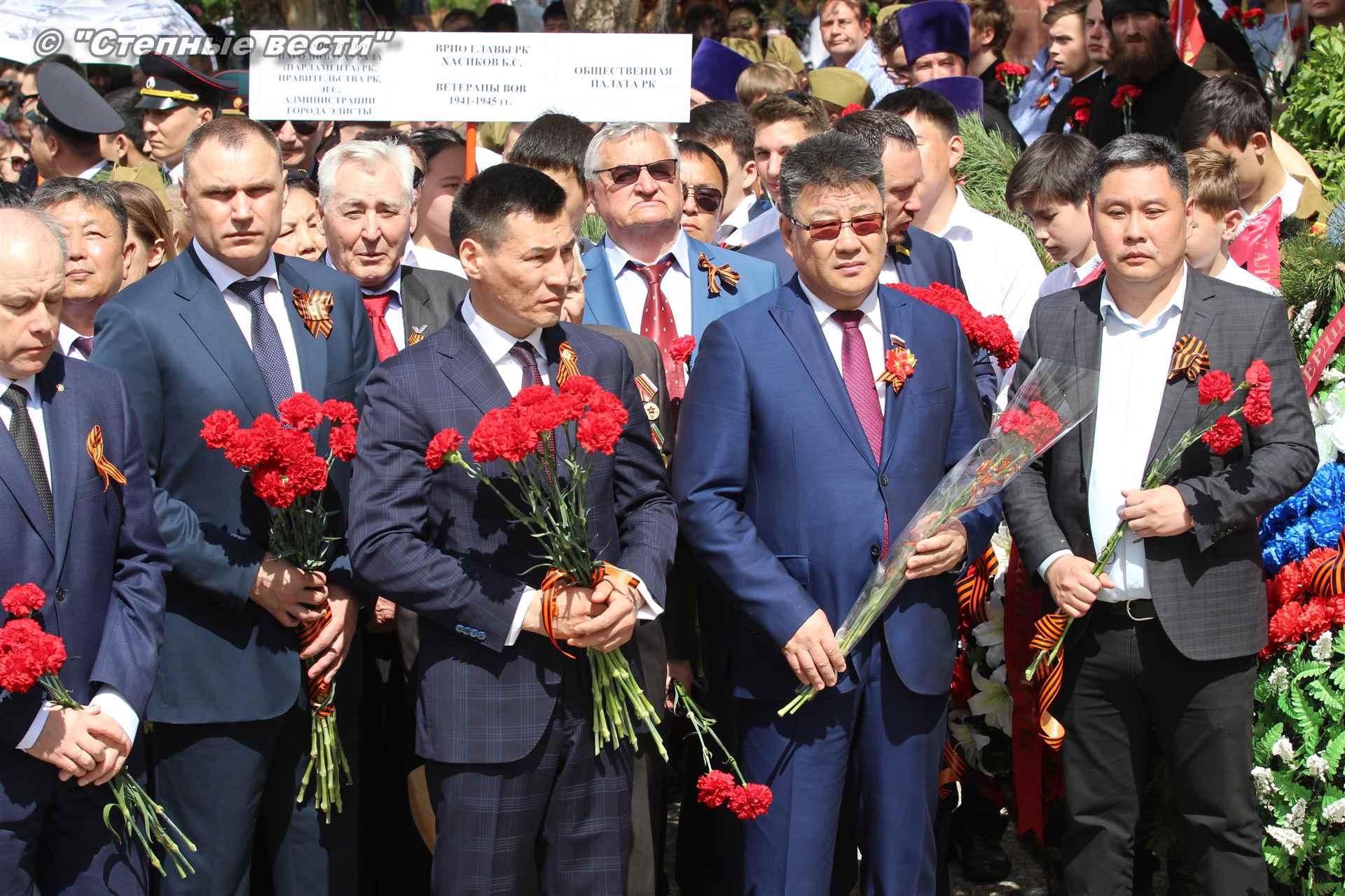 С приветствием к собравшимся на митинге обратился руководитель республики Бату Хасиков. «Для всех нас это поистине Великая Победа, — отметил он в своем выступлении. – В 1942 году советский народ принял большой удар от непримиримого врага. На территории нашей страны проходили такие крупные сражения, которые смогли переломить ход войны, как Курская, Сталинградская битвы. Именно советские солдаты сумели поставить бескомпромиссную точку в войне. Более 30 тысяч уроженцев Калмыкии сражалось на поле битвы, из них более восьми тысяч человек награждены орденами и медалями. 23 наших солдата стали Героями Советского Союза. Мы чтим память о том подвиге. Память о тех, кто не вернулся с войны. Это наш общий долг. Низкий поклон Вам, ветераны!».