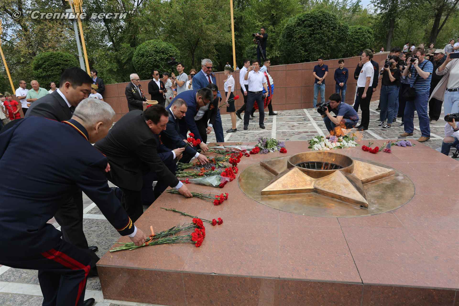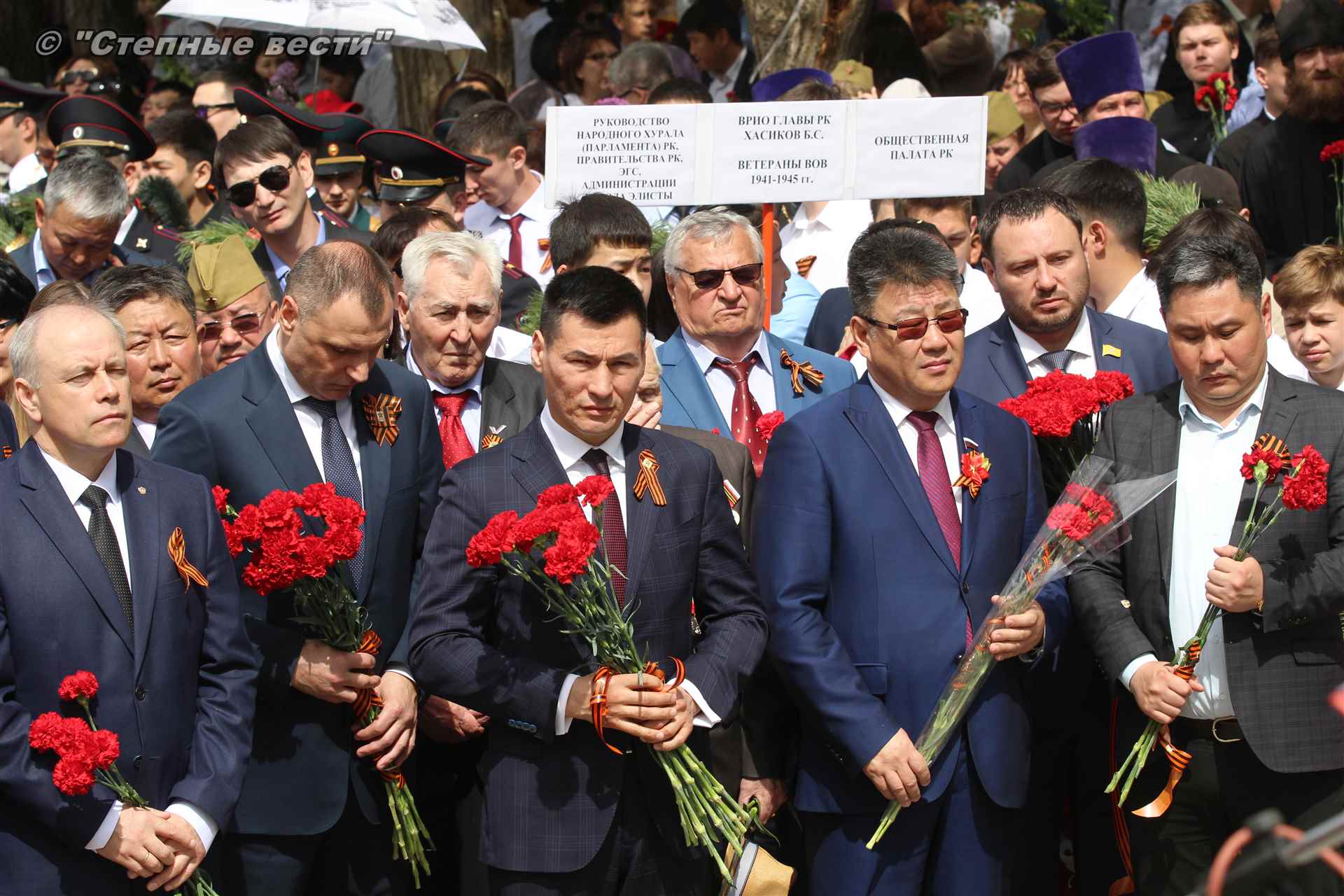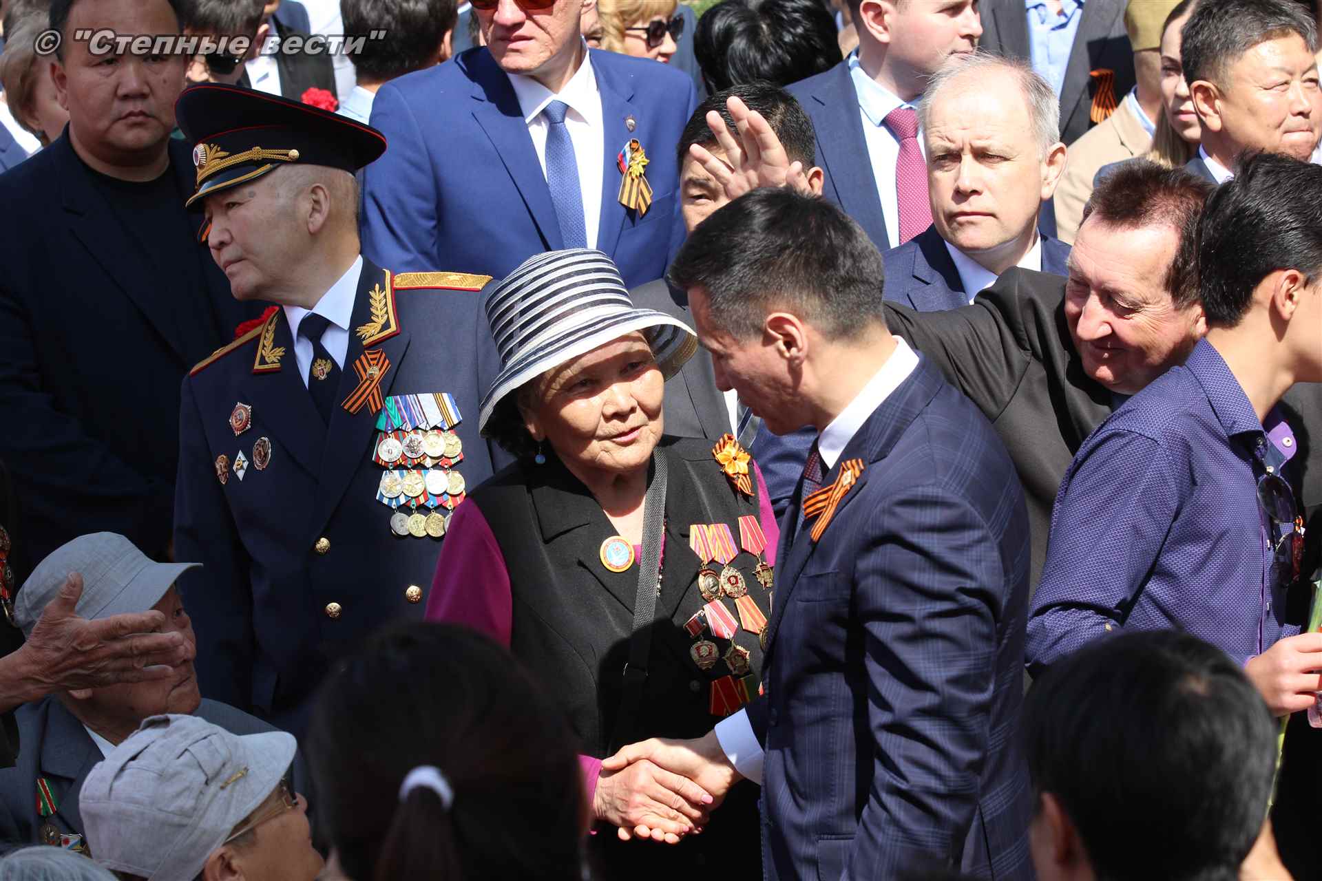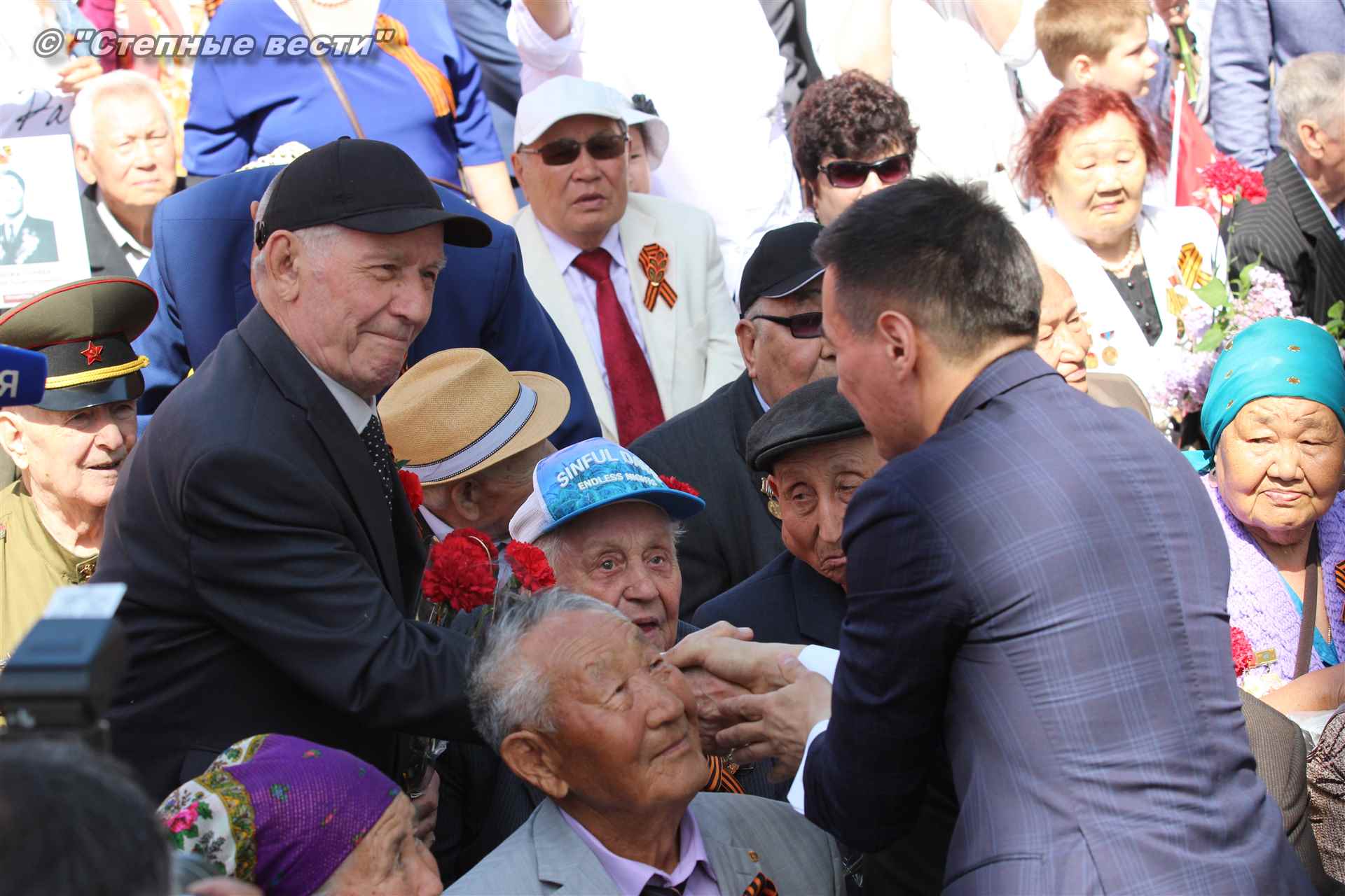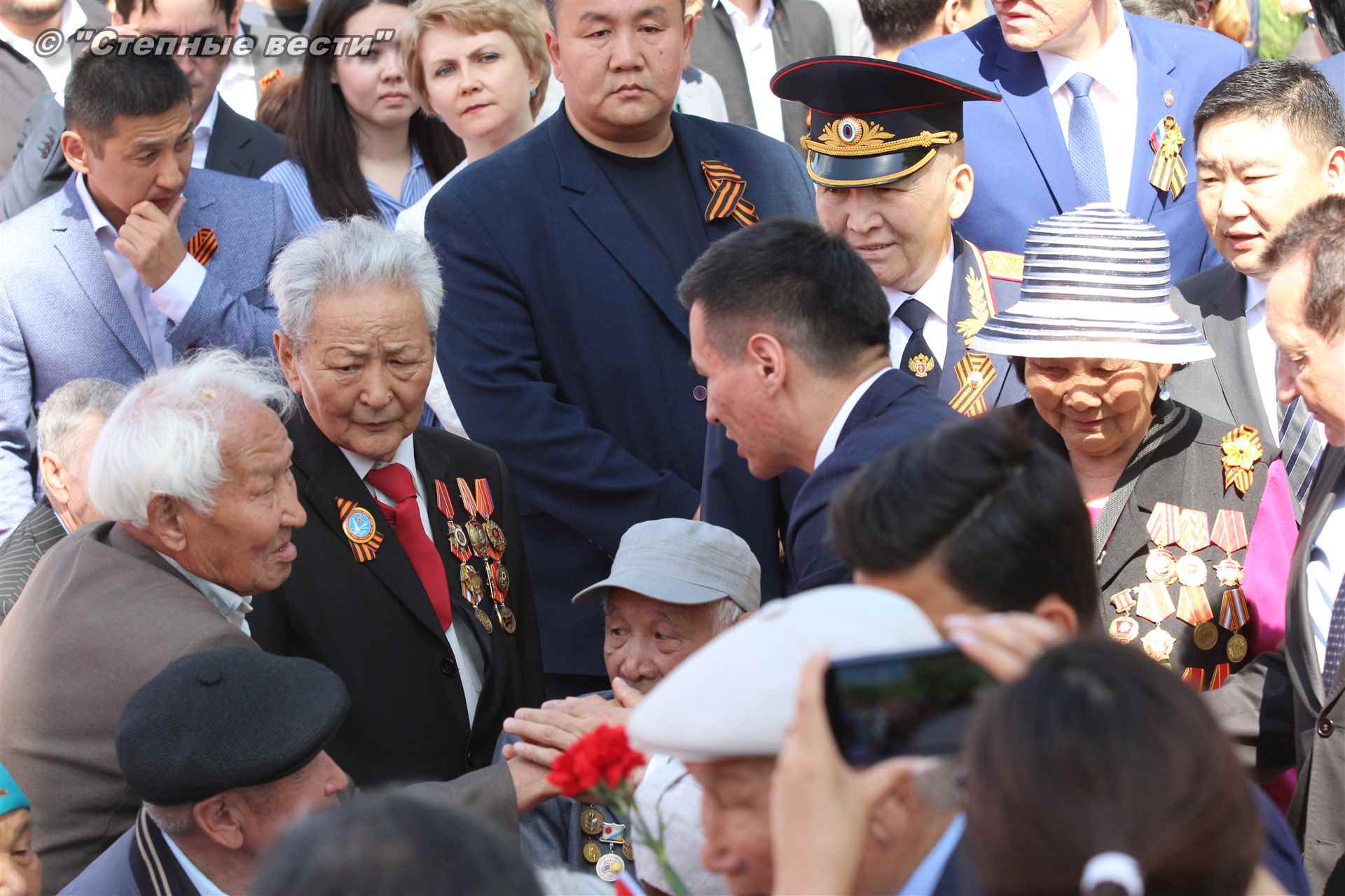 С приветствием к собравшимся на митинге обратился руководитель республики Бату Хасиков. «Для всех нас это поистине Великая Победа, — отметил он в своем выступлении. – В 1942 году советский народ принял большой удар от непримиримого врага. На территории нашей страны проходили такие крупные сражения, которые смогли переломить ход войны, как Курская, Сталинградская битвы. Именно советские солдаты сумели поставить бескомпромиссную точку в войне. Более 30 тысяч уроженцев Калмыкии сражалось на поле битвы, из них более восьми тысяч человек награждены орденами и медалями. 23 наших солдата стали Героями Советского Союза. Мы чтим память о том подвиге. Память о тех, кто не вернулся с войны. Это наш общий долг. Низкий поклон Вам, ветераны!».