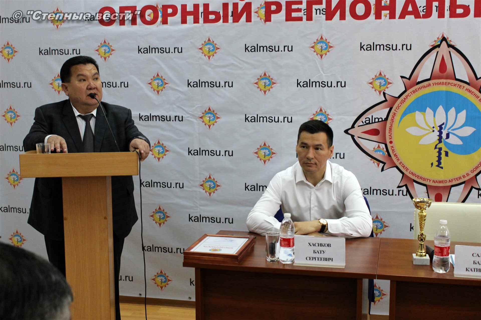 «Калмыцкий государственный университет — это гордость Калмыкии, и в этом заслуга всех вас, — сказал Бату Сергеевич, обращаясь к преподавателям и студентам. — О достижениях главного вуза республики, о его ответственном отношении к работе, выполняемой в качестве опорного университета, о том, какие строит планы, наслышаны в федеральном отраслевом министерстве, это ценят на федеральном уровне.