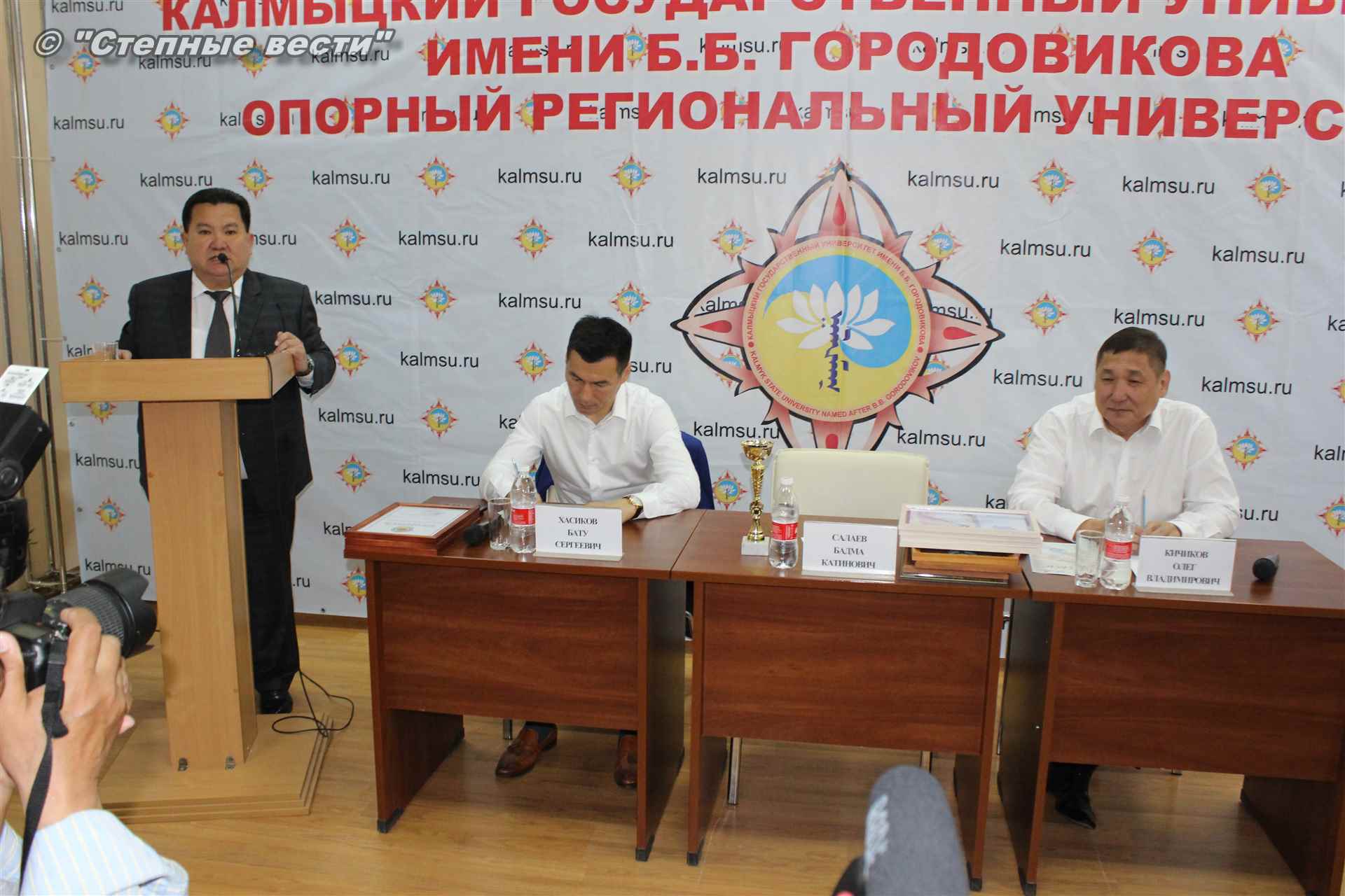 Рассказывая об этом на встрече в стенах родного учреждения, Бадма Салаев, отметил, что состоявшийся в Москве второй раунд переговоров относительно планов развития нашего университета велся в контексте подготовки его грядущего полувекового юбилея и другой знаменательной даты — 100-летия национальной автономии калмыцкого народа. И обсуждавшиеся там вопросы был очень важным моментом для определения его дальнейшей судьбы как регионального опорного вуза. В сентябре состоится заседание координационного совета Министерства науки и высшего образования РФ, на котором будет решаться вопрос о том, каким из созданных в стране опорных университетов будут развиваться как центры инновационного, технологического и социального развития, ориентированные на качественную подготовку востребованных на региональном рынке труда специалистов и разработку технологий. Попасть в число вузов, кому будет доверена реализация данного приоритетного направления – для нас важнейшая задача, подчеркнул ректор КалмГУ.