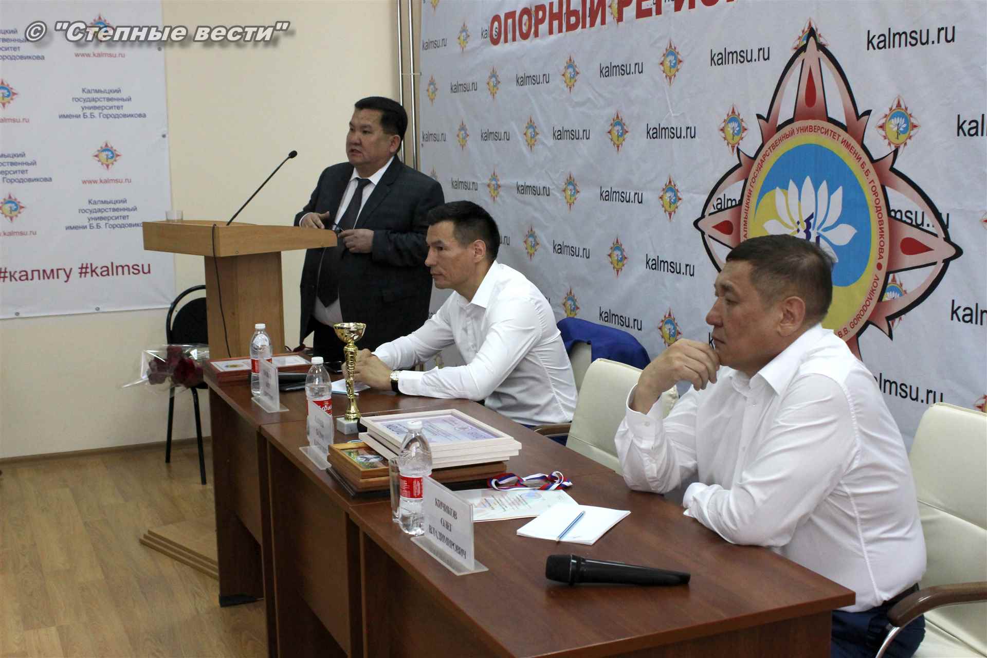 С гордостью ректор отозвался и о студентах-спортсменах, в числе которых более 30 кандидатов в мастера и мастеров по различным видам спорта. Наши талантливые спортсмены только за нынешний год принесли в общую копилку наград российского студенчества 16 призовых наград на соревнованиях международного уровня. Так что, безусловно, нашему университету есть чем гордиться, отметил Бадма Салаев.