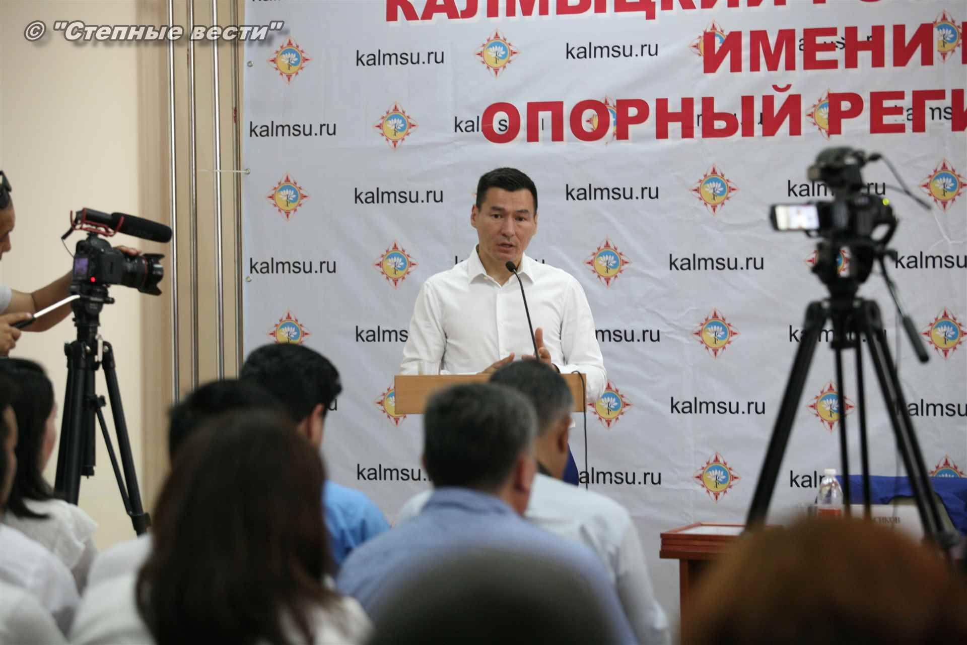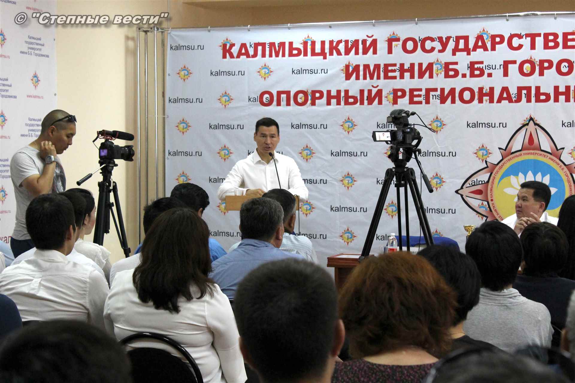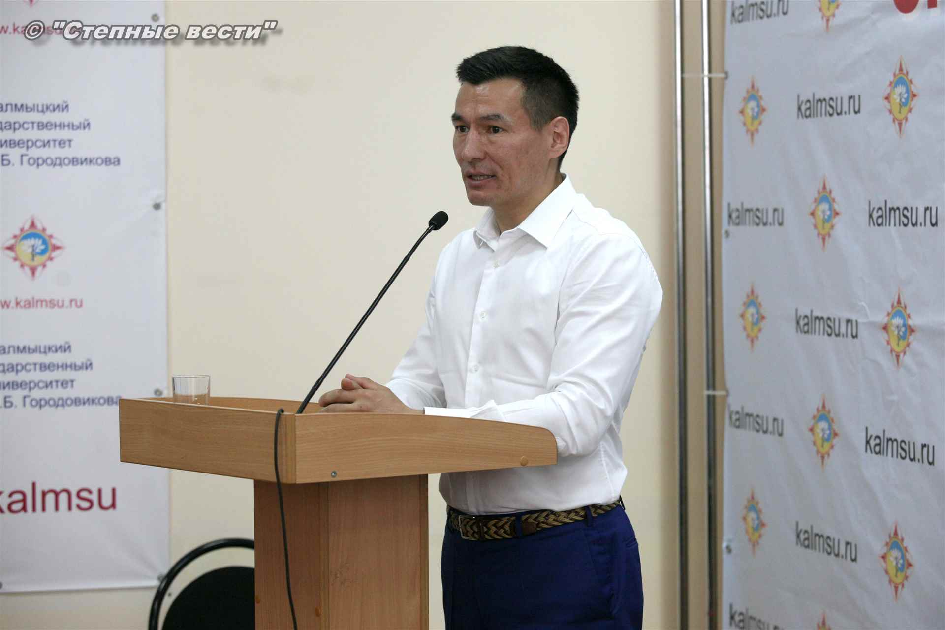 Врио Главы Калмыкии Бату Хасиков сегодня побывал в Калмыцком государственном университете им. Б.Б. Городовикова, где у него состоялась встреча со студентами, аспирантами и профессорско-преподавательским составом вуза. Очередным поводом для общения с учеными и студенческой молодежью — интеллектуальной элитой республики, настоящей и будущей, у руководителя региона стало подведение итогов учебного года и другие значимые события, связанные с деятельностью университета.