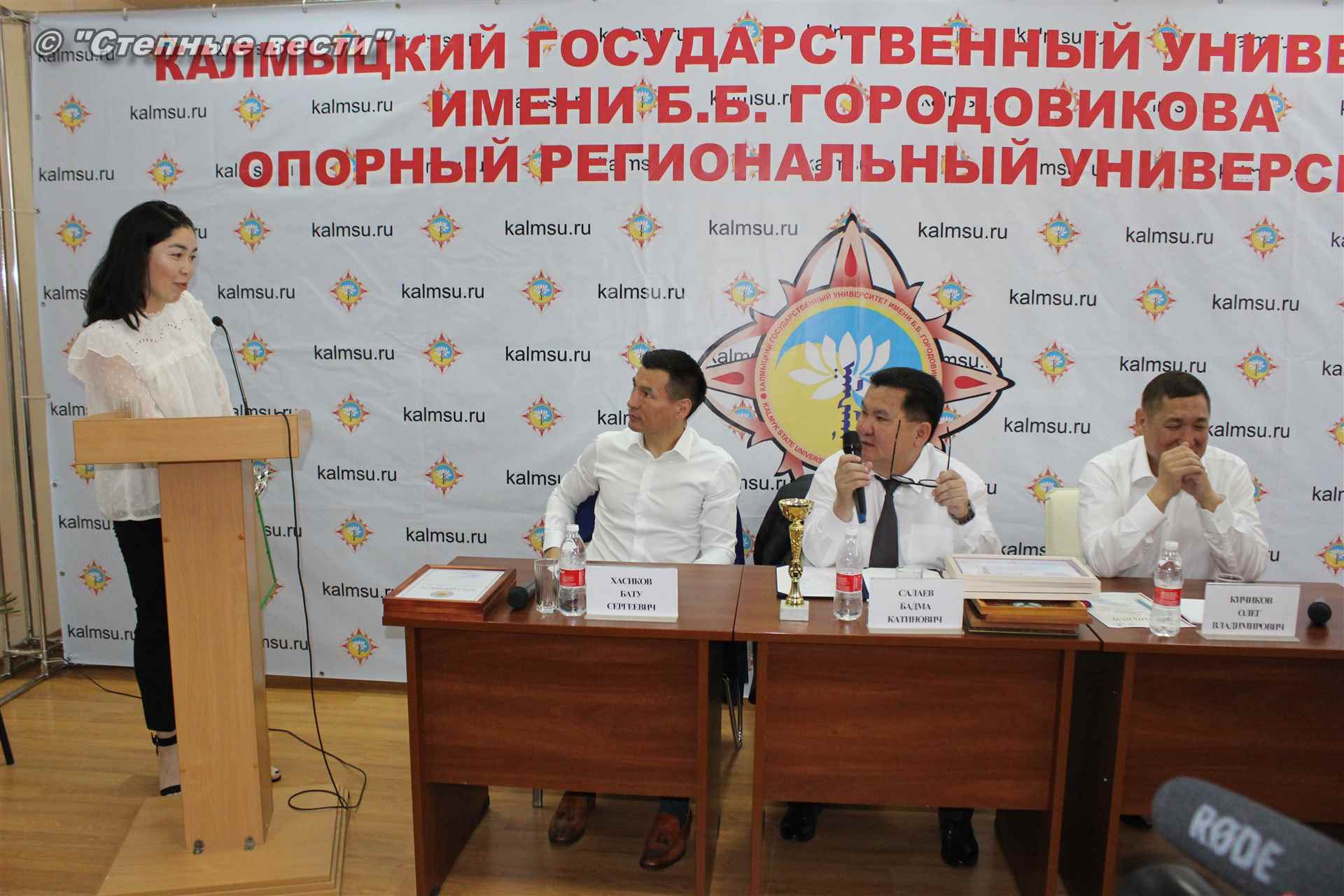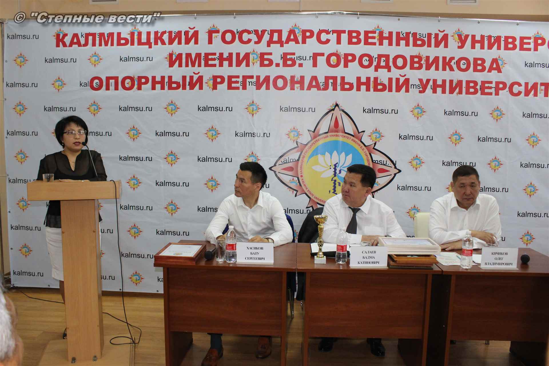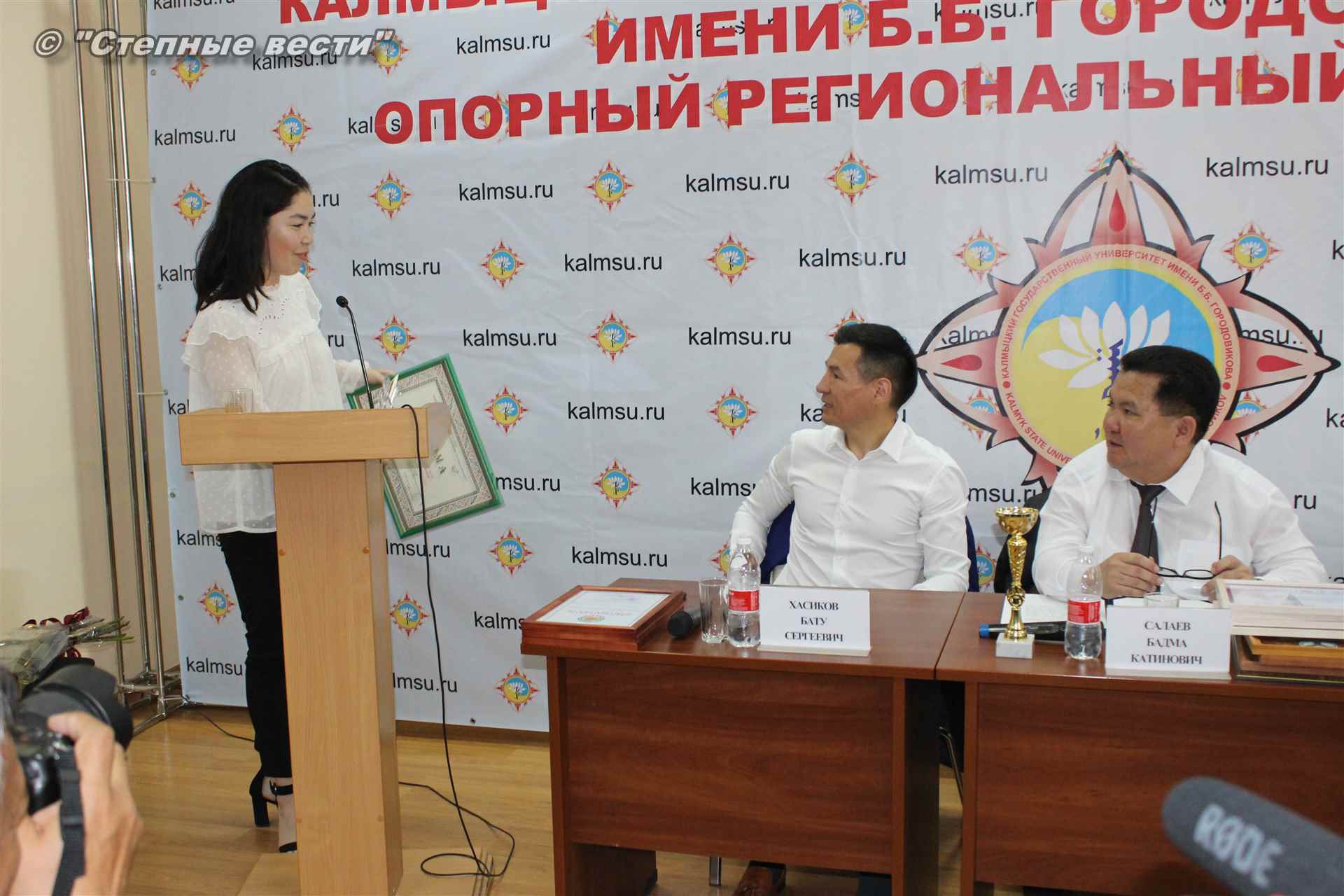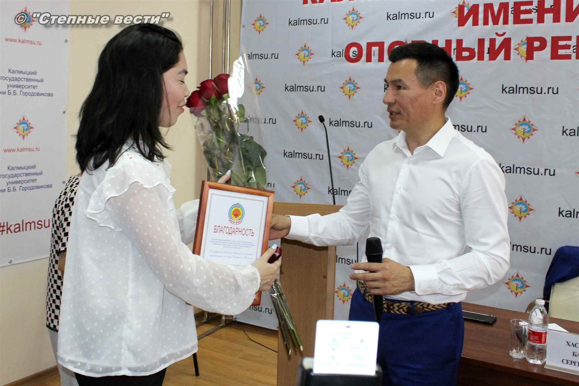 Врио Главы Калмыкии Бату Хасиков сегодня побывал в Калмыцком государственном университете им. Б.Б. Городовикова, где у него состоялась встреча со студентами, аспирантами и профессорско-преподавательским составом вуза. Очередным поводом для общения с учеными и студенческой молодежью — интеллектуальной элитой республики, настоящей и будущей, у руководителя региона стало подведение итогов учебного года и другие значимые события, связанные с деятельностью университета.