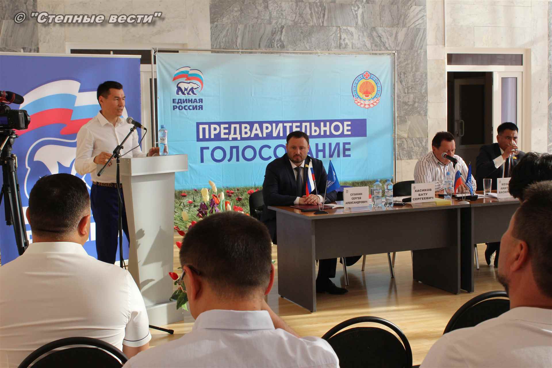 Как было отмечено на встрече, в республике состоялись площадки предварительного голосования «Единой России», и нынешняя – итоговая. Кандидатами предварительного голосования партии, напомнили присутствующим, являются врио Главы Республики Калмыкия Бату Хасиков и депутаты Народного Хурала (Парламента) РК шестого созыва Сергей Сухинин и Очир Халгаев.