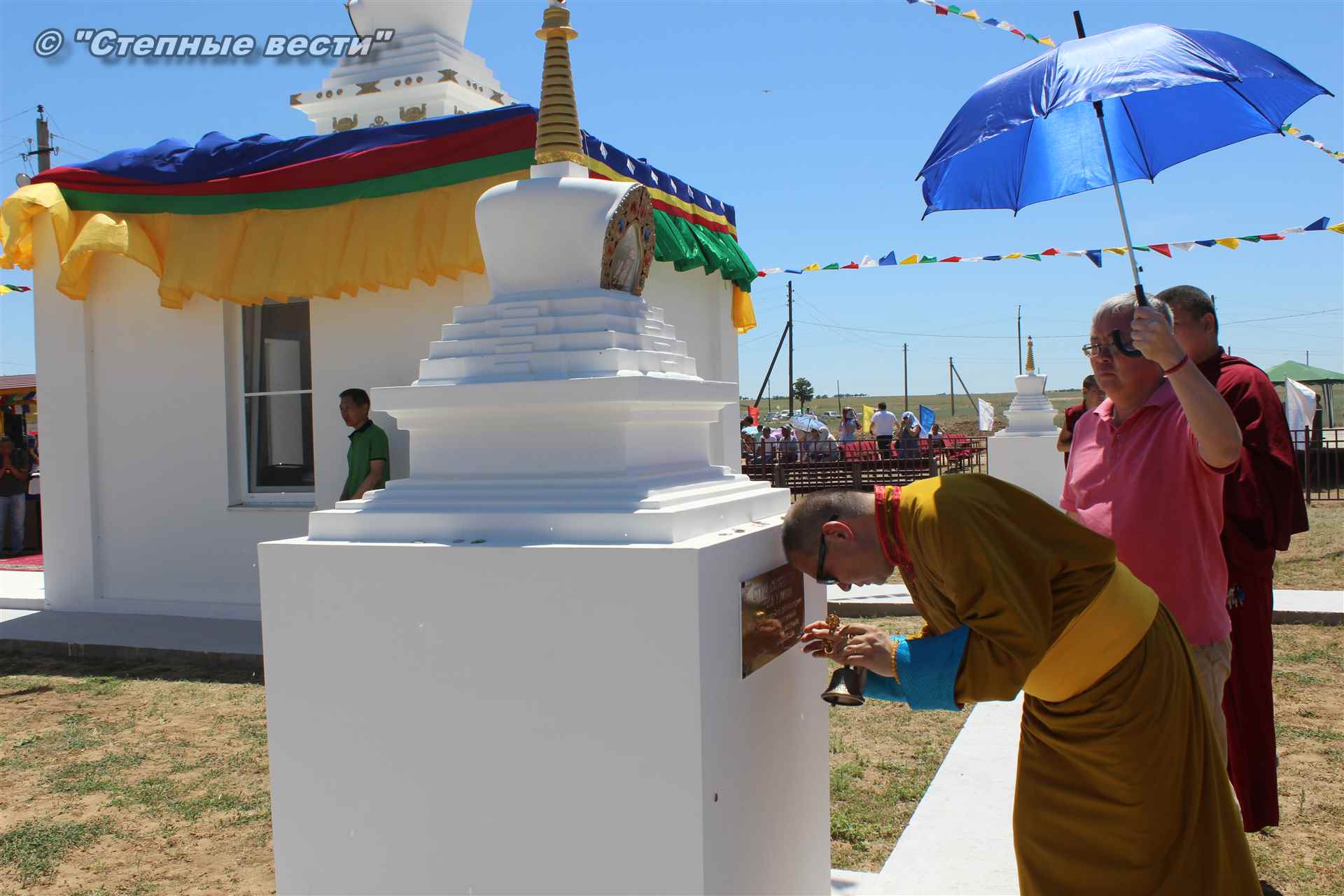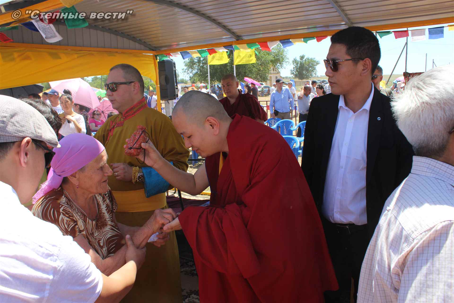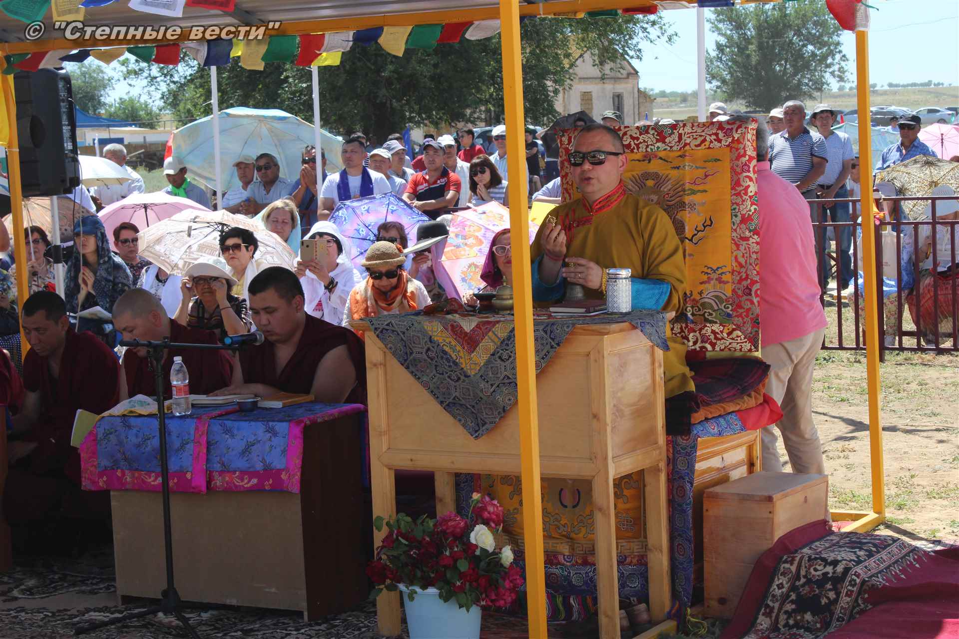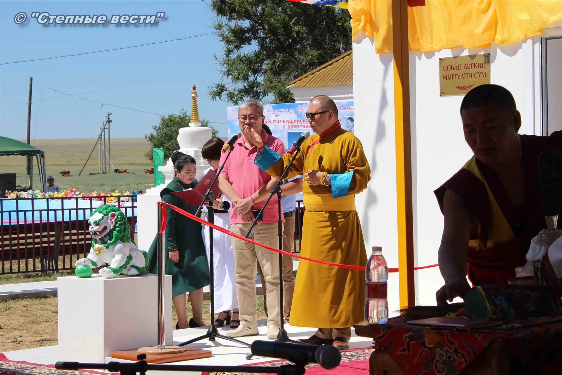 «От всего сердца хочу поприветствовать монахов центрального хурула и верующих, жителей поселка Хомутников по такому благому поводу. Я сорадуюсь этому знаменательному событию. В силу того, что у вас теперь есть особое место, место силы, связанное с  памятью о дорогом вам человеке, о его добрых делах, призываю вас отныне его часто посещать и проводить здесь время, совершая буддийские практики – молитвы, простирания, подношения. Сейчас у вас есть такой превосходный объект, благодаря которому вы сможете накопить бесчисленное количество заслуг. Я выражаю надежду на то, что что в будущем среди калмыков учение Будды будет процветать и преумножаться», — сказал почетный гость.