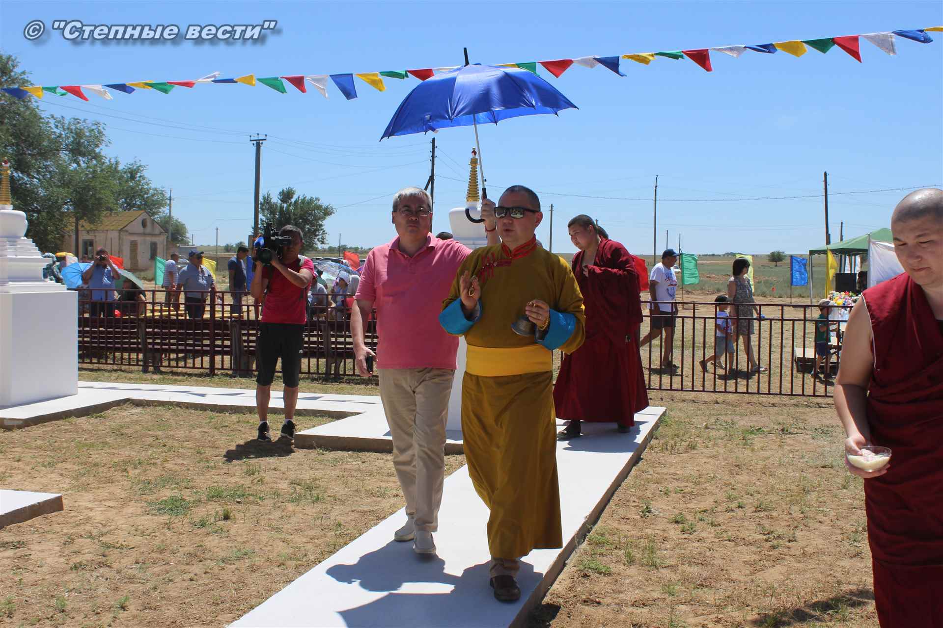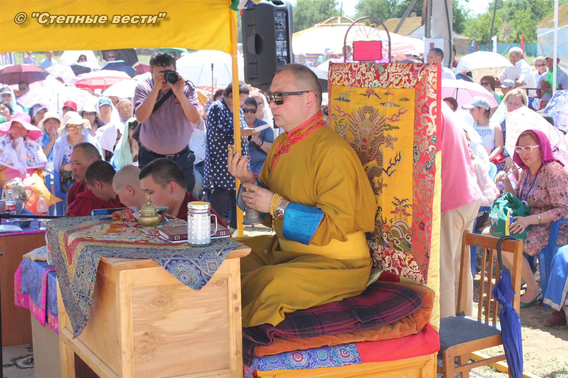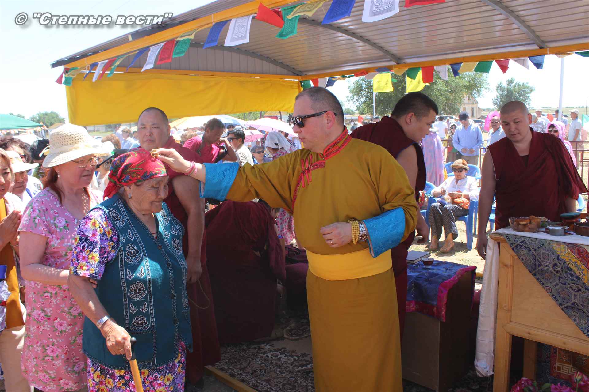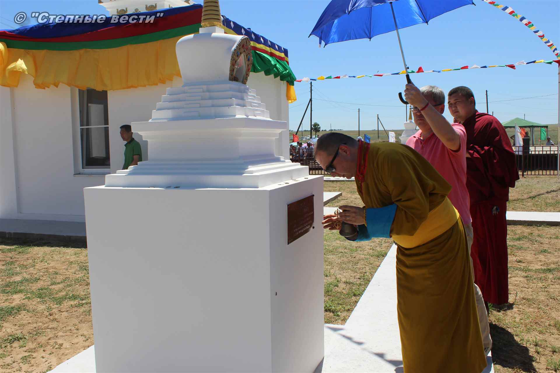 «От всего сердца хочу поприветствовать монахов центрального хурула и верующих, жителей поселка Хомутников по такому благому поводу. Я сорадуюсь этому знаменательному событию. В силу того, что у вас теперь есть особое место, место силы, связанное с  памятью о дорогом вам человеке, о его добрых делах, призываю вас отныне его часто посещать и проводить здесь время, совершая буддийские практики – молитвы, простирания, подношения. Сейчас у вас есть такой превосходный объект, благодаря которому вы сможете накопить бесчисленное количество заслуг. Я выражаю надежду на то, что что в будущем среди калмыков учение Будды будет процветать и преумножаться», — сказал почетный гость.