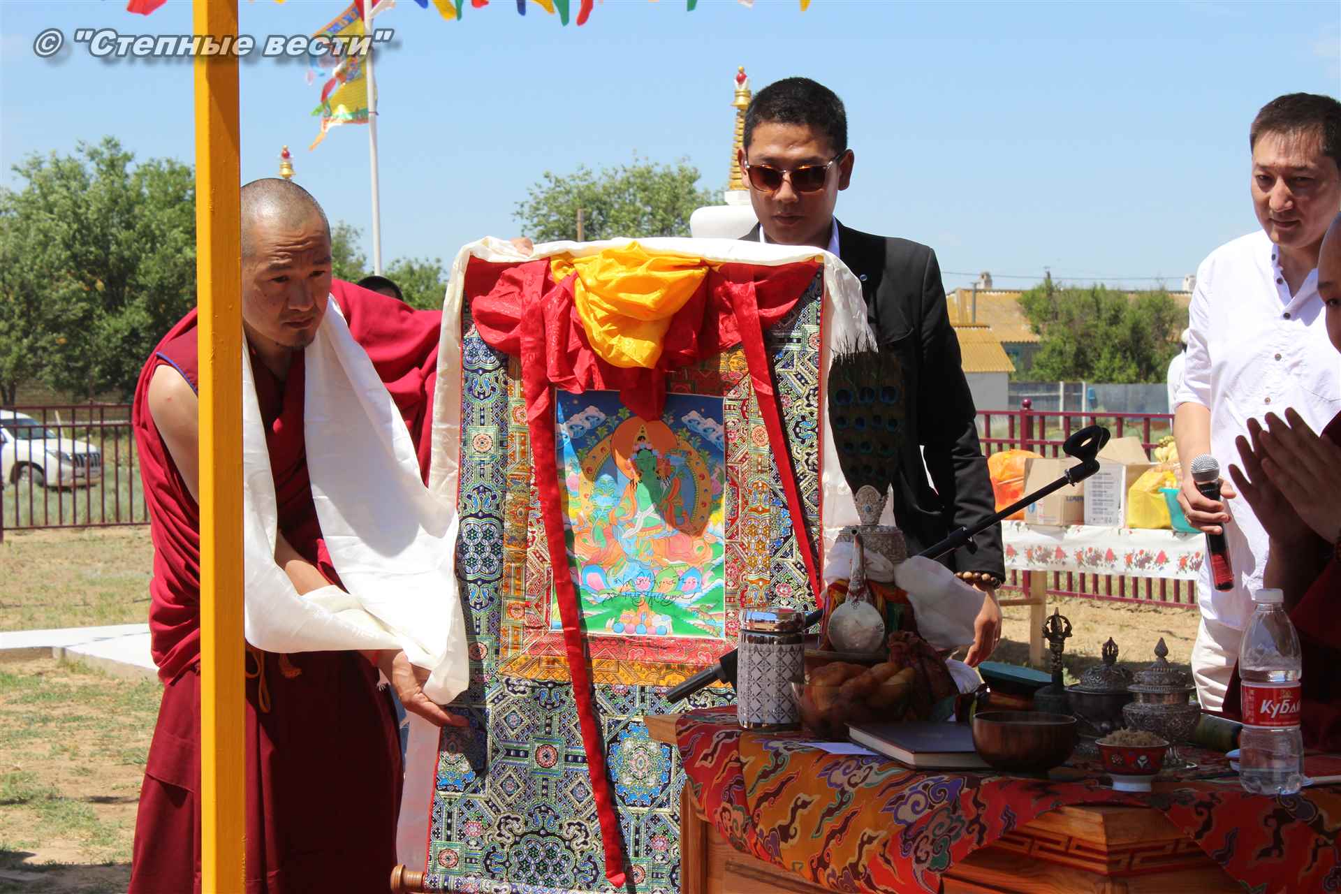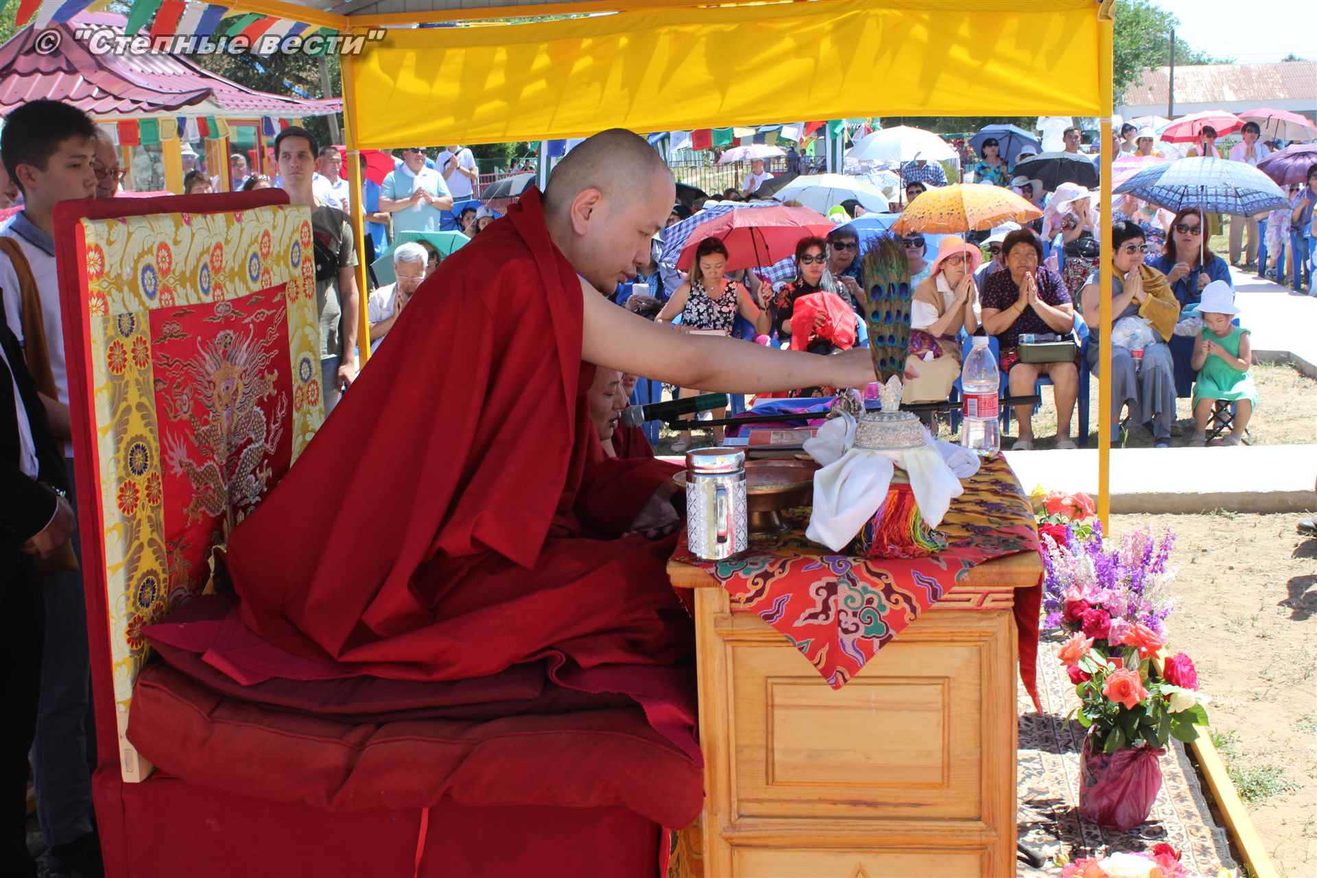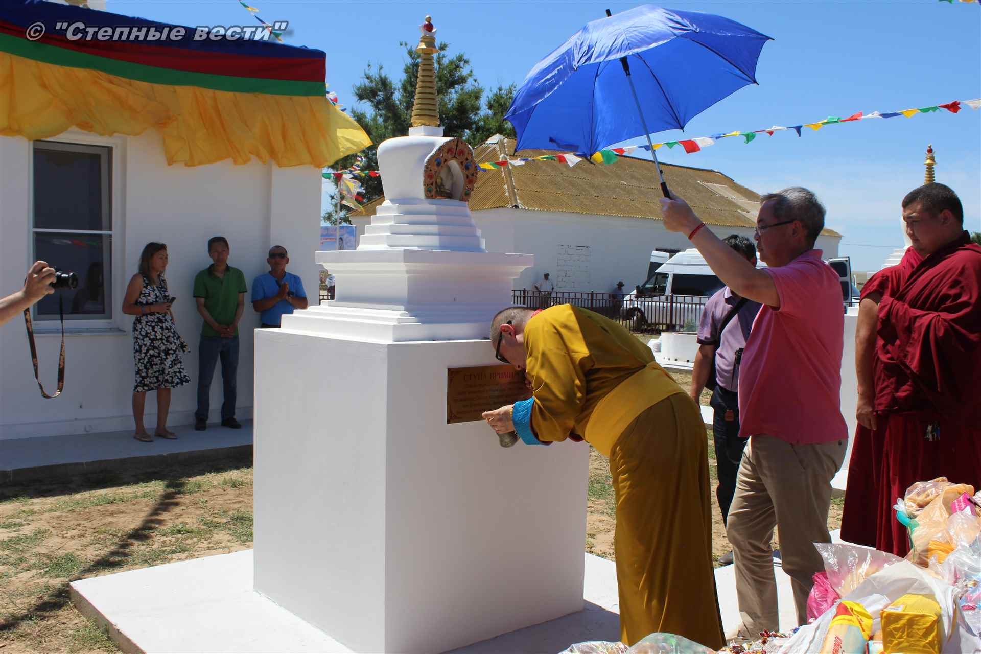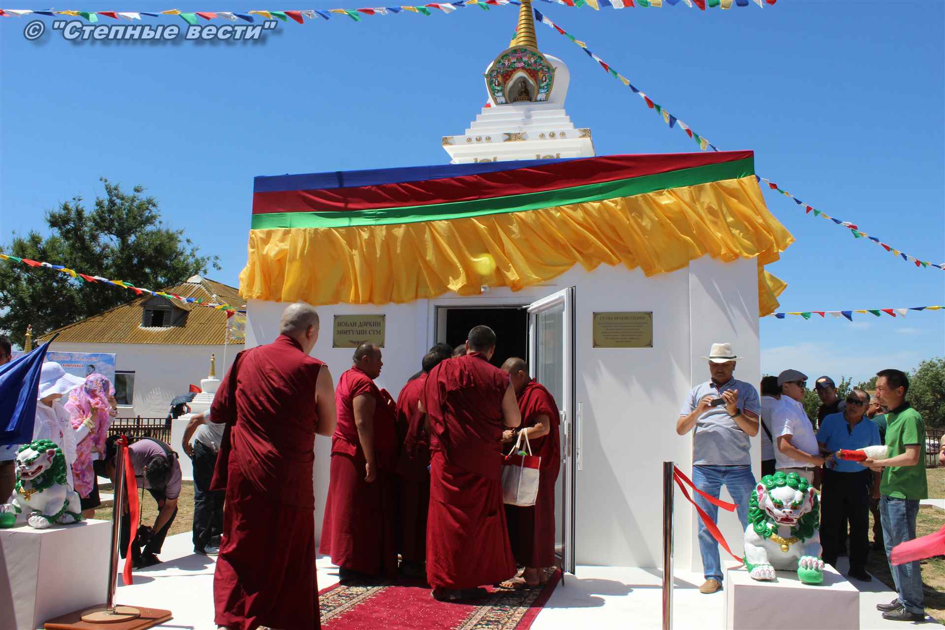 «От всего сердца хочу поприветствовать монахов центрального хурула и верующих, жителей поселка Хомутников по такому благому поводу. Я сорадуюсь этому знаменательному событию. В силу того, что у вас теперь есть особое место, место силы, связанное с  памятью о дорогом вам человеке, о его добрых делах, призываю вас отныне его часто посещать и проводить здесь время, совершая буддийские практики – молитвы, простирания, подношения. Сейчас у вас есть такой превосходный объект, благодаря которому вы сможете накопить бесчисленное количество заслуг. Я выражаю надежду на то, что что в будущем среди калмыков учение Будды будет процветать и преумножаться», — сказал почетный гость.
