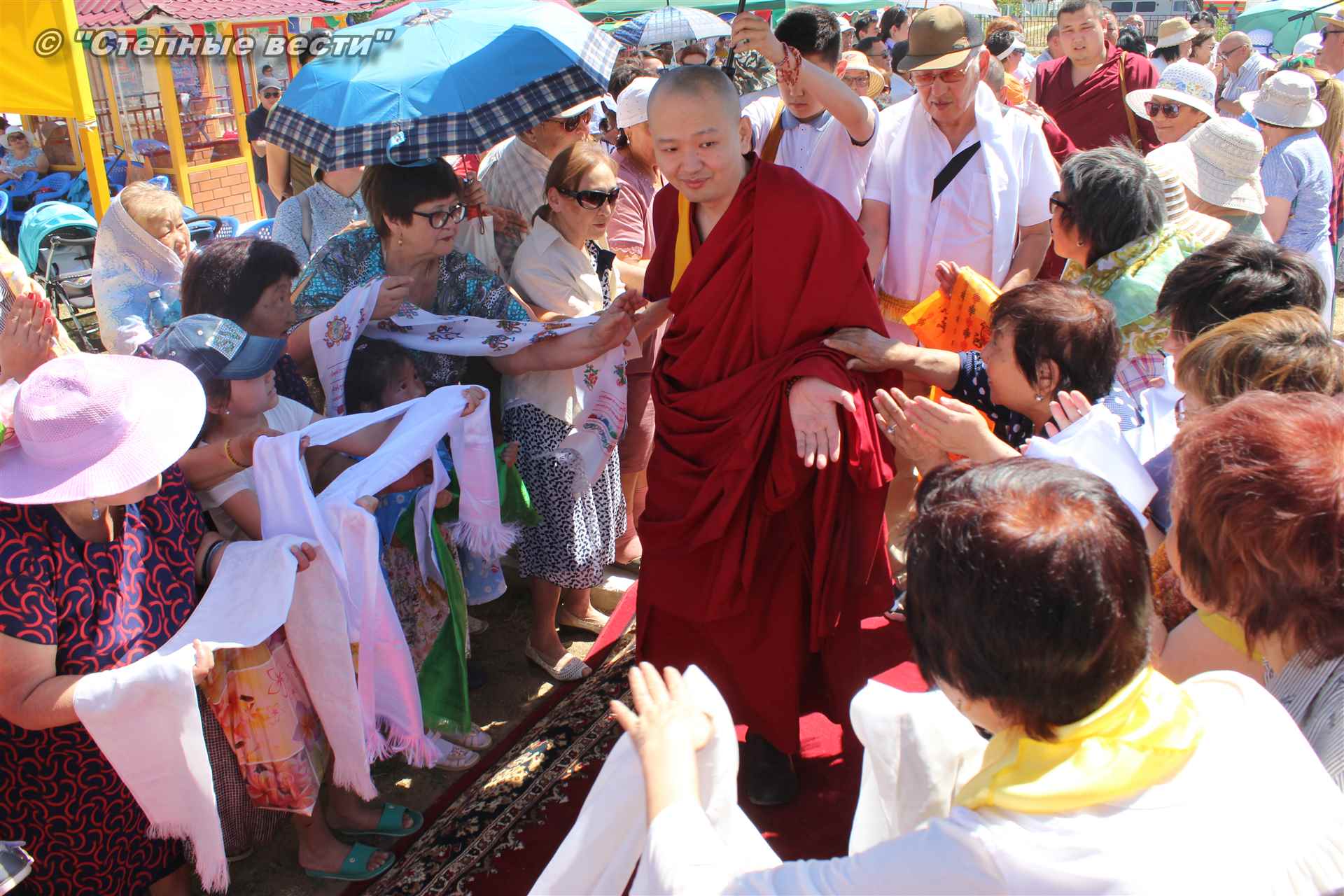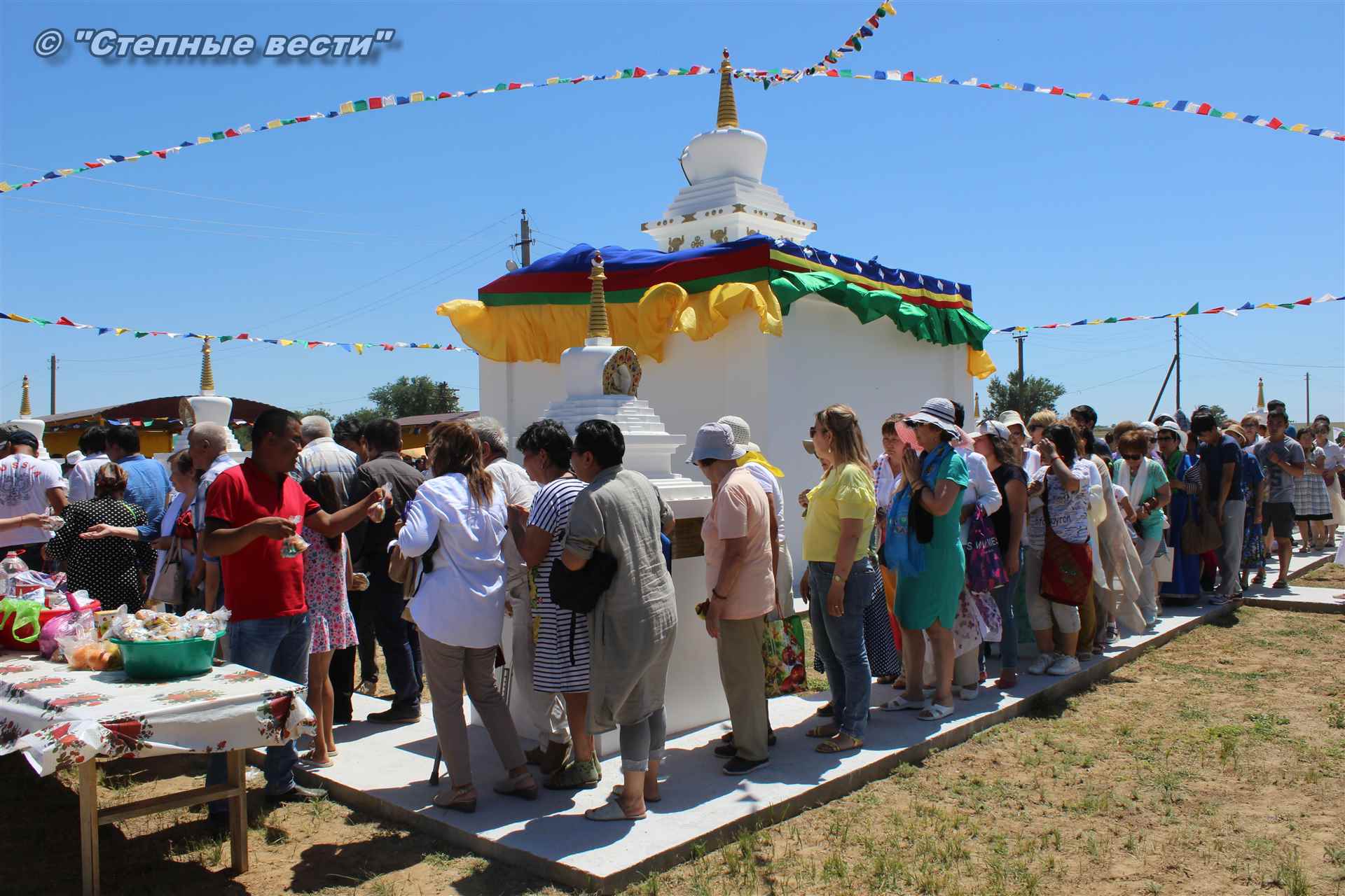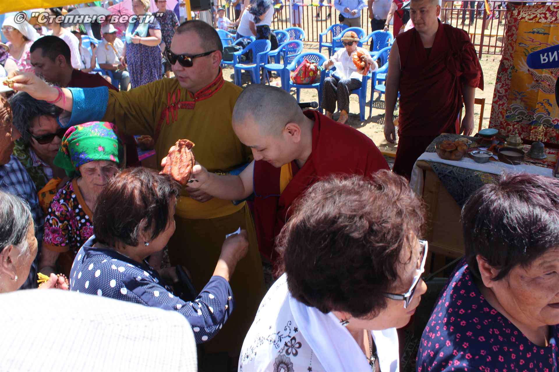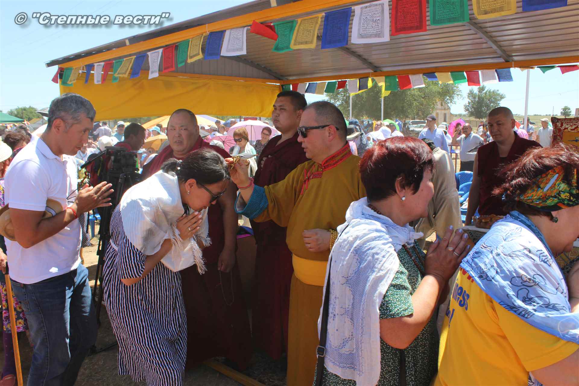 «От всего сердца хочу поприветствовать монахов центрального хурула и верующих, жителей поселка Хомутников по такому благому поводу. Я сорадуюсь этому знаменательному событию. В силу того, что у вас теперь есть особое место, место силы, связанное с  памятью о дорогом вам человеке, о его добрых делах, призываю вас отныне его часто посещать и проводить здесь время, совершая буддийские практики – молитвы, простирания, подношения. Сейчас у вас есть такой превосходный объект, благодаря которому вы сможете накопить бесчисленное количество заслуг. Я выражаю надежду на то, что что в будущем среди калмыков учение Будды будет процветать и преумножаться», — сказал почетный гость.