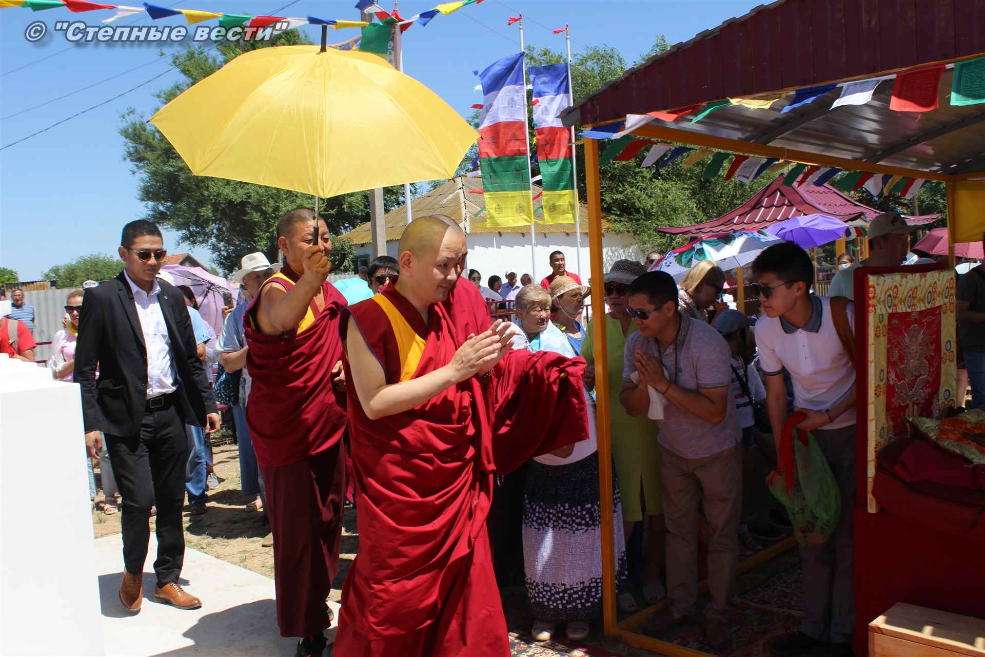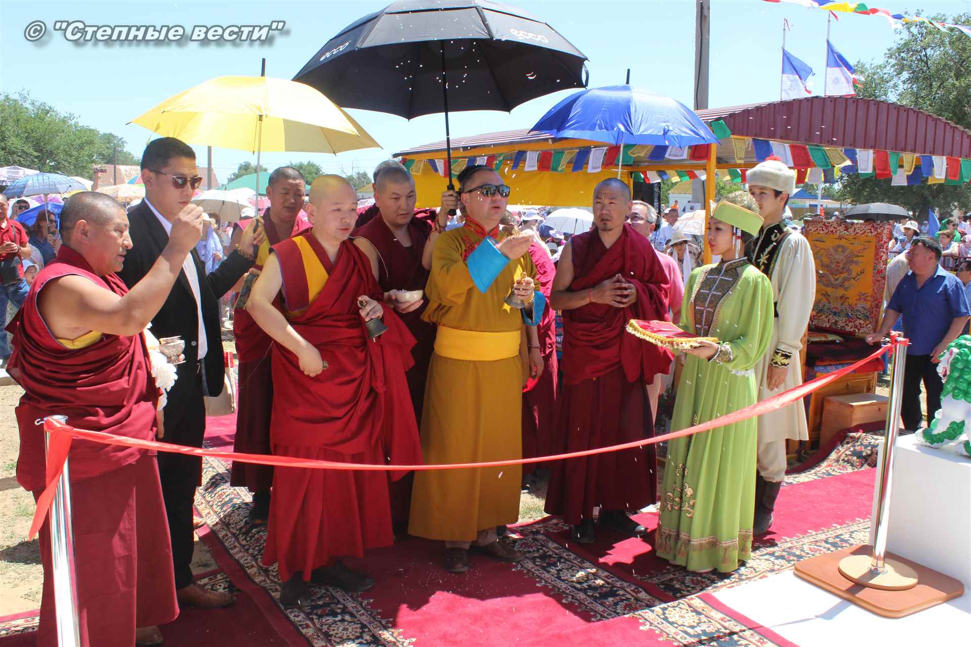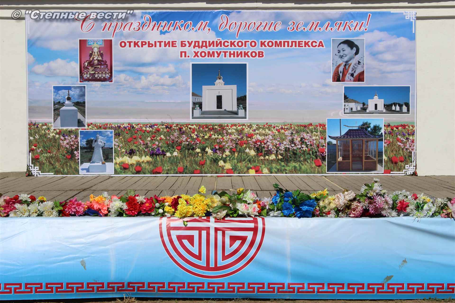 На праздник по случаю открытия буддийского комплекса к хомутниковцам приехали высокие гости — почетный представитель Его Святейшество Далай-ламы XIV в России, Монголии и странах СНГ, шаджин-лама Калмыкии Тэло Тулку Ринпоче, досточтимый Кунделинг Ринпоче, монахи центрального хурула «Золотая  обитель Будды Шакьямуни», министр культуры и туризма РК Хонгор Эльбиков.