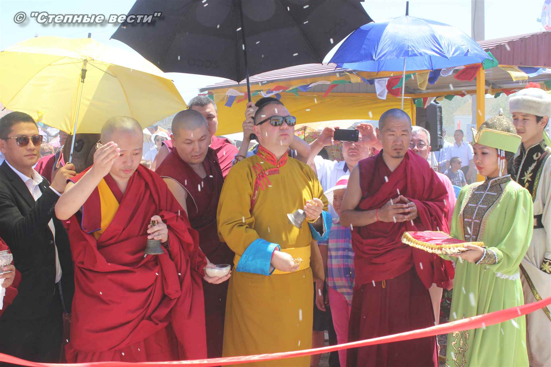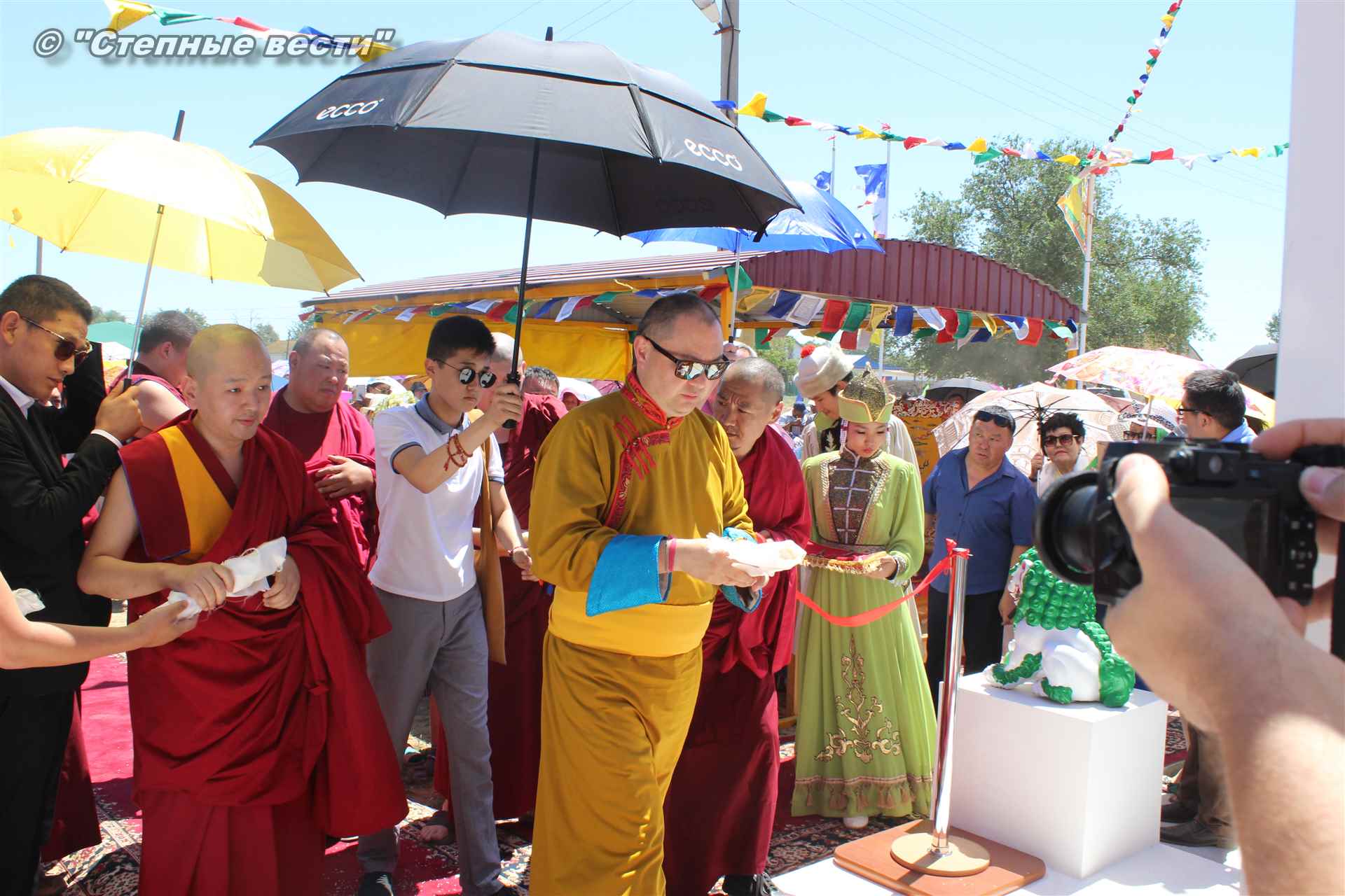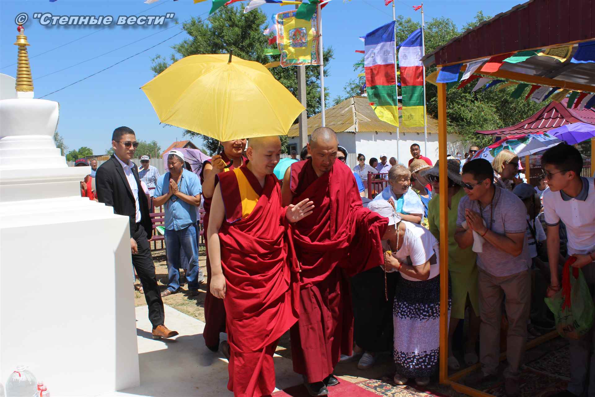 На праздник по случаю открытия буддийского комплекса к хомутниковцам приехали высокие гости — почетный представитель Его Святейшество Далай-ламы XIV в России, Монголии и странах СНГ, шаджин-лама Калмыкии Тэло Тулку Ринпоче, досточтимый Кунделинг Ринпоче, монахи центрального хурула «Золотая  обитель Будды Шакьямуни», министр культуры и туризма РК Хонгор Эльбиков.