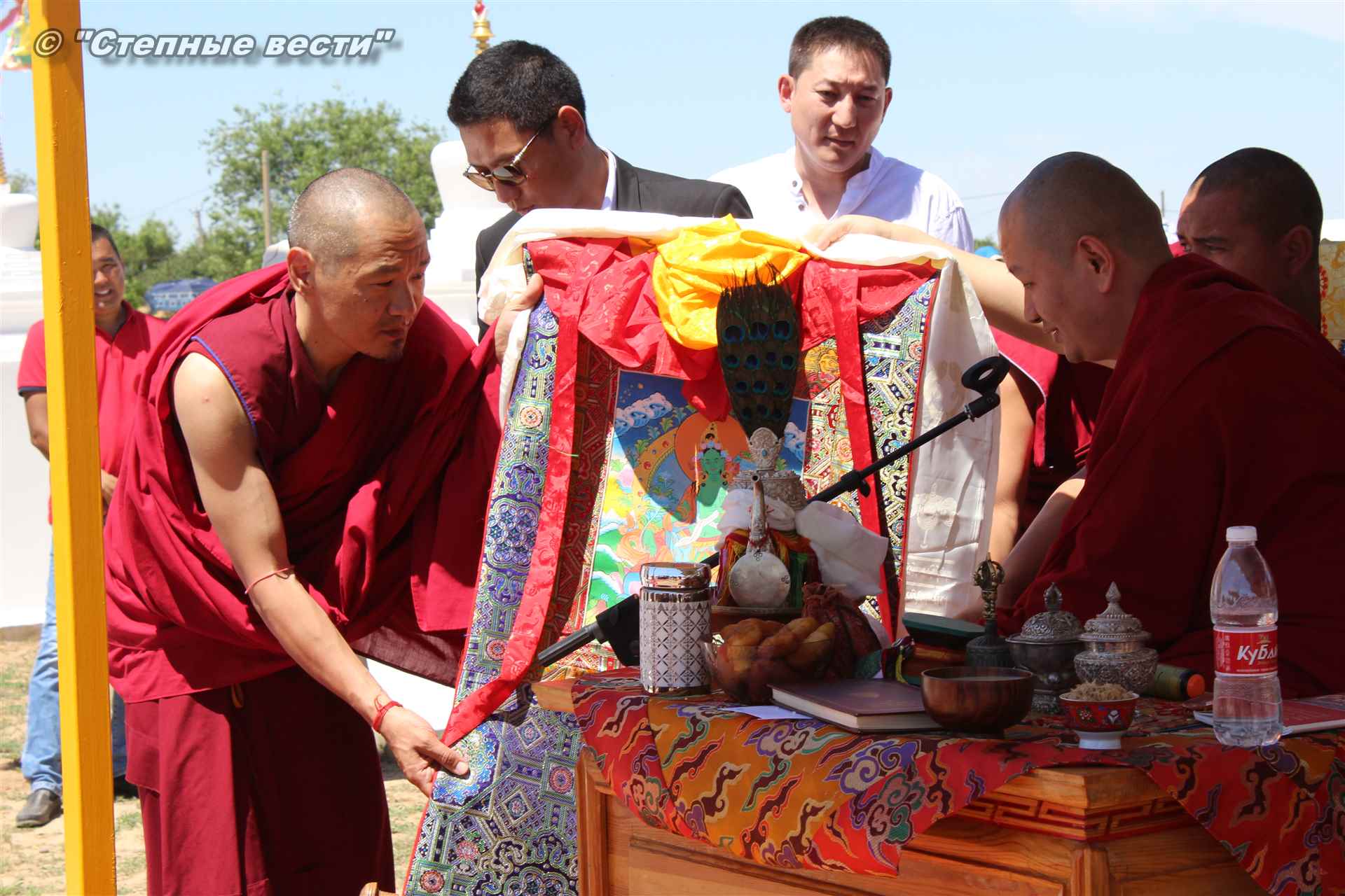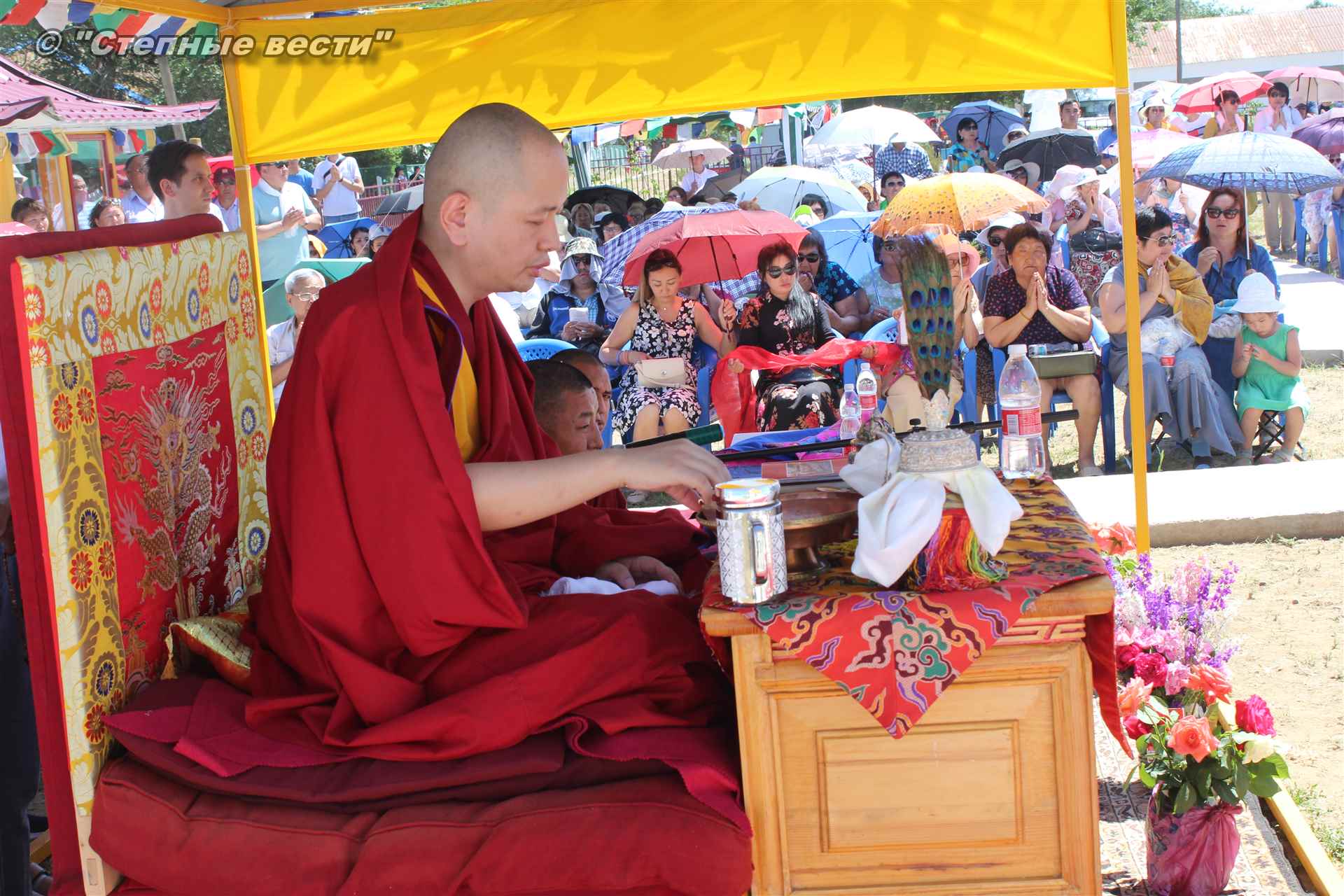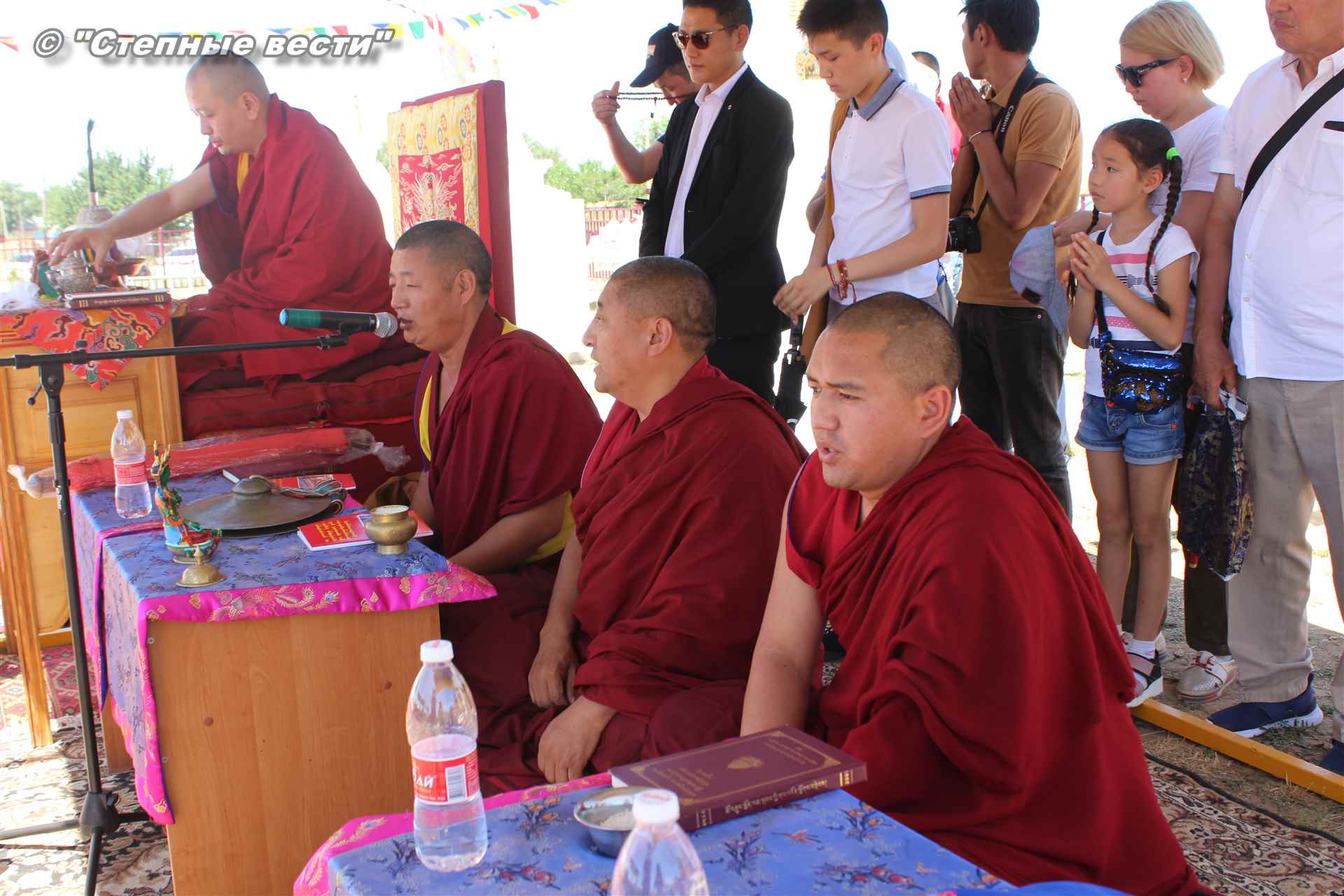 После этого монахи почитали молитву дарования прибежища, а также строчки из трактата о порождении бодхичитты. Также был проведен ритуал омовения и освящения статуй и ступ, с помощью которых в этот молельный дом пригласили всех будд и бодхисаттв, всех святых существ, чтобы они навсегда поселились в этом светлом месте и даровали свое покровительство всему живому вокруг.