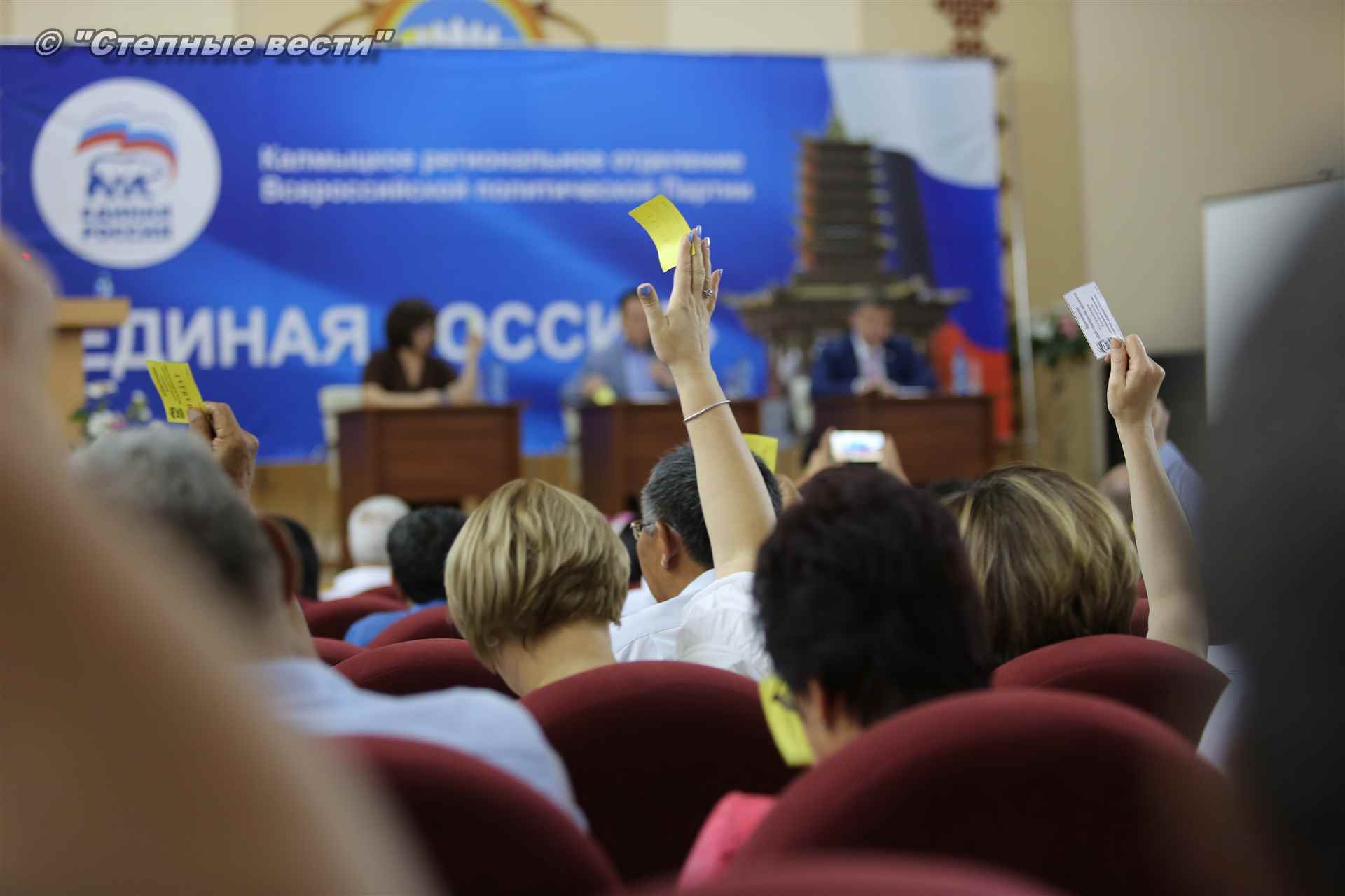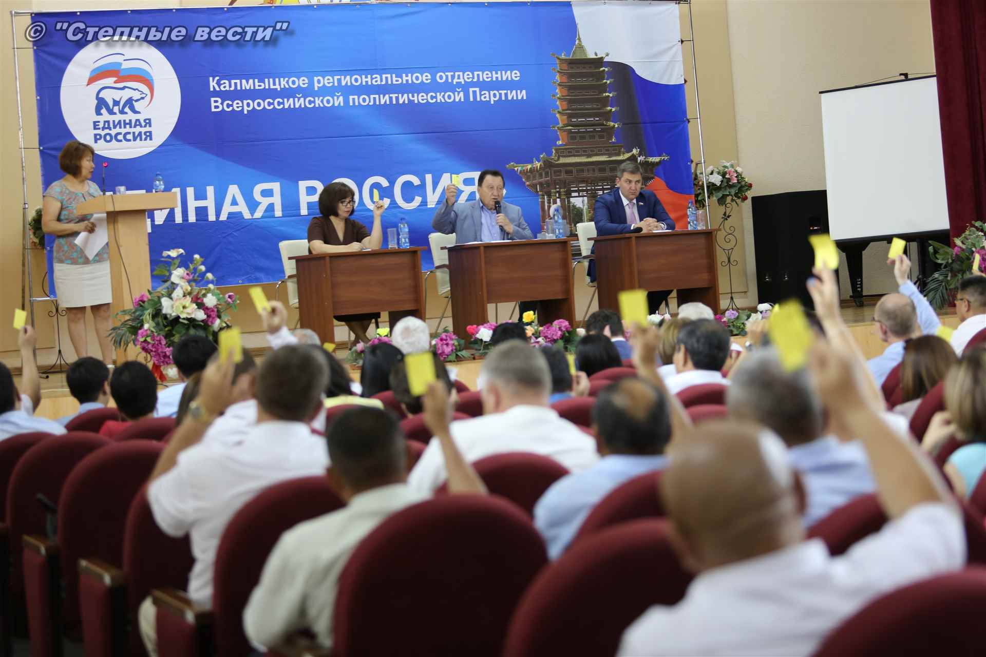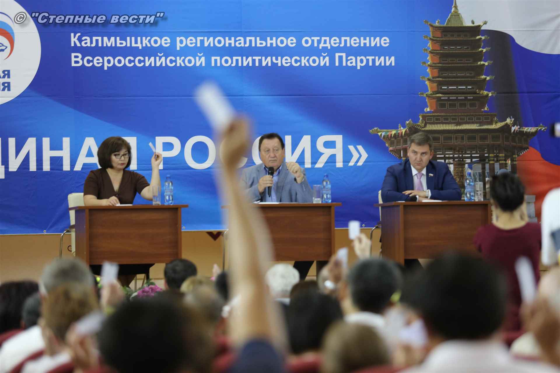 Эта конференция стала завершающим этапом предварительного голосования (праймериз) по определению кандидата от «Единой России», который примет участие в предстоящей избирательной кампании. Напомним, «Единая Россия» – единственная партия в стране, которая определяет своих кандидатов путем предварительного голосования. В качестве участников праймериз по отбору единого партийного кандидата реготделением «ЕР» было предложено три кандидата — врио Главы Республики Калмыкия Бату Хасиков, а также депутаты Народного Хурала (парламента) республики Сергей Сухинин и Очир Халгаев.