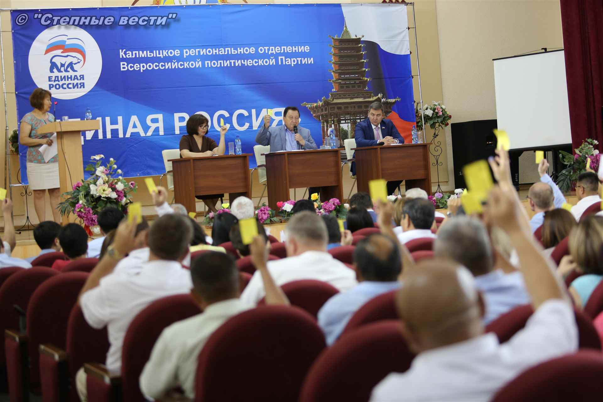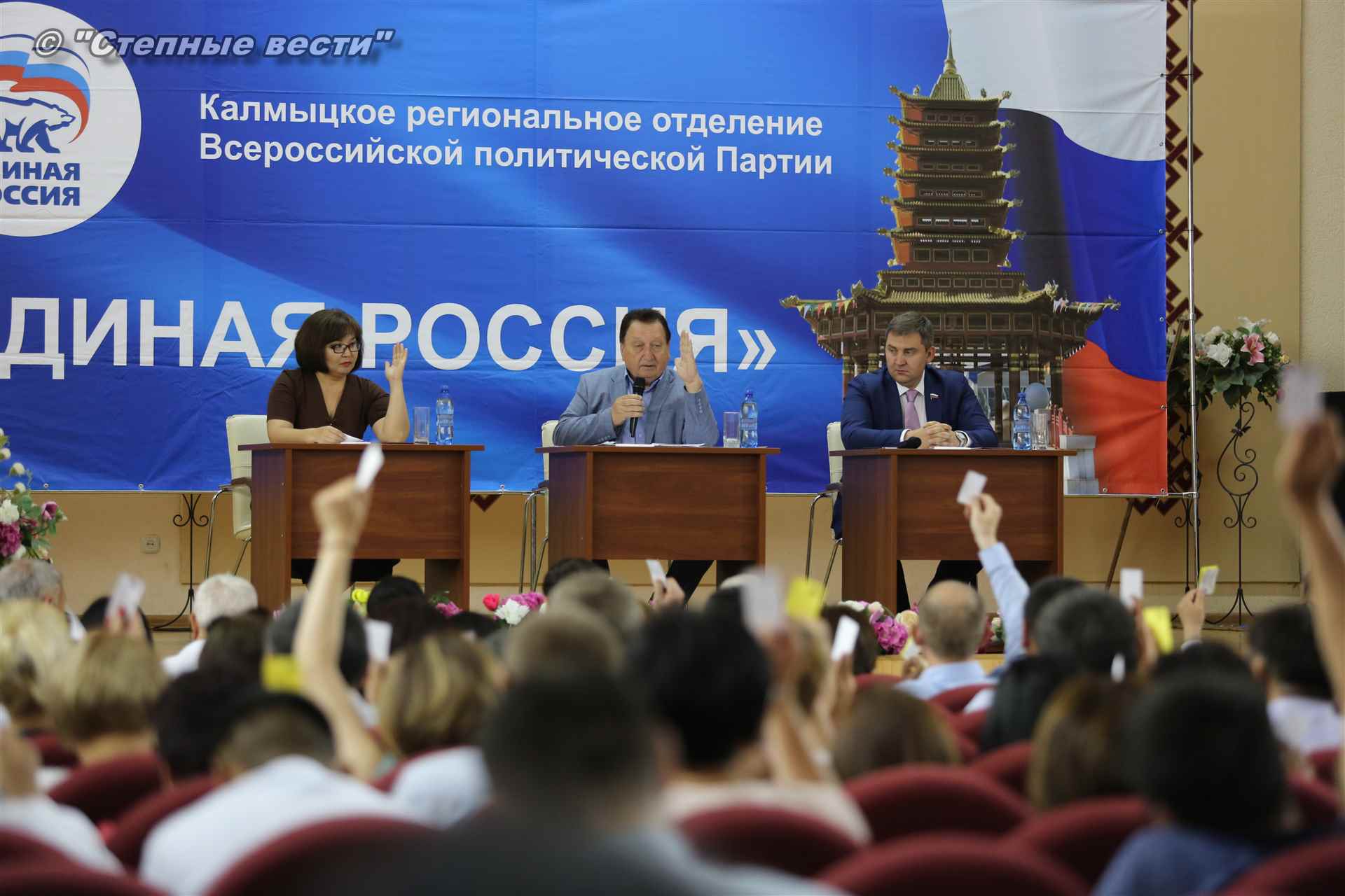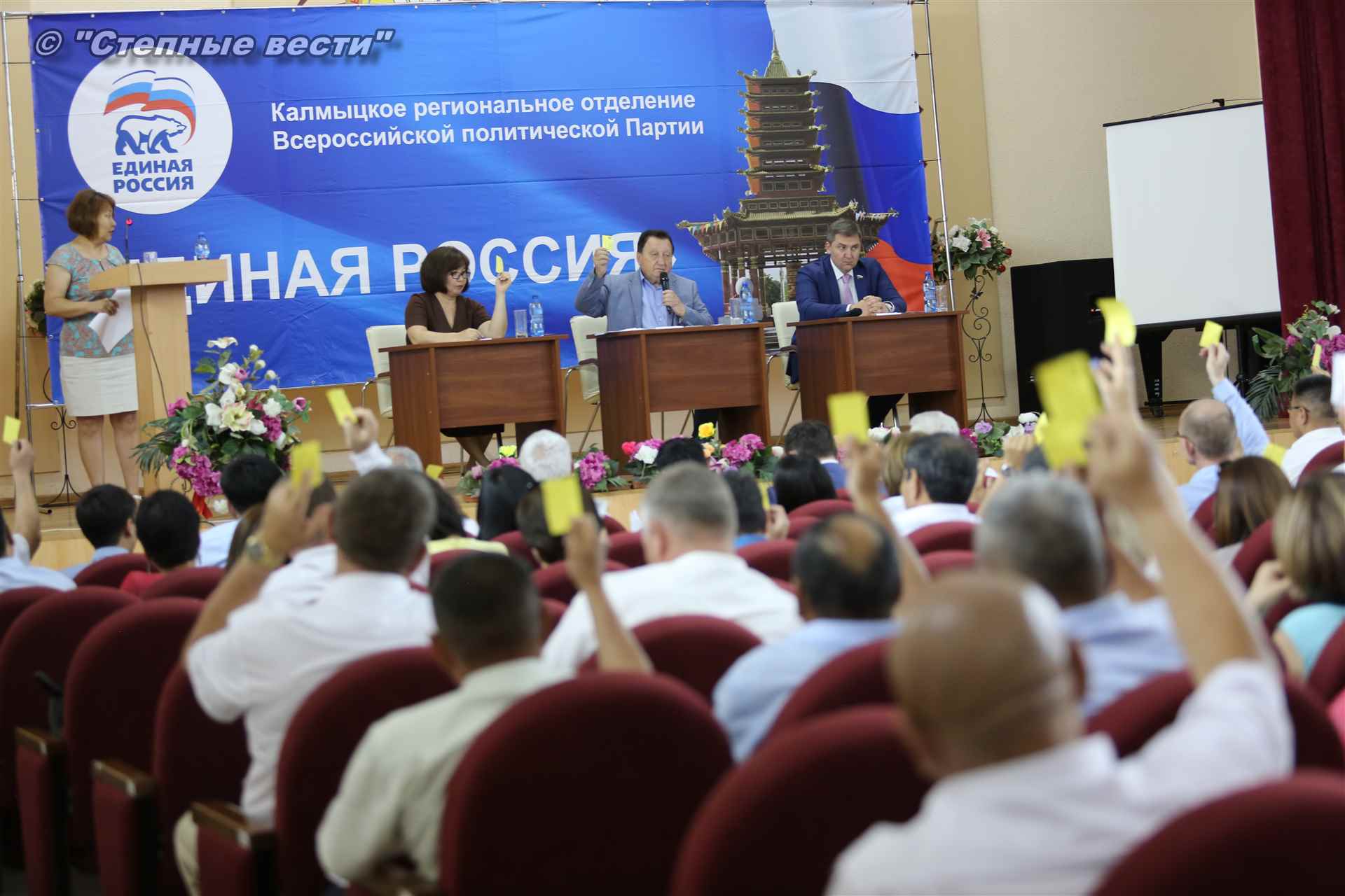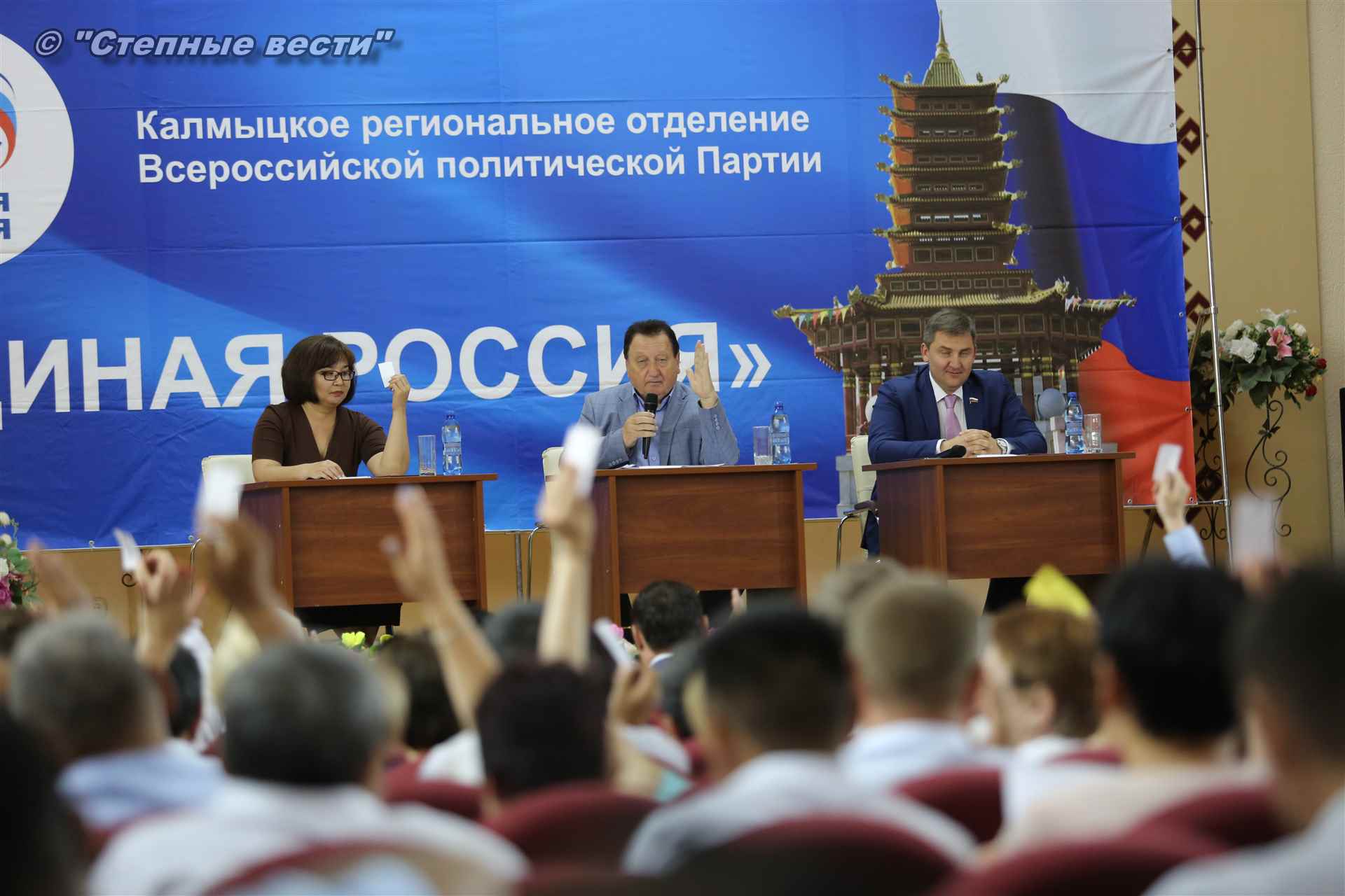 Эта конференция стала завершающим этапом предварительного голосования (праймериз) по определению кандидата от «Единой России», который примет участие в предстоящей избирательной кампании. Напомним, «Единая Россия» – единственная партия в стране, которая определяет своих кандидатов путем предварительного голосования. В качестве участников праймериз по отбору единого партийного кандидата реготделением «ЕР» было предложено три кандидата — врио Главы Республики Калмыкия Бату Хасиков, а также депутаты Народного Хурала (парламента) республики Сергей Сухинин и Очир Халгаев.