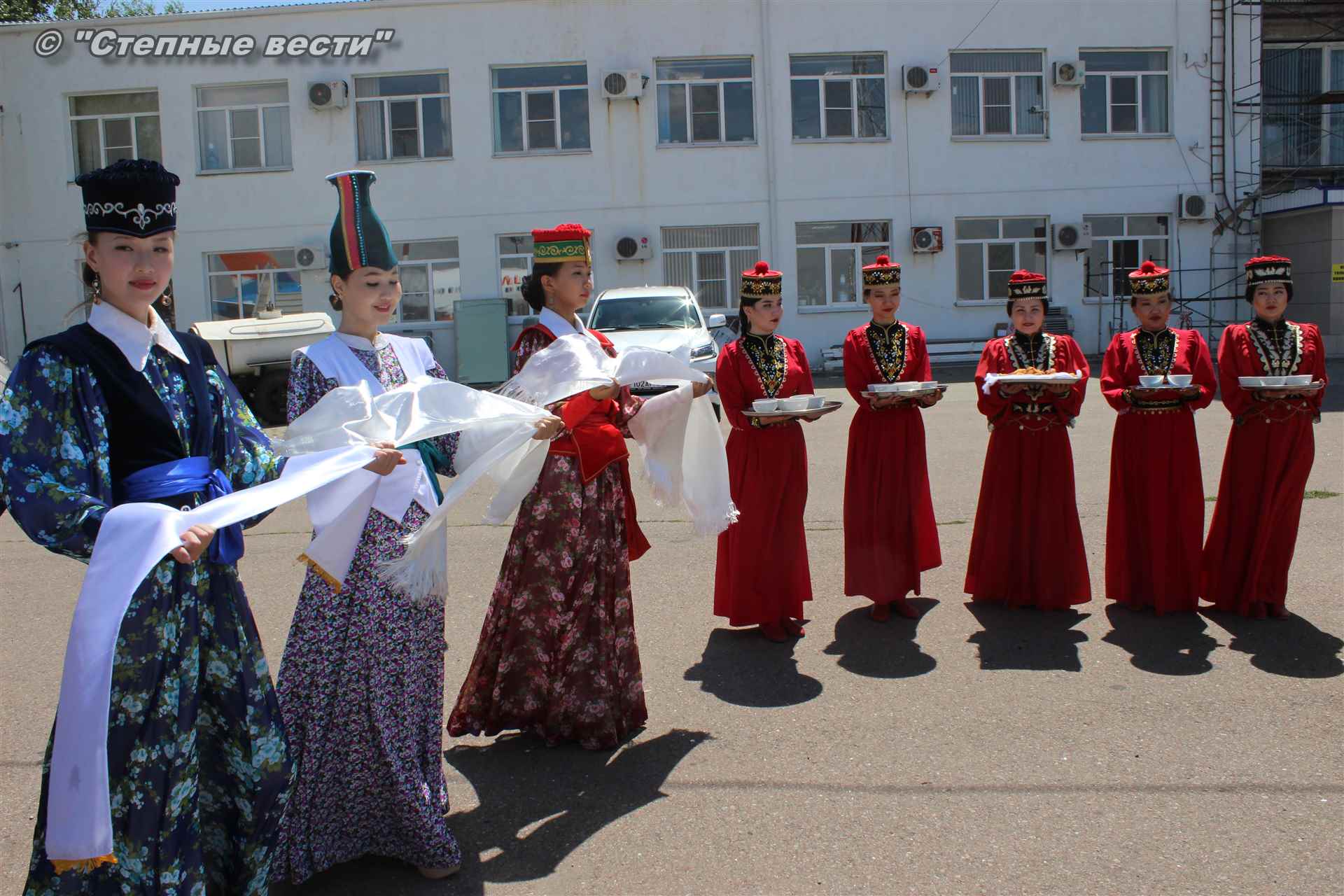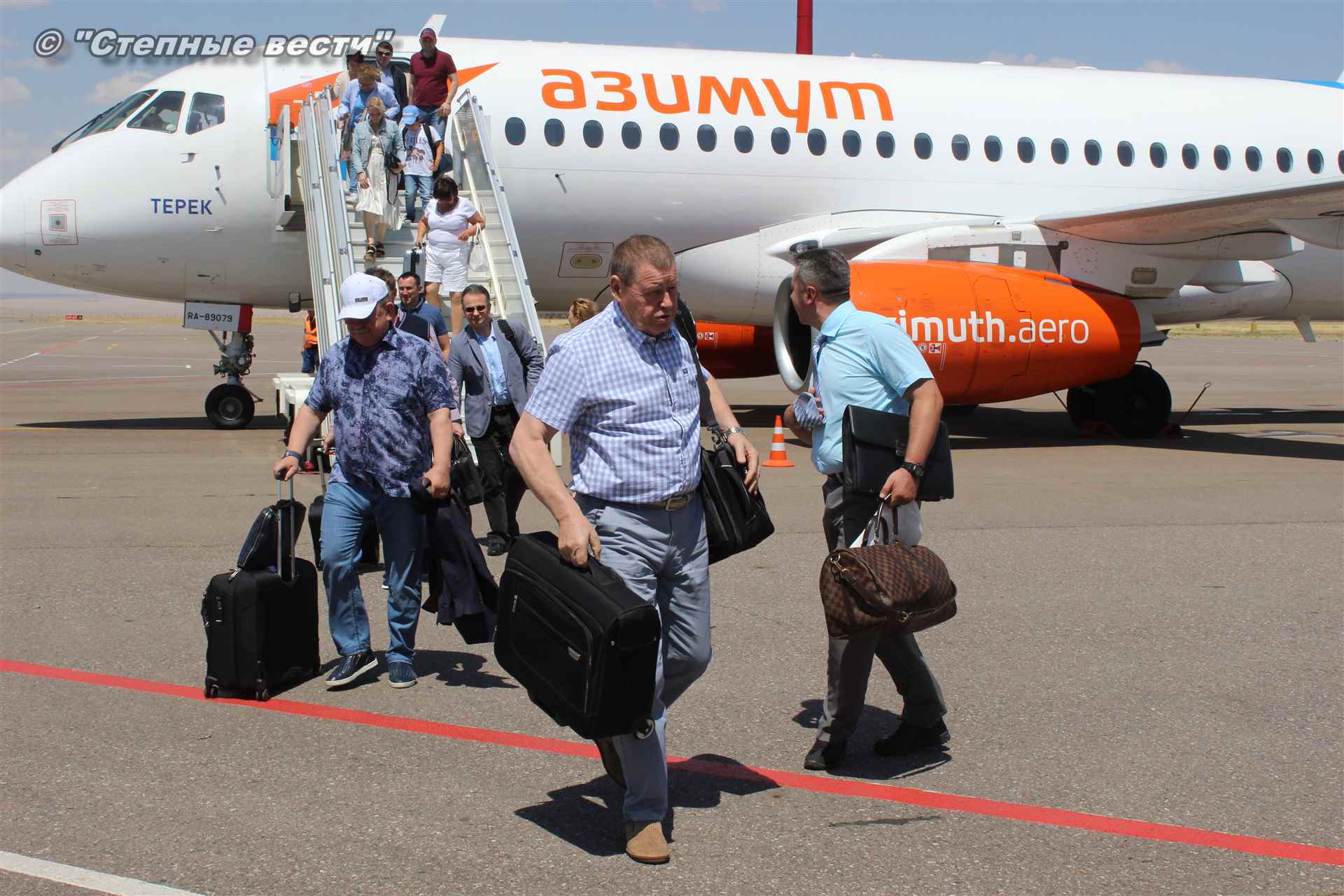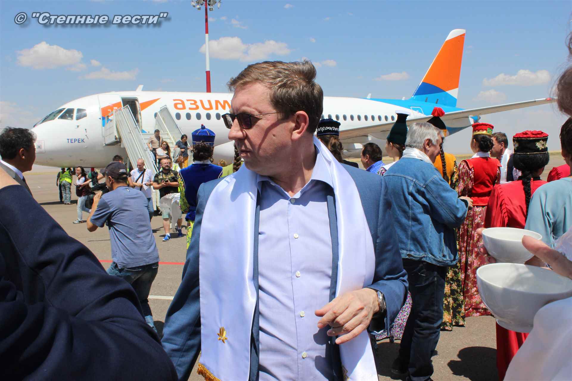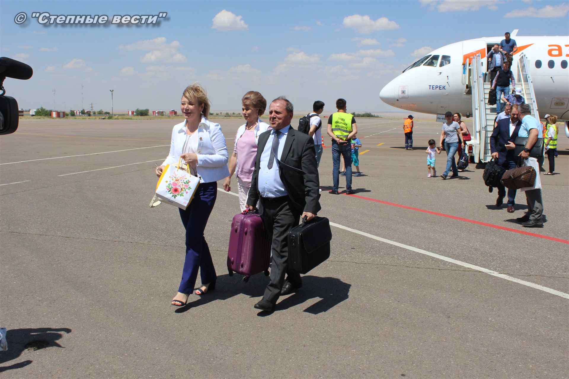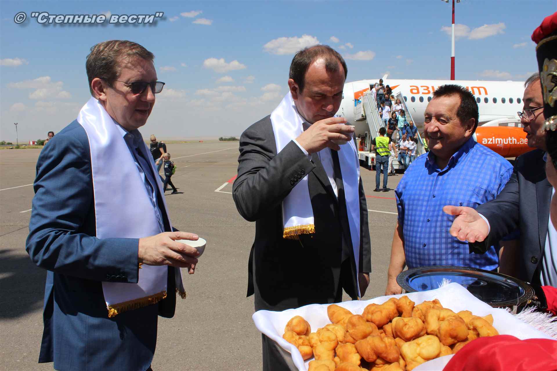В элистинском аэропорту высоких гостей встретили председатель Народного Хурала (Парламента) РК Анатолий Козачко, представители регионального кабинета министров. По калмыцким обычаям девушки в национальных костюмах поднесли им пиалы с чаем и вручили хадаки.
