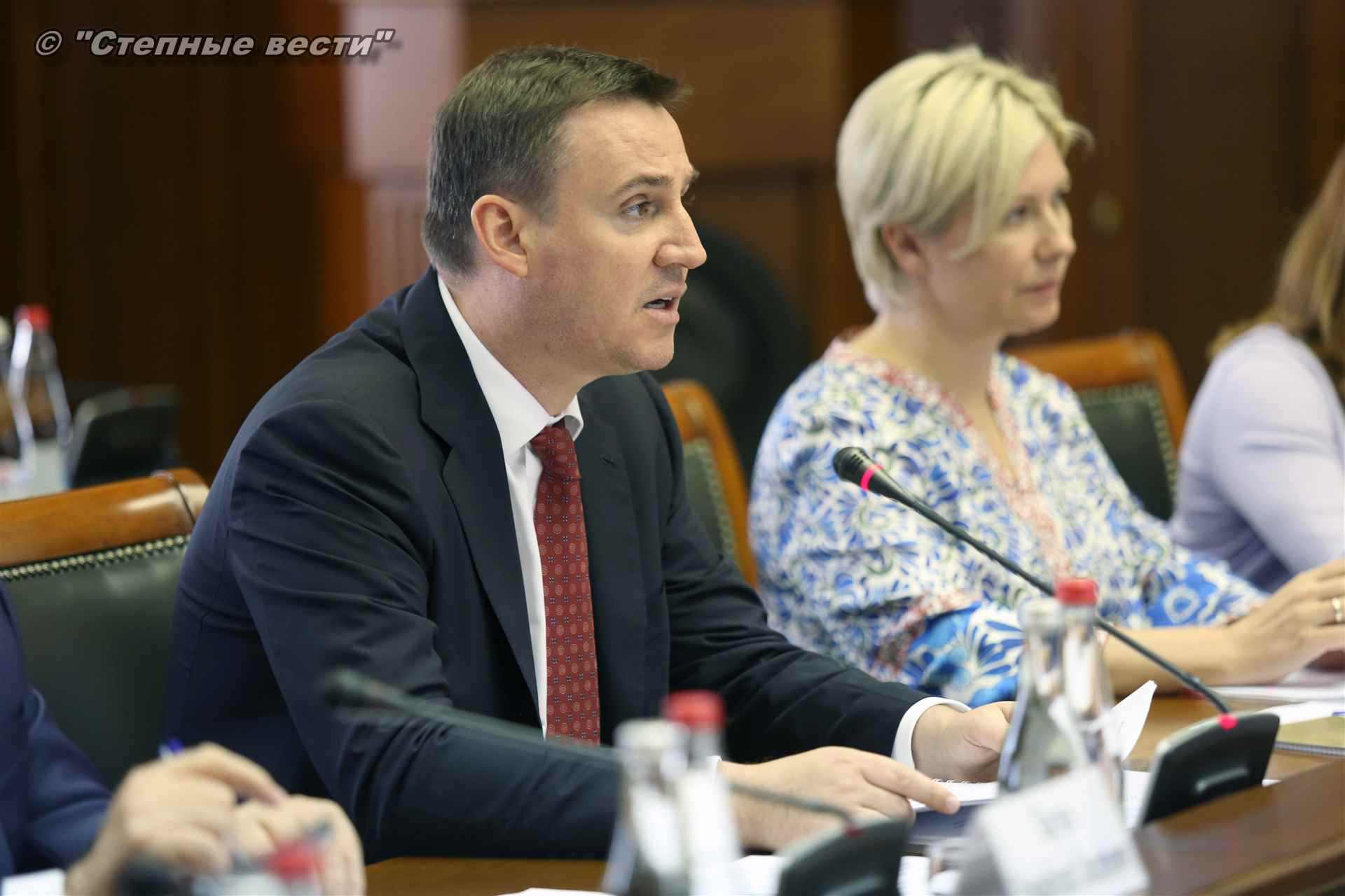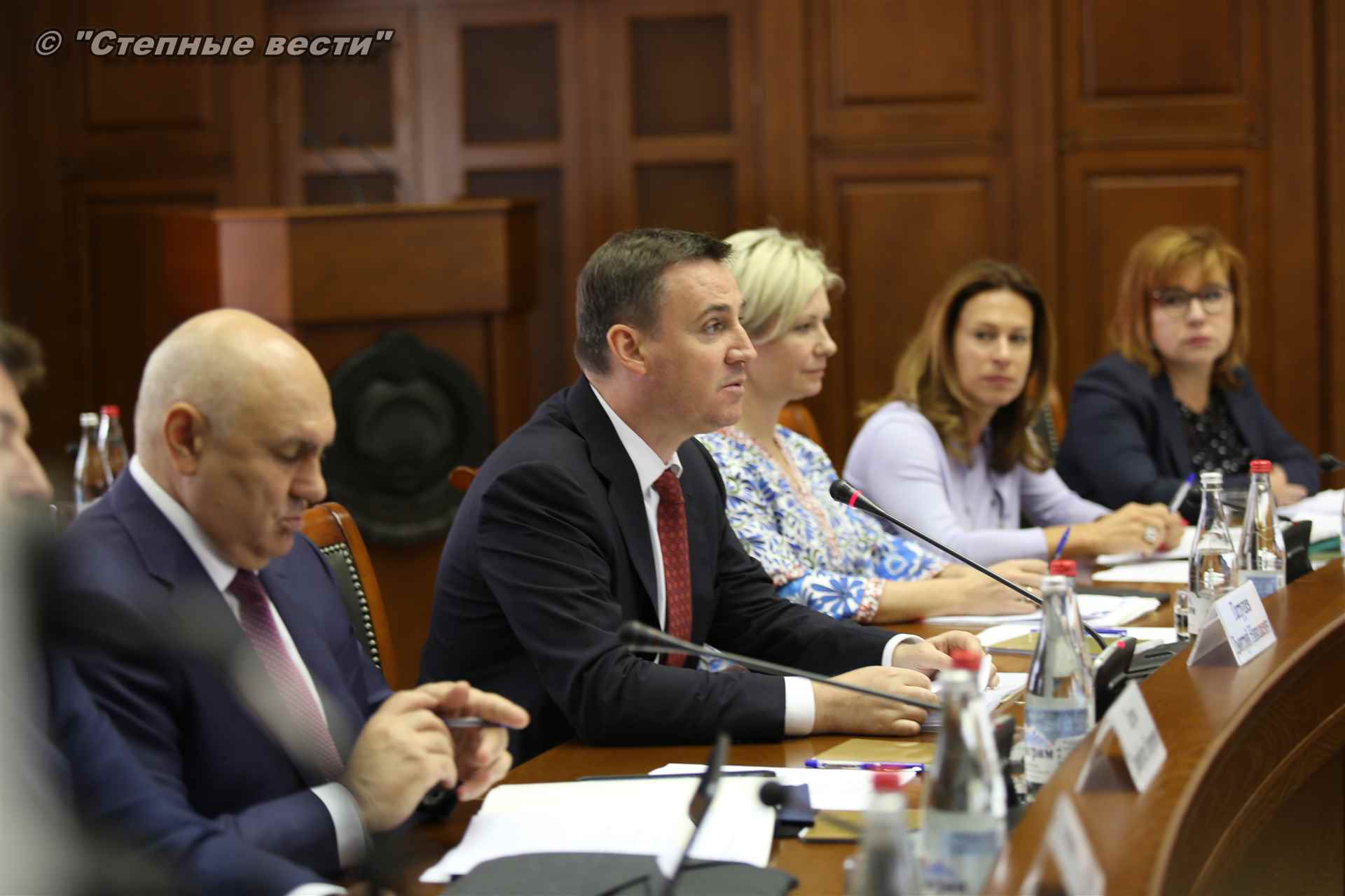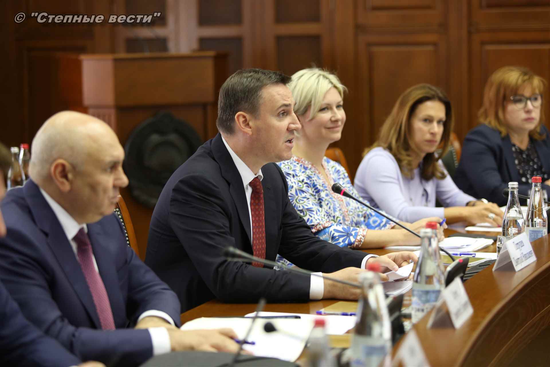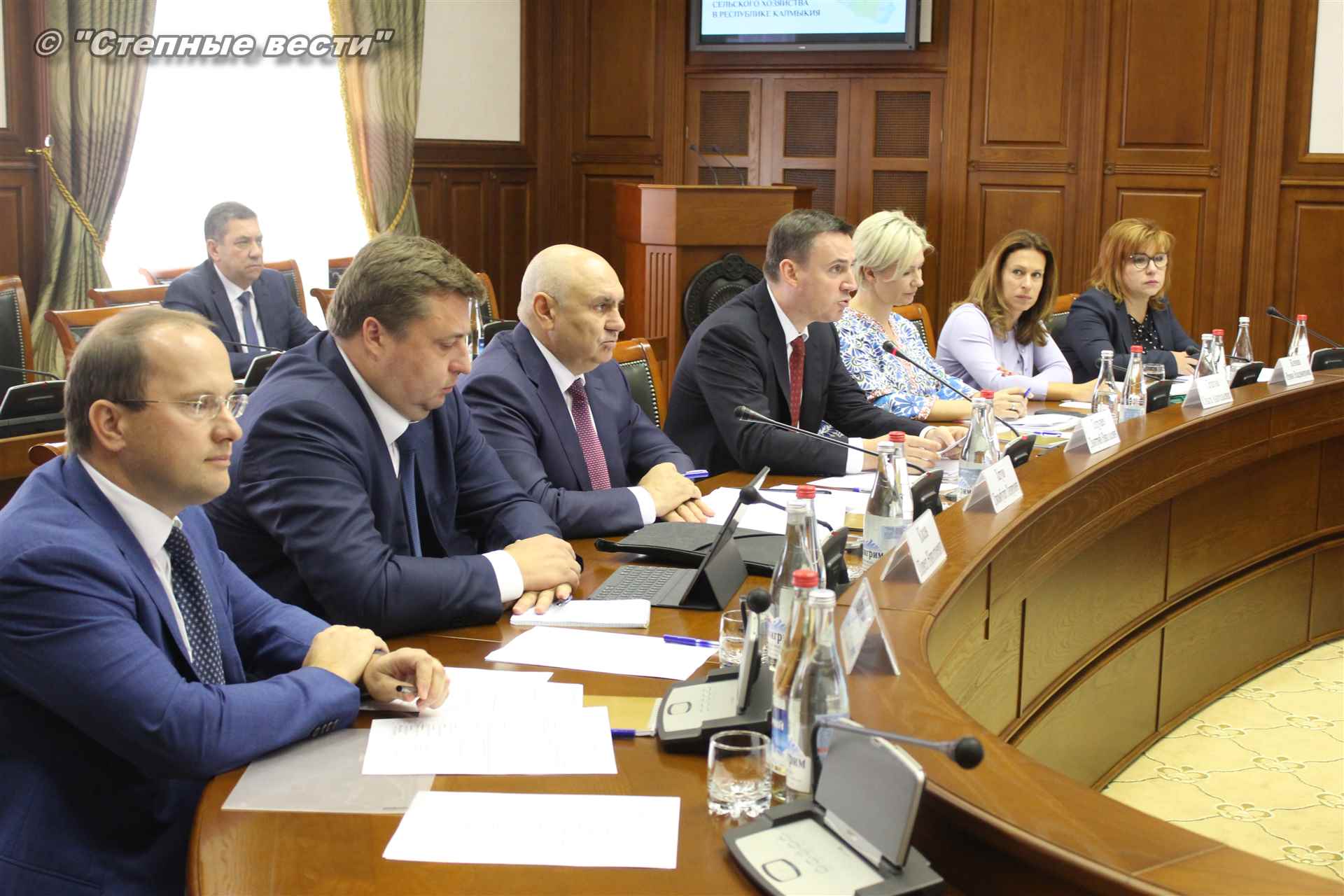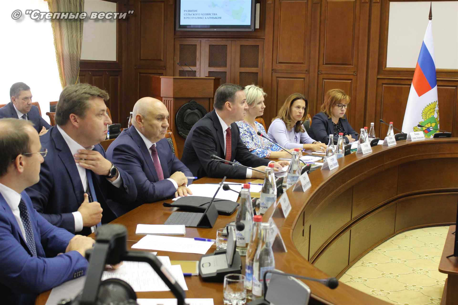 Дмитрий Патрушев представил участников совещания от Минсельхоза России – первый замминистра Джамбулат Хатуов, замминистра Ольга Гатагова, директоры ключевых департаментов, а также приглашенное руководство Россельхозбанка и Росагролизинга, и поблагодарил за представительный состав участников со стороны степной республики.