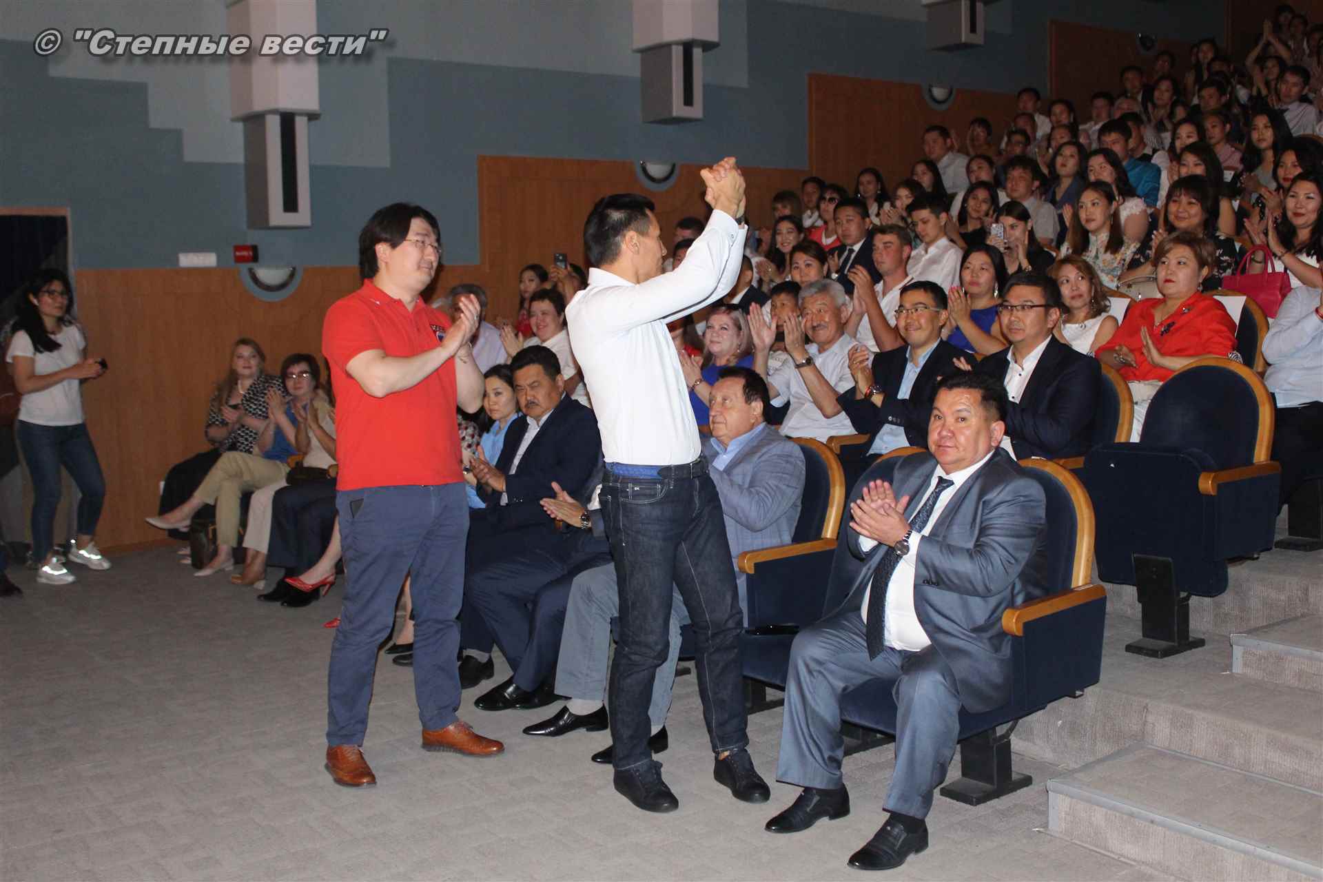 Большой праздник состоялся в большом зале заседаний Правительства РК. Здесь, на его сцене, врио Главы РК Бату Хасиков вручил дипломы с отличием магистрантам опорного регионального вуза, являющегося центром образования, науки и культуры региона. Впервые магистров — обладателей «красных» дипломов чествовали в Доме правительства; таким образом положено начало новой доброй традиции в университете и республике в целом.