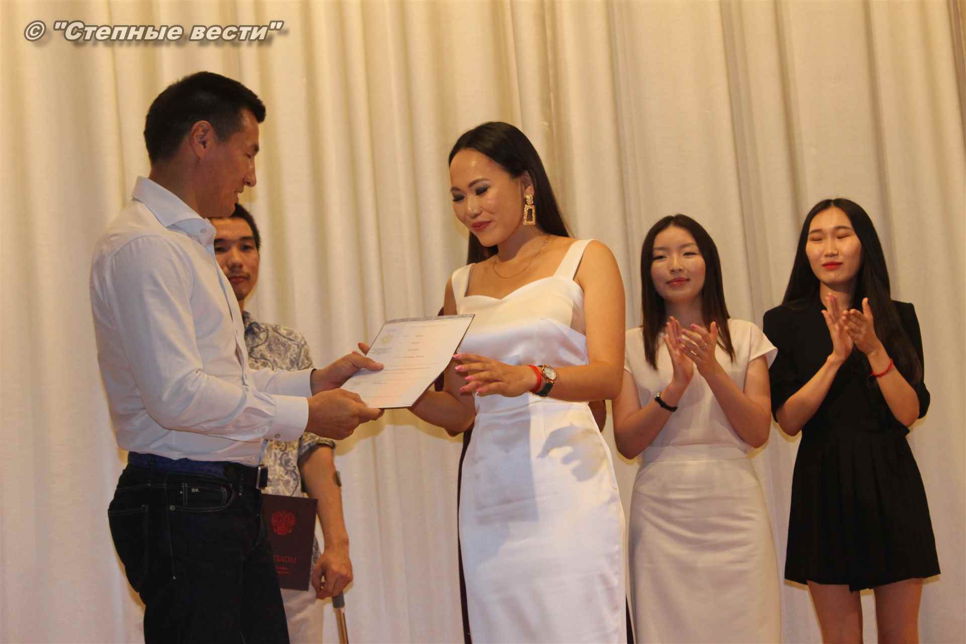 Б. Хасиков вручил дипломы с отличием выпускникам магистерских программ института калмыцкой филологии и востоковедения КалмГУ. Они завершили обучение по четырем программам, из них три являются новыми, в том числе «Литература народов России» и «Философия и культура буддизма».