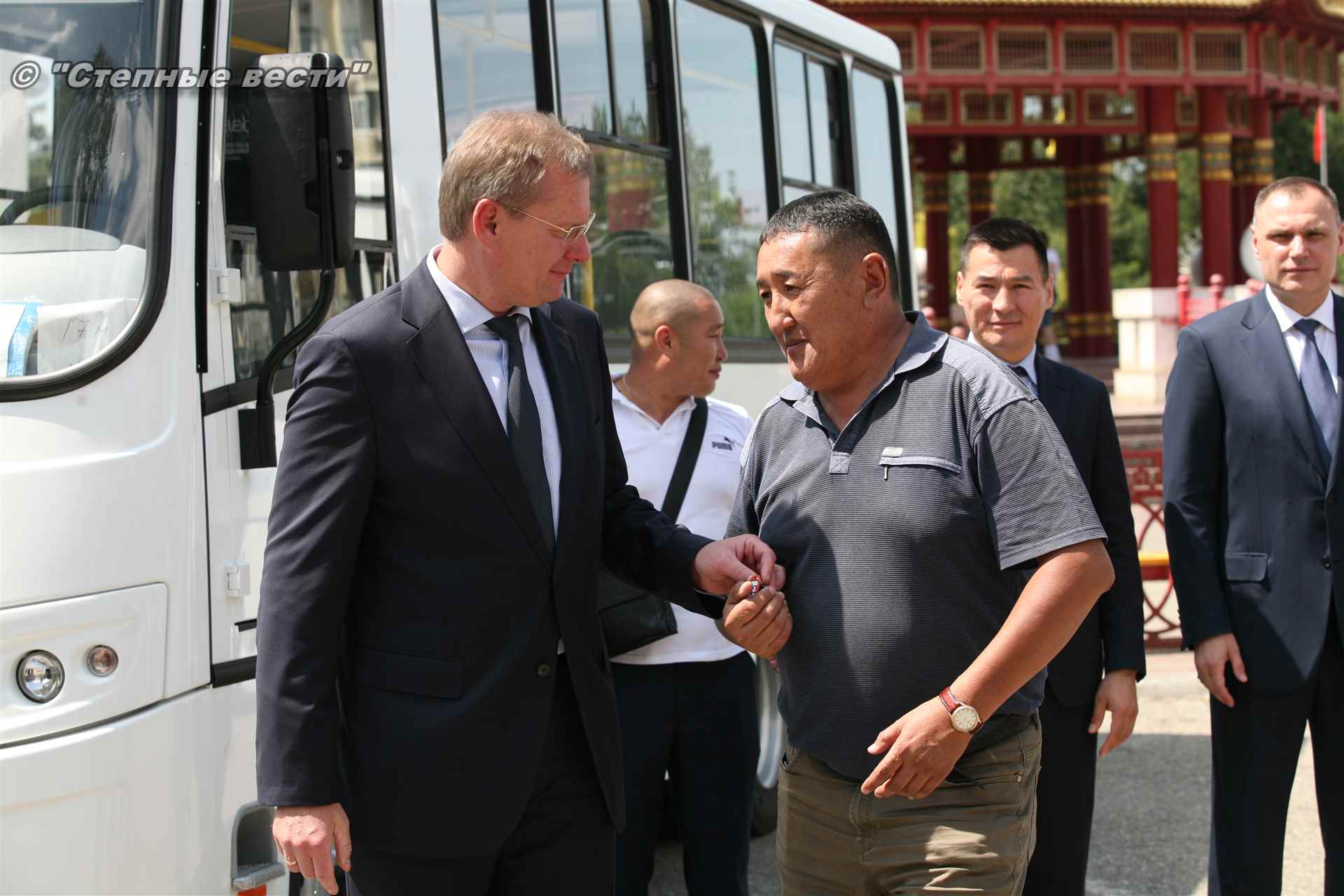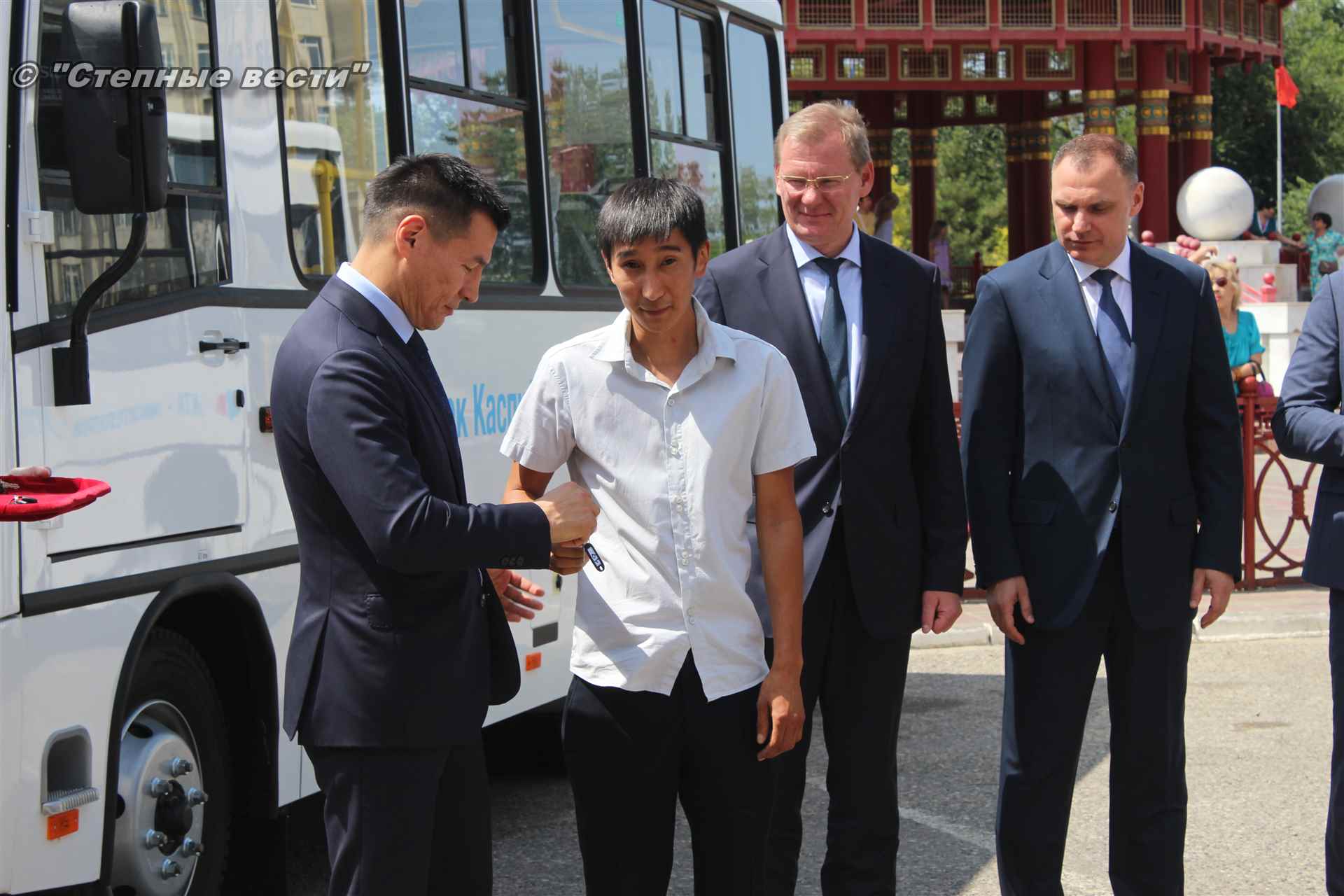 Сегодня в Элисте состоялась торжественная церемония передачи муниципальному бюджетному учреждению «Дорожное управление «Элиста-Автодор» 11-ти автобусов марки ПАЗ для транспортного обслуживания населения Элисты. Очередное пополнение муниципального пассажирского автопарка стало возможным благодаря договору о сотрудничестве в социальной сфере между Калмыкией и АО «КТК-Р», подписанному в мае текущего года.