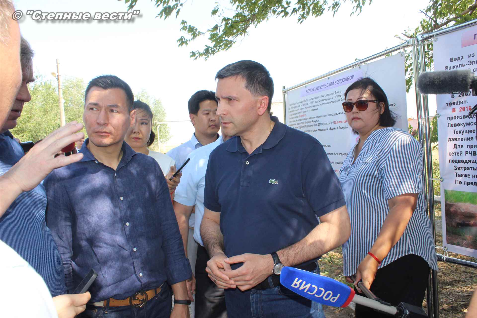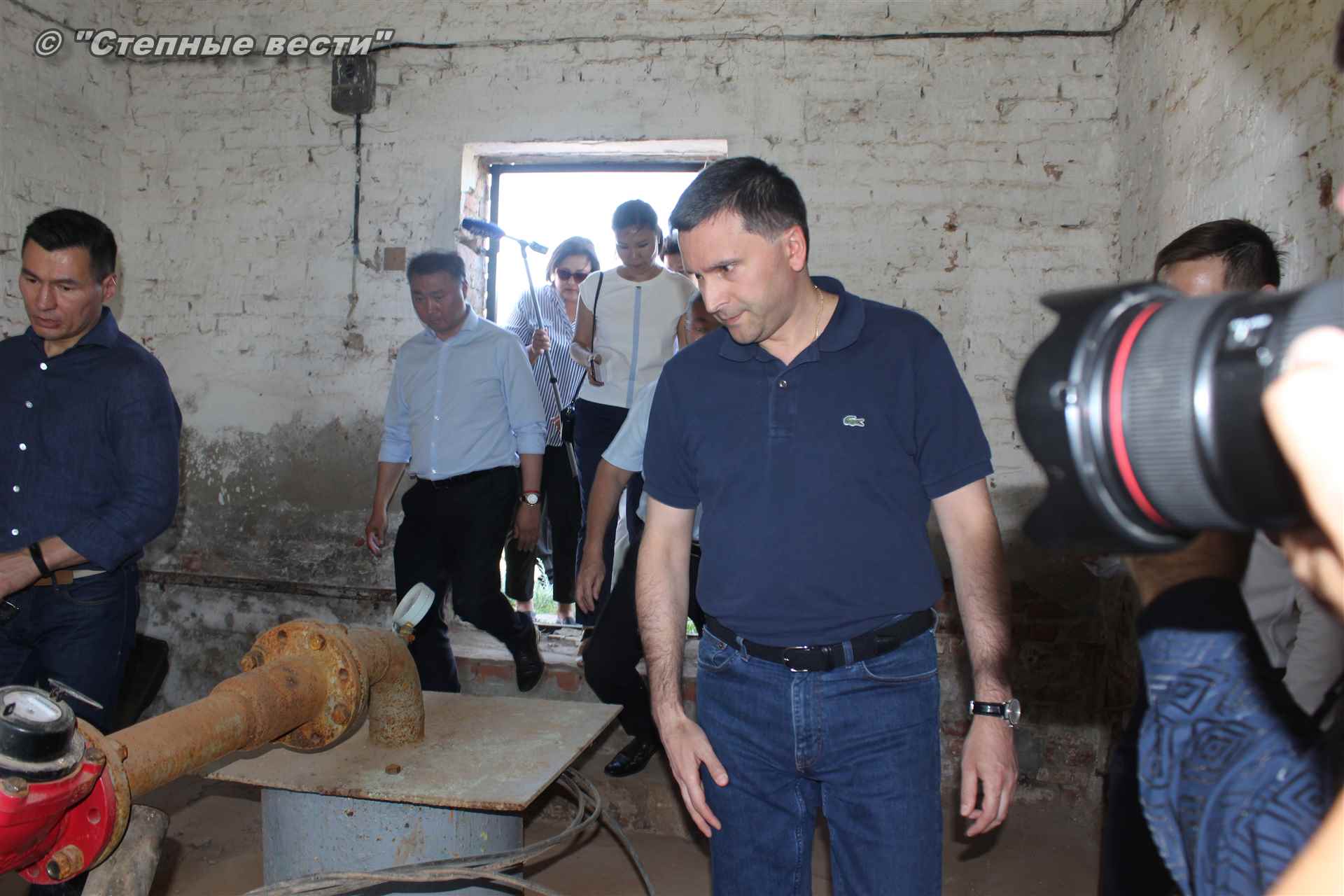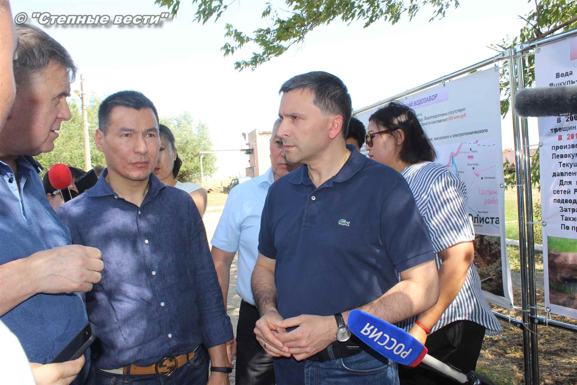 Первый объект водоснабжения федеральному министру, куратору Калмыкии показали министр жилищно-коммунального хозяйства и энергетики РК Евгений Мамутов и директор МУП «Элиставодоканал» Владимир Лиджи-Горяев.