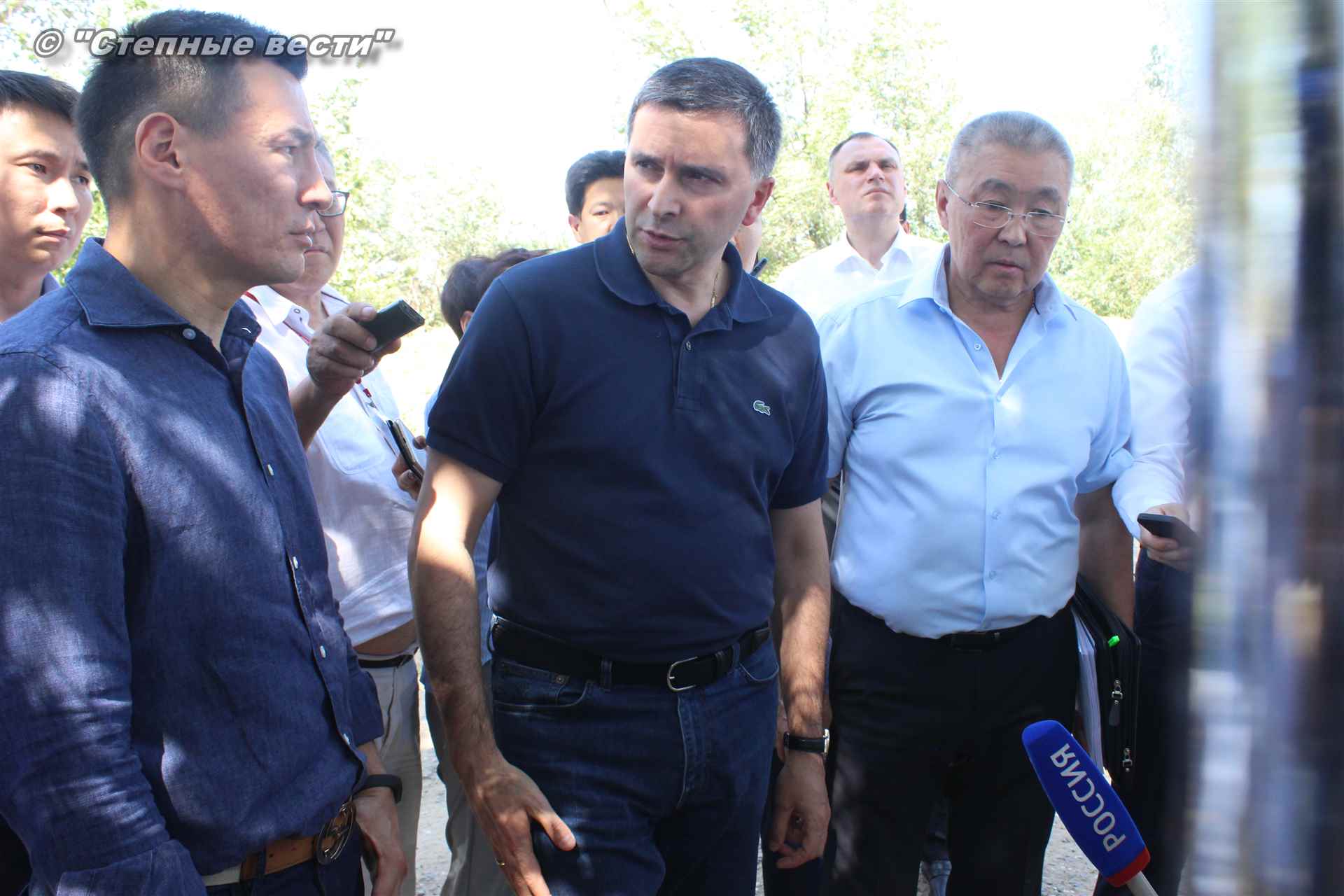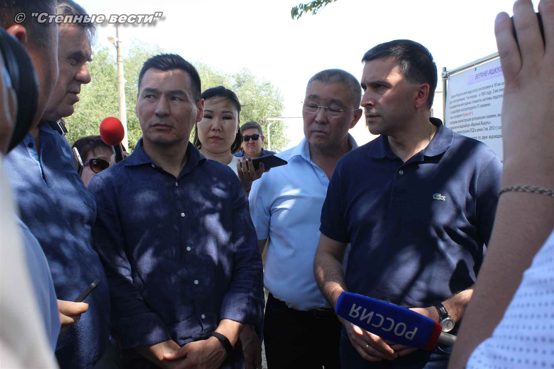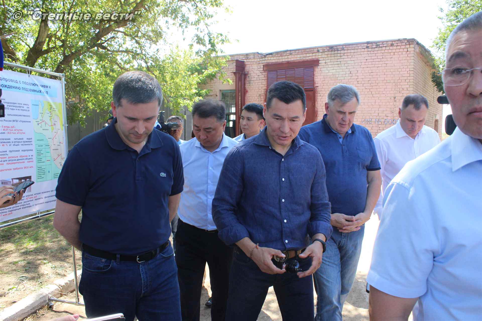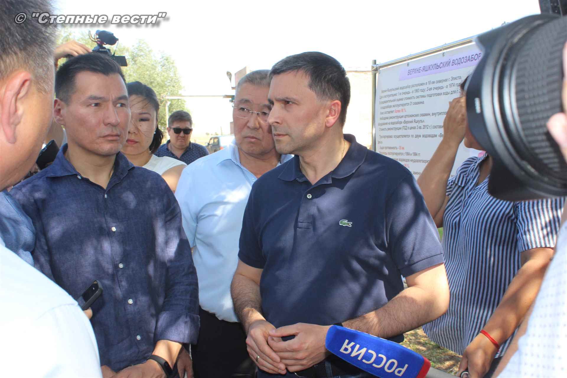Прибывший сегодня в Калмыкию министр природных ресурсов и экологии Российской Федерации Дмитрий Кобылкин и врио Главы РК Бату Хасиков побывали на территории водозабора «Верхний Яшкуль» (Троицкое месторождение подземных вод) в одноименном поселке Целинного района, затем осмотрели русло реки Элиста.