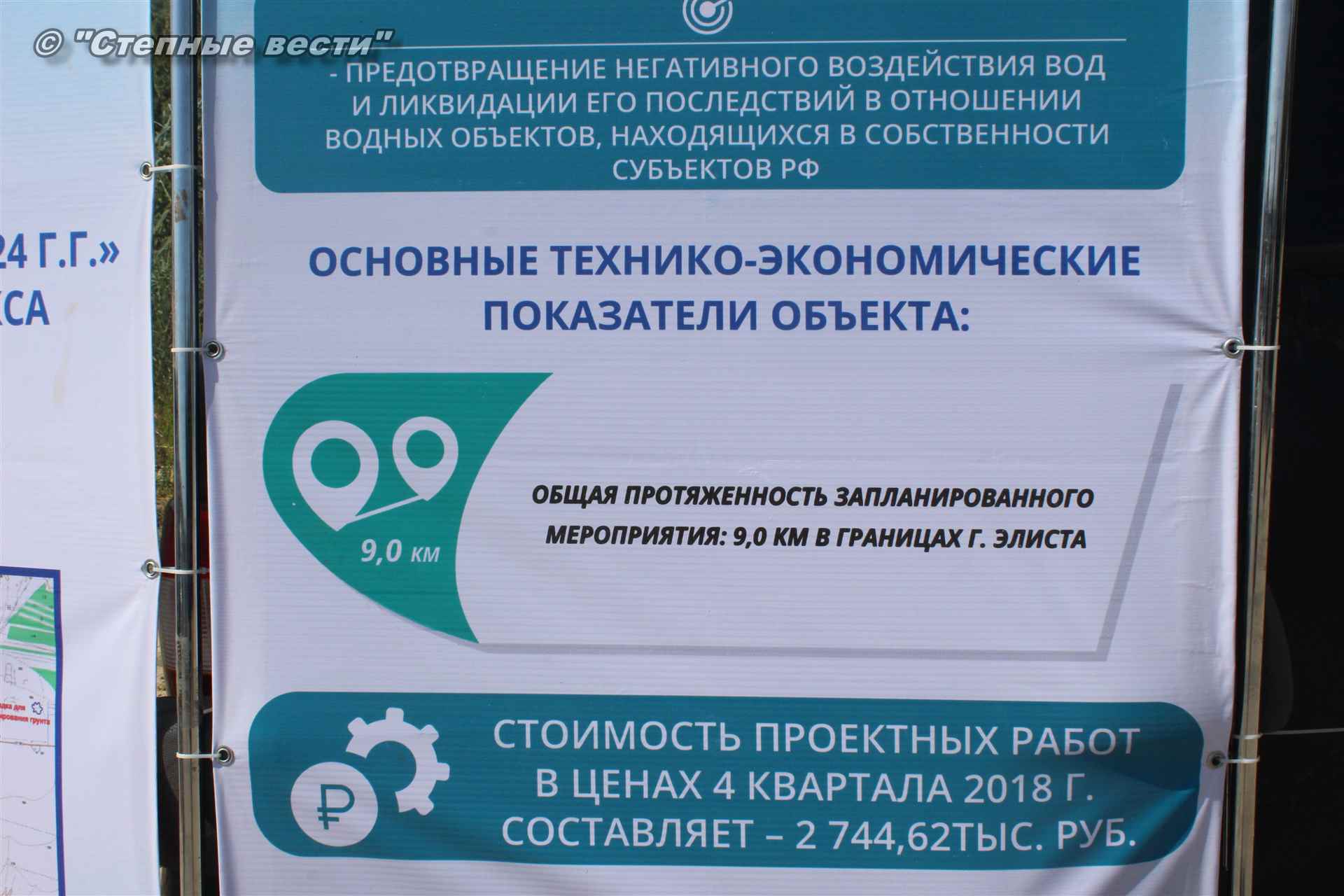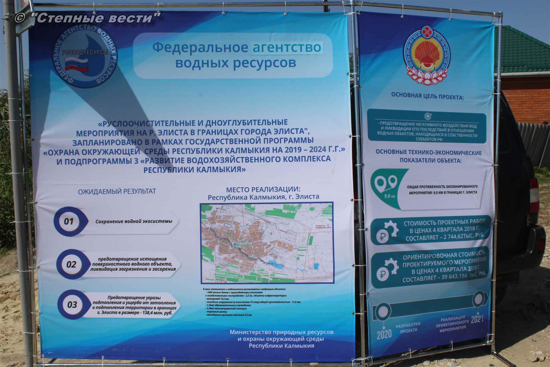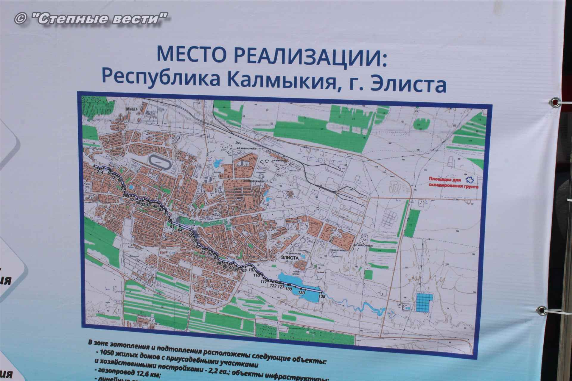 Сразу из Целинного района куратор Калмыкии и врио Главы РК отправились в столицу, где осмотрели русло реки Элиста. Здесь и.о. министра природных ресурсов и охраны окружающей среды РК Борис Сапронов рассказал федеральному министру о необходимости проведения работ, связанных с расчисткой и укреплением русла реки Элисты, протяженность которой в черте города составляет 9 км. Руководитель республиканского министерства проинформировал куратора региона о том, что в пойме реки расположены тысячи жилых домов, а во время паводка страдают около 300 из них.