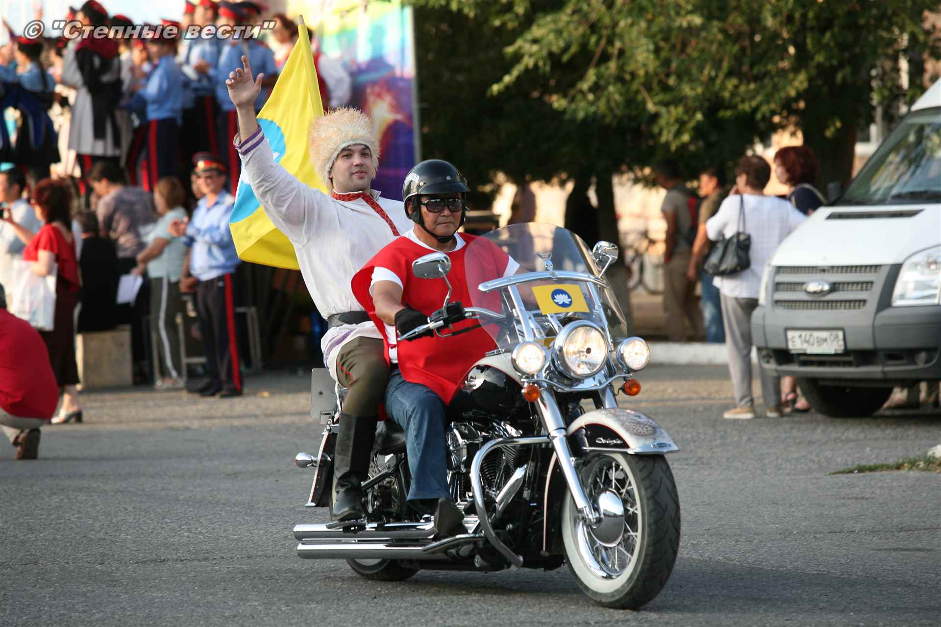 Во время мероприятия по самому центру города промчались конные казаки, проехали они и на верблюдах, и в бричке, напомнив таким образом кадры из кинофильмов. Особенно впечатлили современные казаки – байкеры и танцы в исполнении юных казаков.