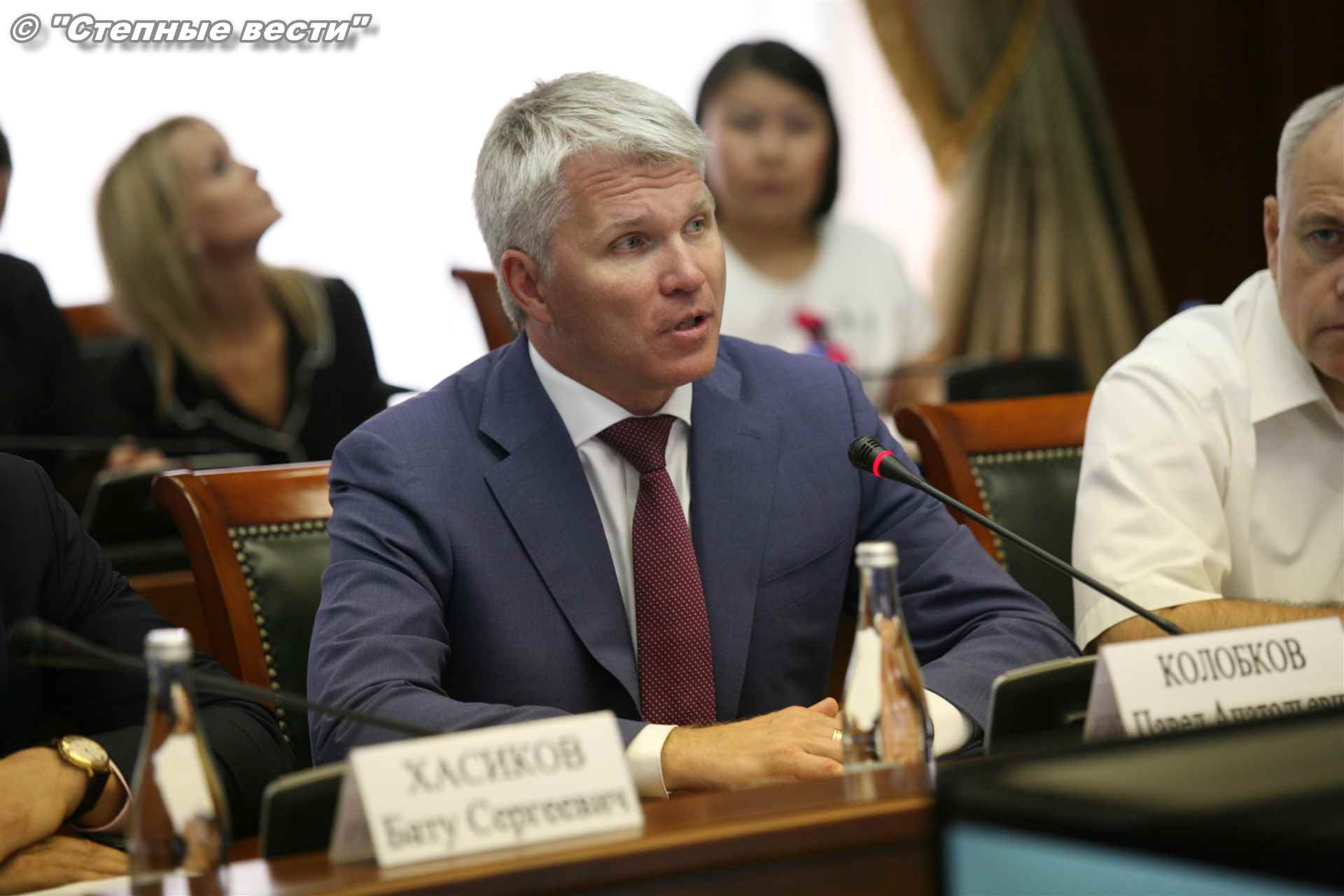 После встречи со спортивной общественностью Павел Колобков и Бату Хасиков пообщались с журналистами.