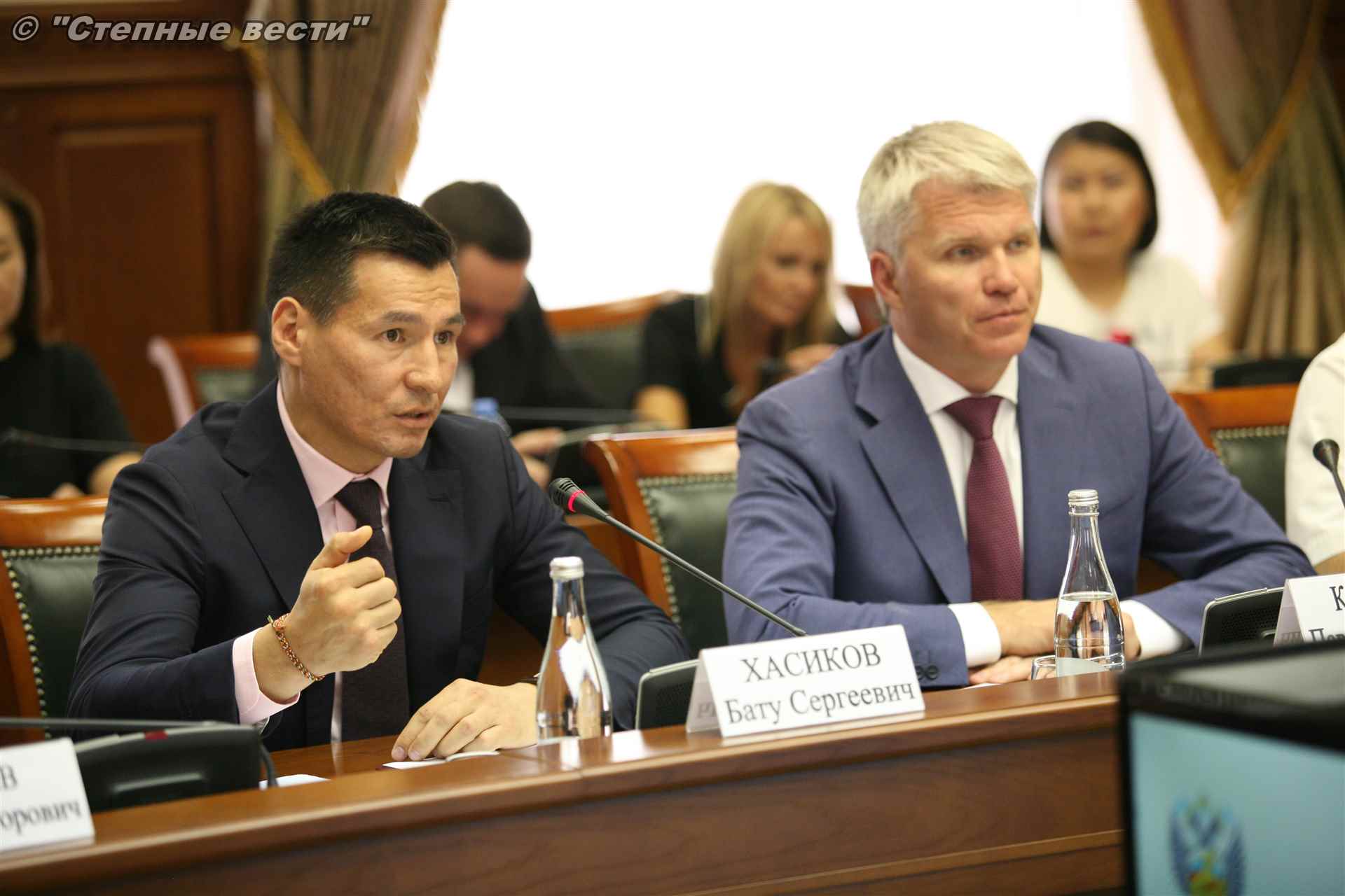 «Мы все благодарны  Павлу Анатольевичу за рабочий визит,  и хочу сказать, что Калмыкия – это тот  регион, который любит спорт,  в котором добрые спортивные традиции,  и в массовом спорте и в спорте высших достижений нам есть чем гордиться», — подчеркнул Бату Хасиков.