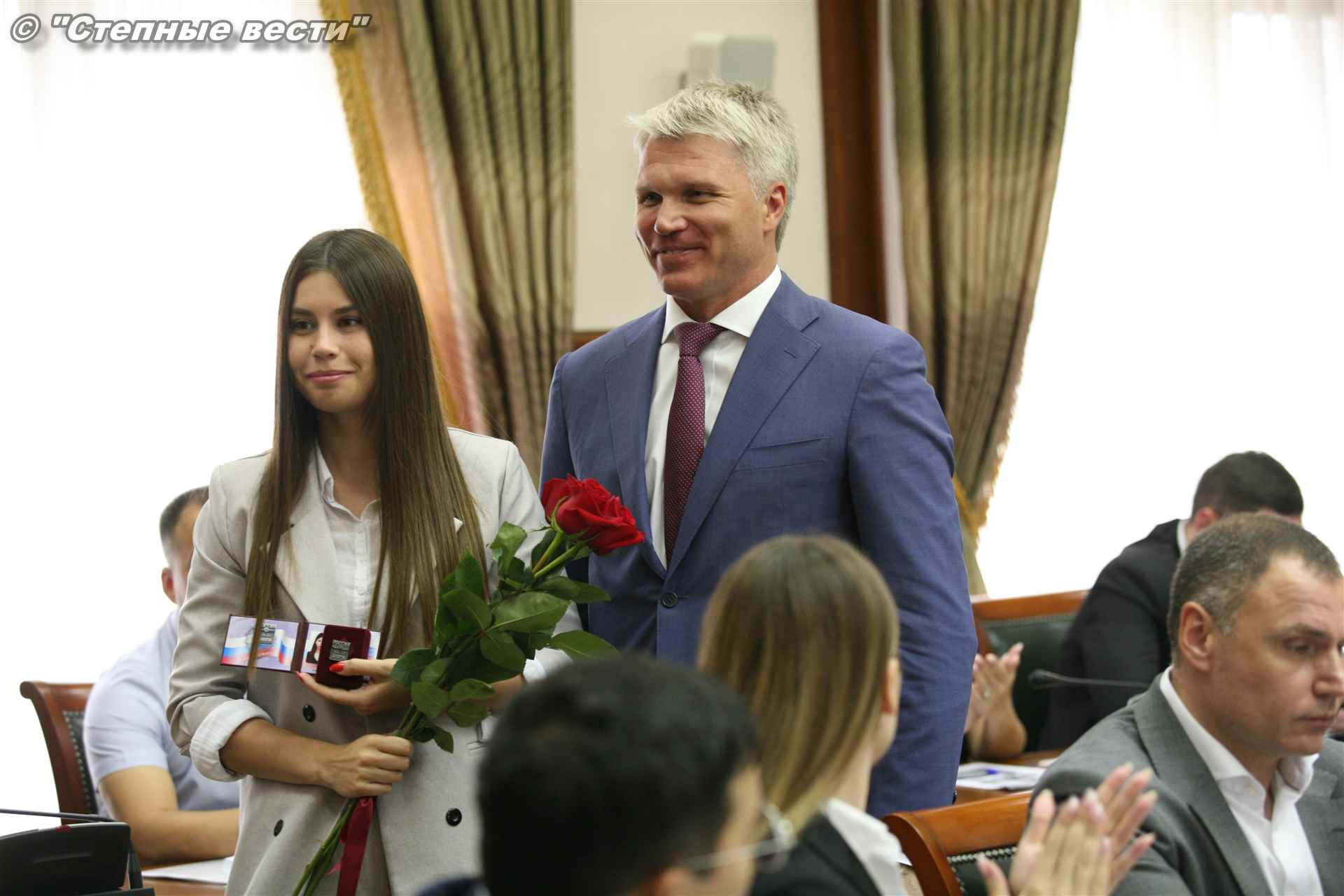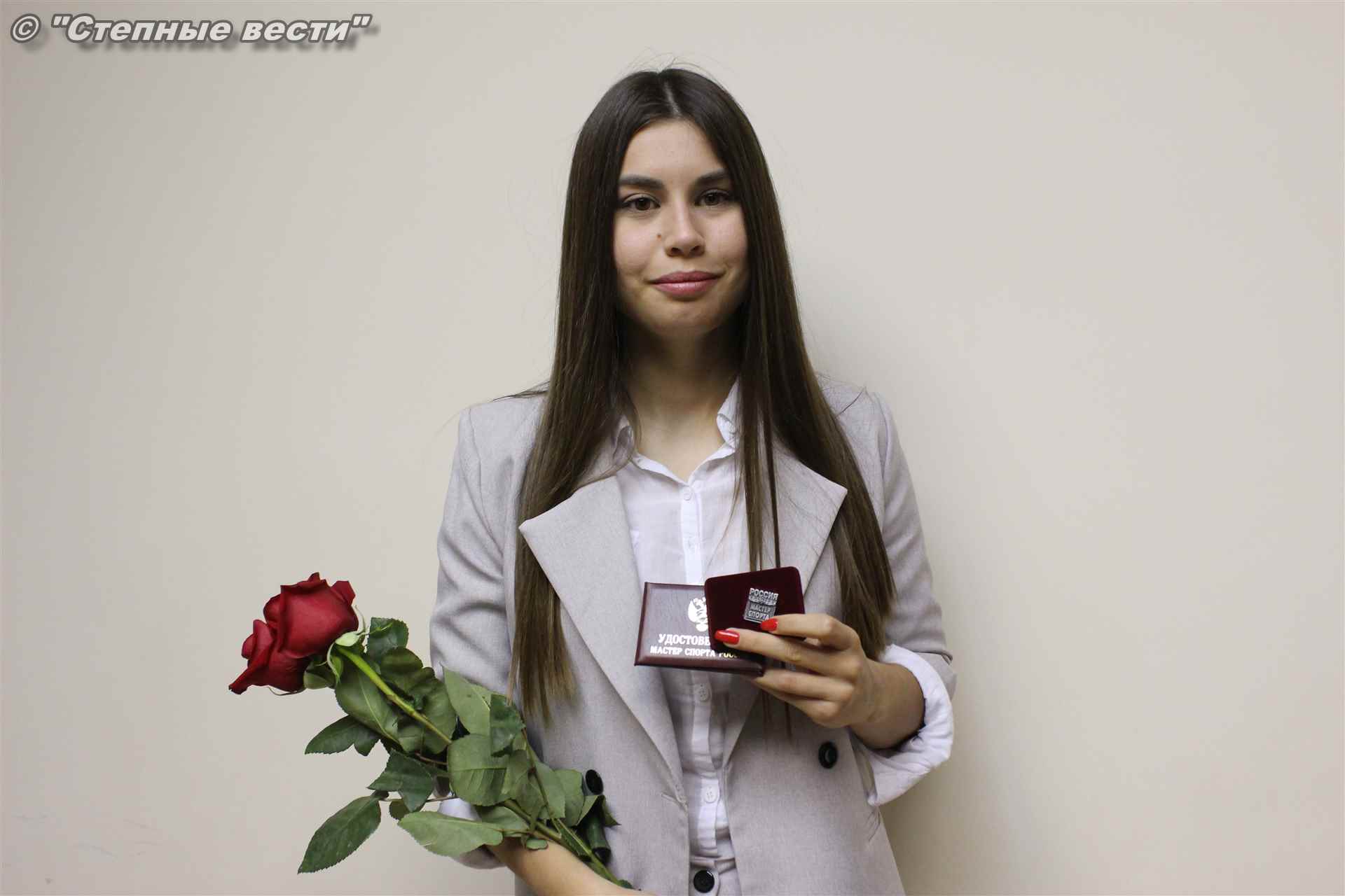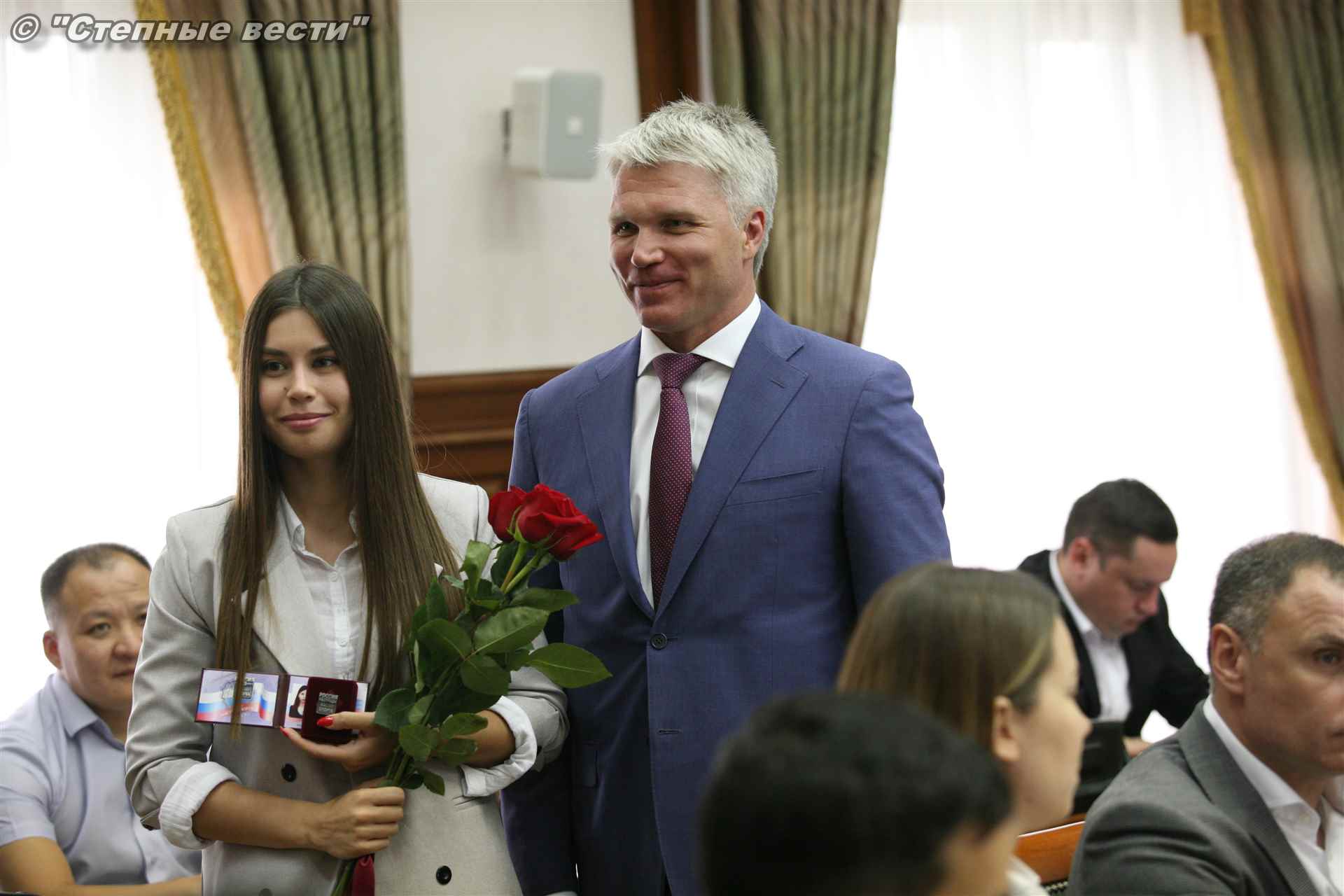Во время встречи с общественностью Павел Колобков поздравил студентку Калмыцкого госуниверситета Екатерину Шараеву с присвоением ей звания мастера спорта России по армрестлингу, вручив соответствующие удостоверения и нагрудный знак.