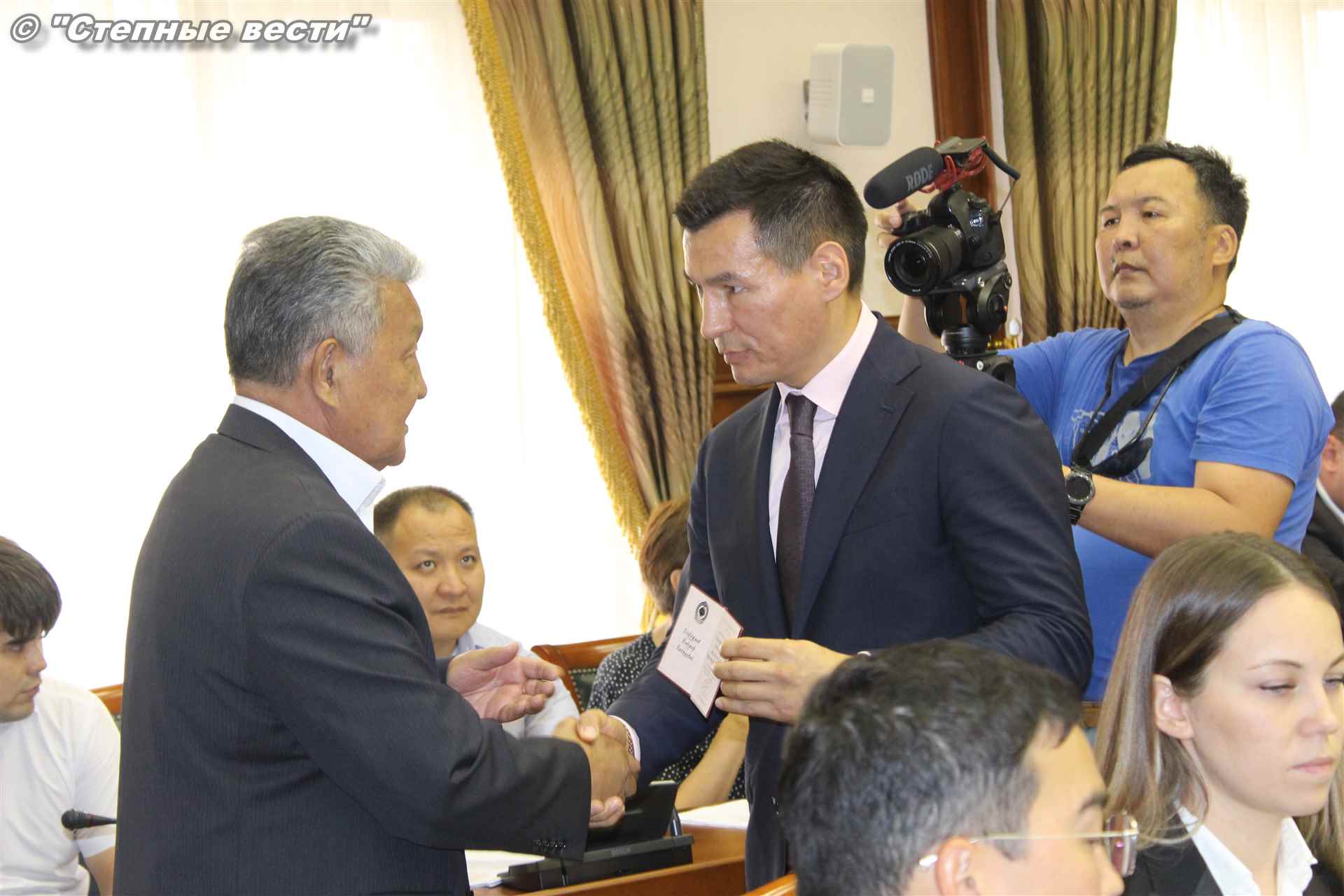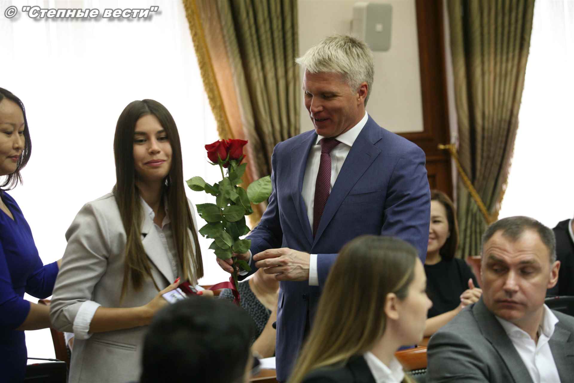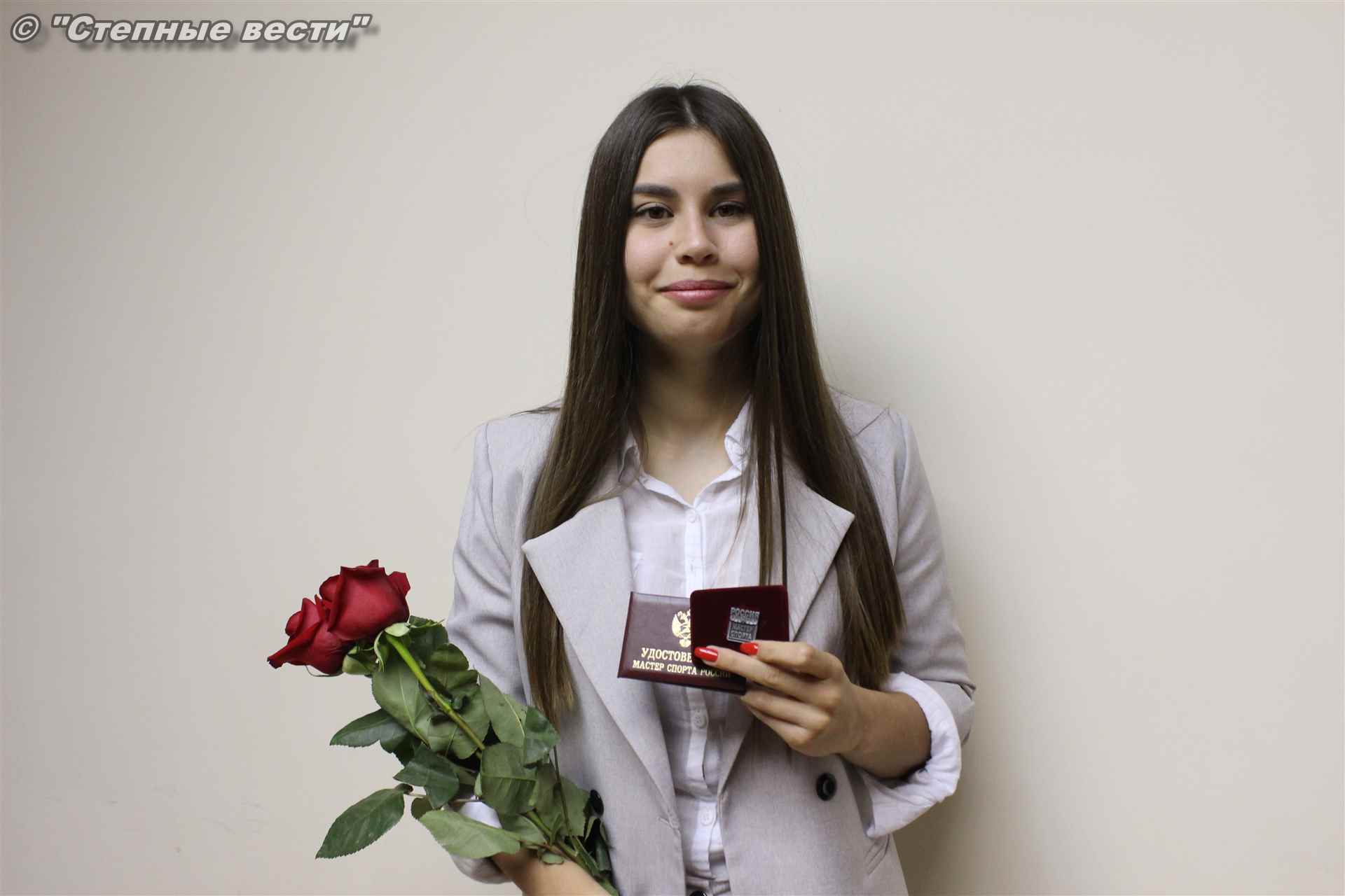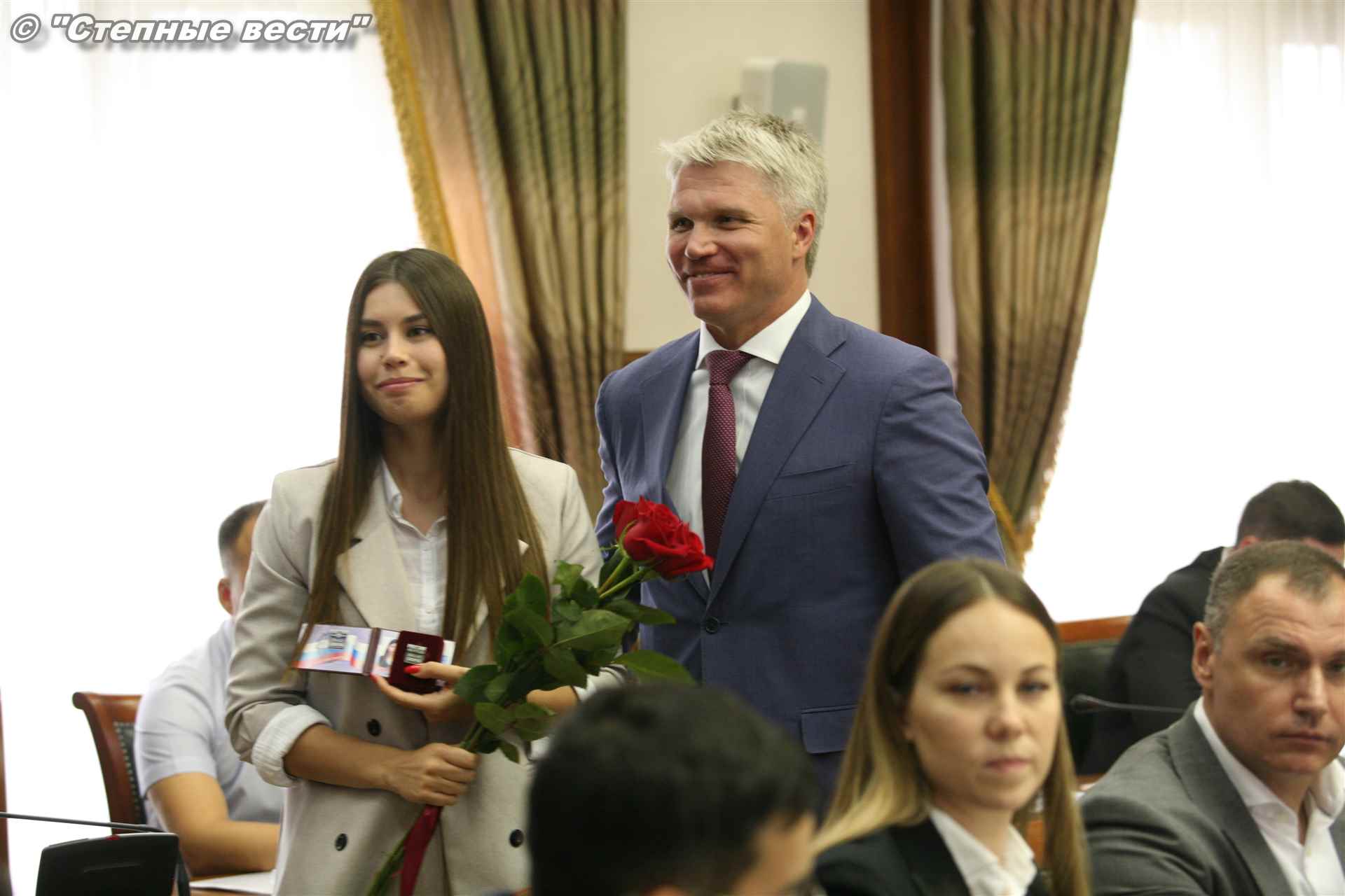 Во время встречи с общественностью Павел Колобков поздравил студентку Калмыцкого госуниверситета Екатерину Шараеву с присвоением ей звания мастера спорта России по армрестлингу, вручив соответствующие удостоверения и нагрудный знак.