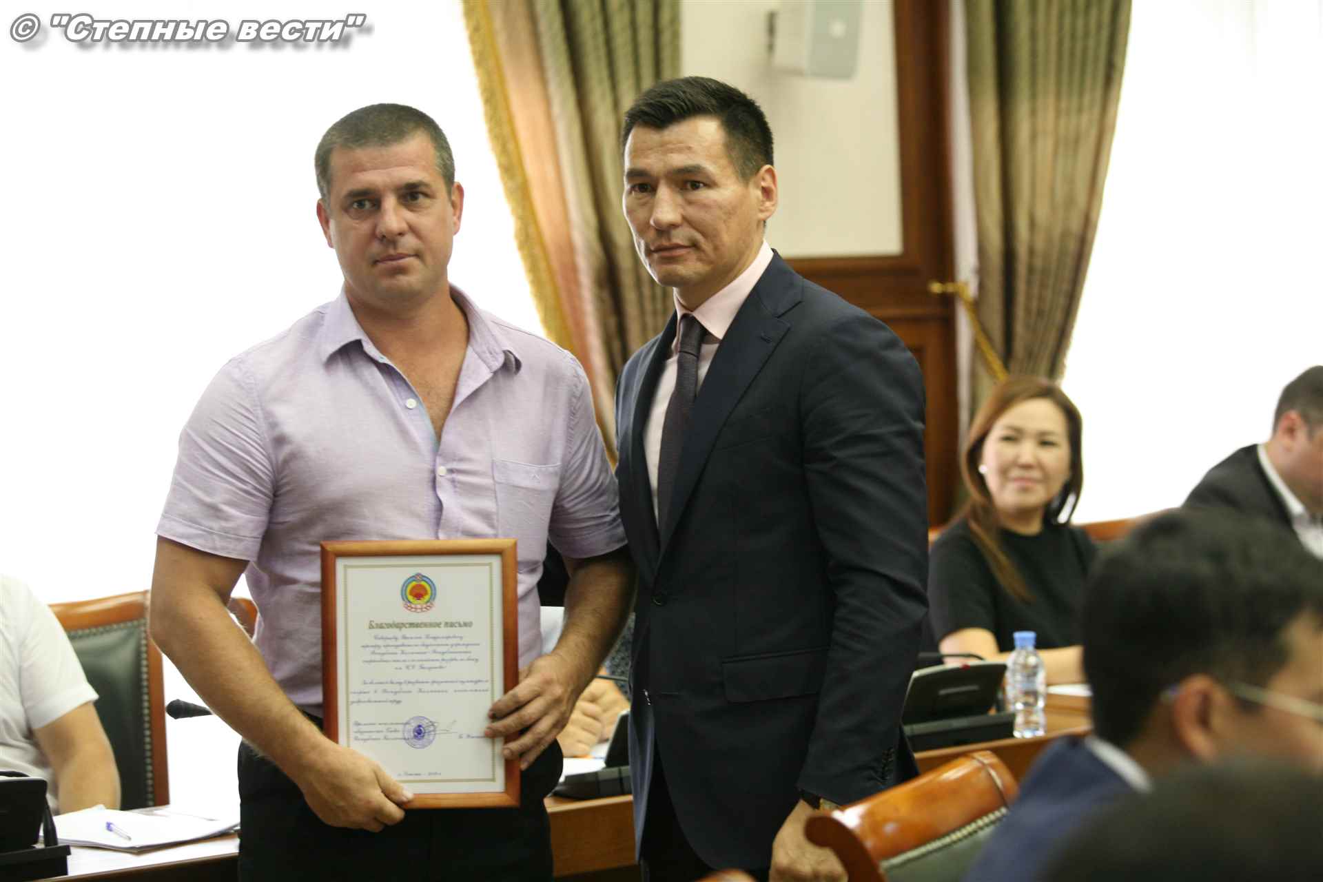 Здесь также чествовали ветерана спортивного движения Александра Дамбинова и тренера – преподавателя республиканской школы по боксу имени Ц.С. Балзанова Василия  Скворцова, которым Бату Хасиков вручил благодарственные письма Главы РК за вклад в развитие физкультуры и спорта, многолетний добросовестный труд. Руководитель региона также вручил награду и Виктору Дорджиеву, которому присвоено почетное звание «Заслуженный работник физической культуры и спорта РК».