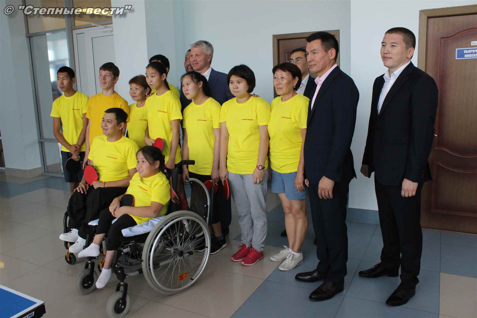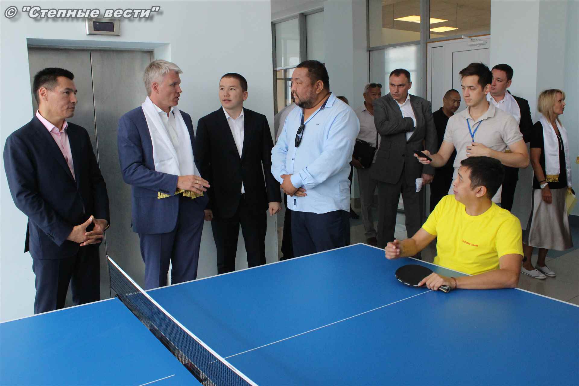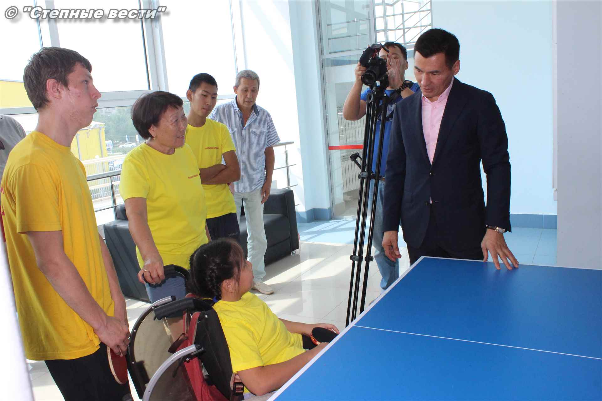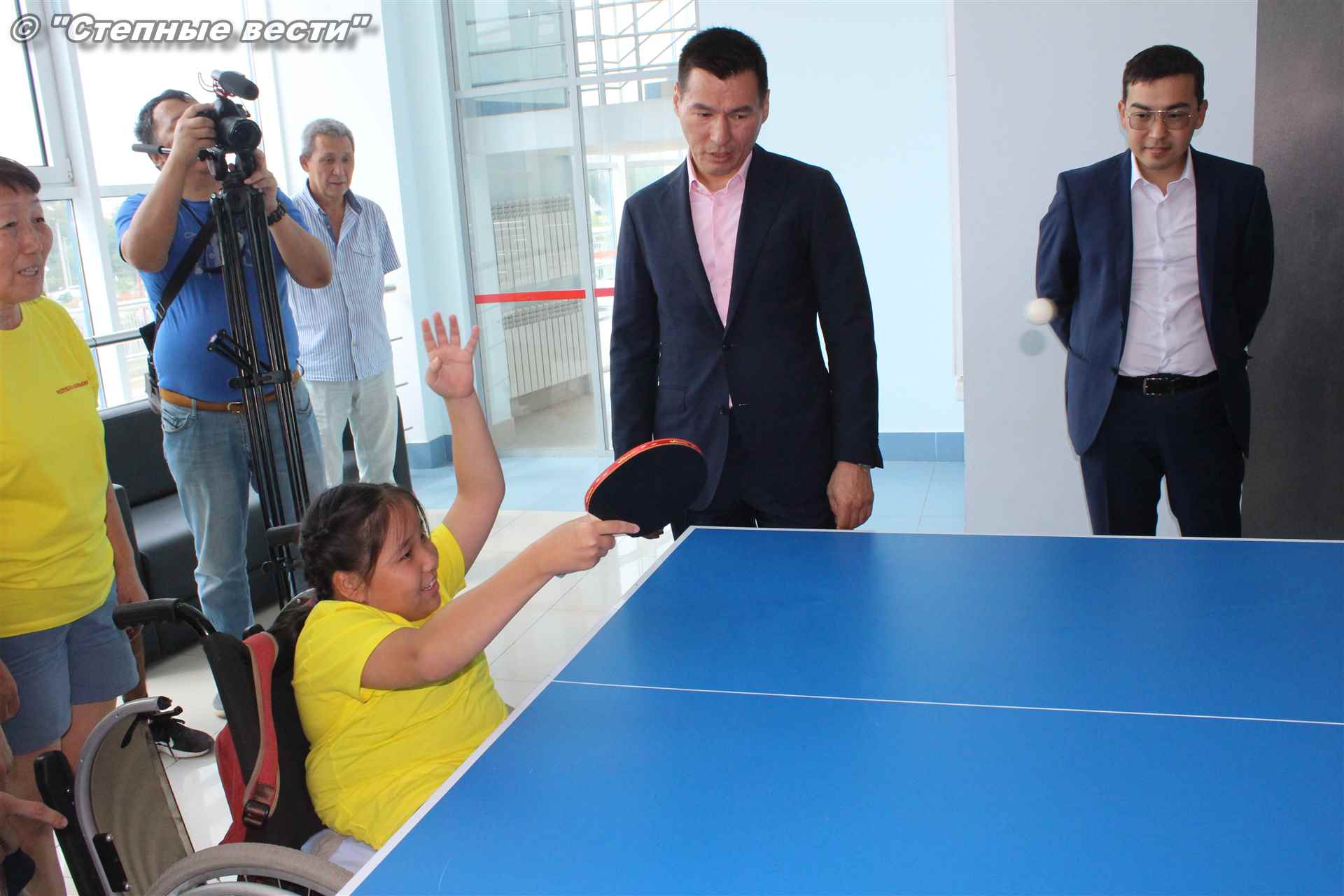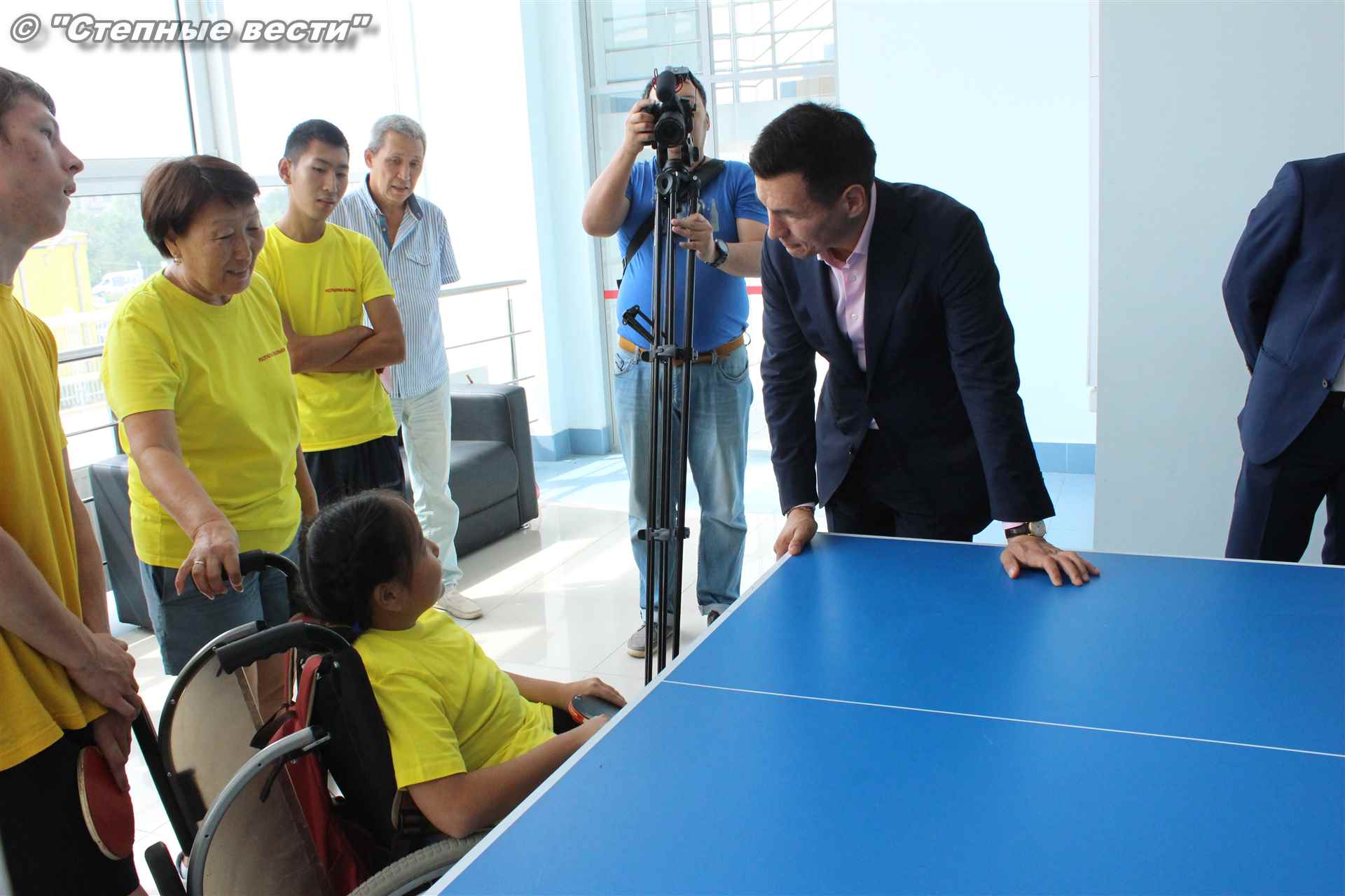 На первом этаже федеральный чиновник и руководитель республики пообщались с юными воспитанниками Республиканского  центра адаптивной физической культуры и спорта и тренером по настольному теннису Викторией Зудбиновой.
