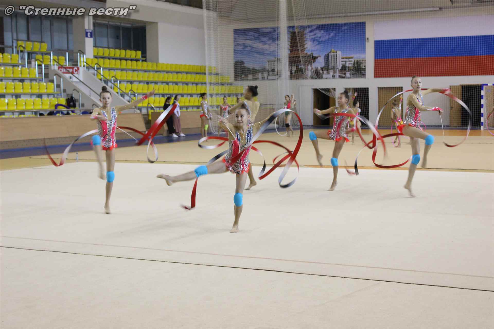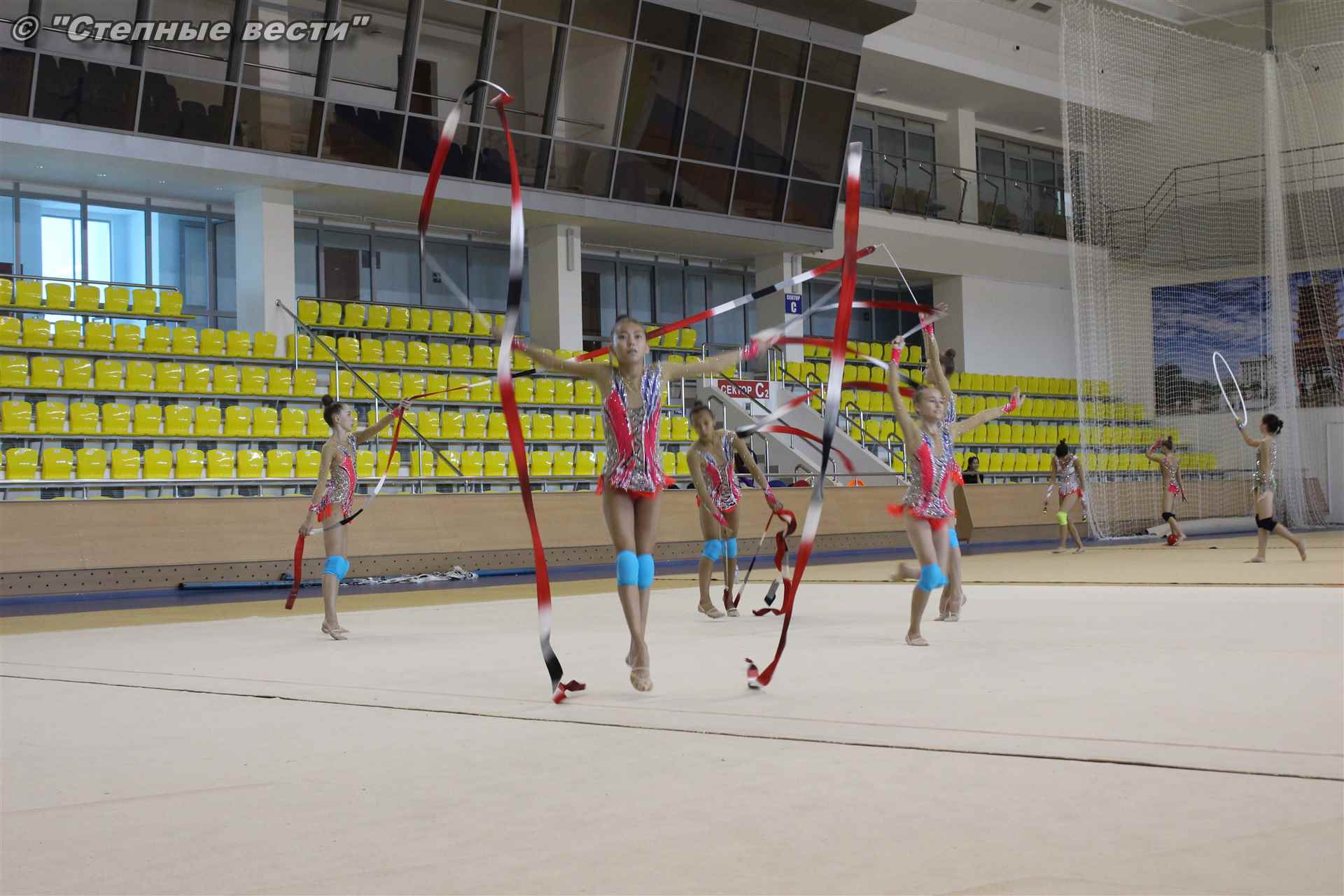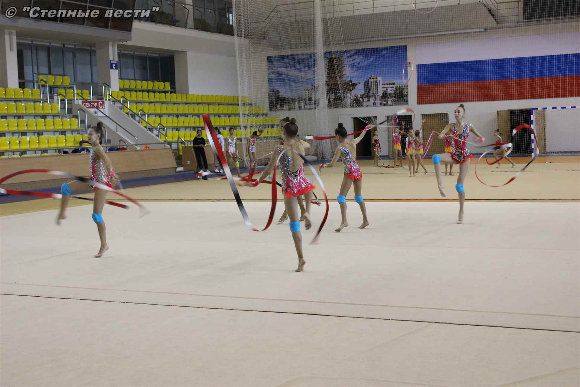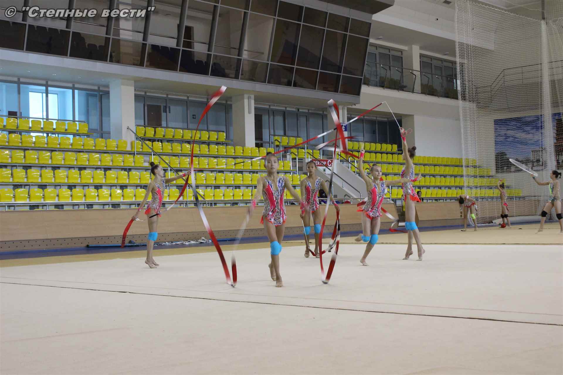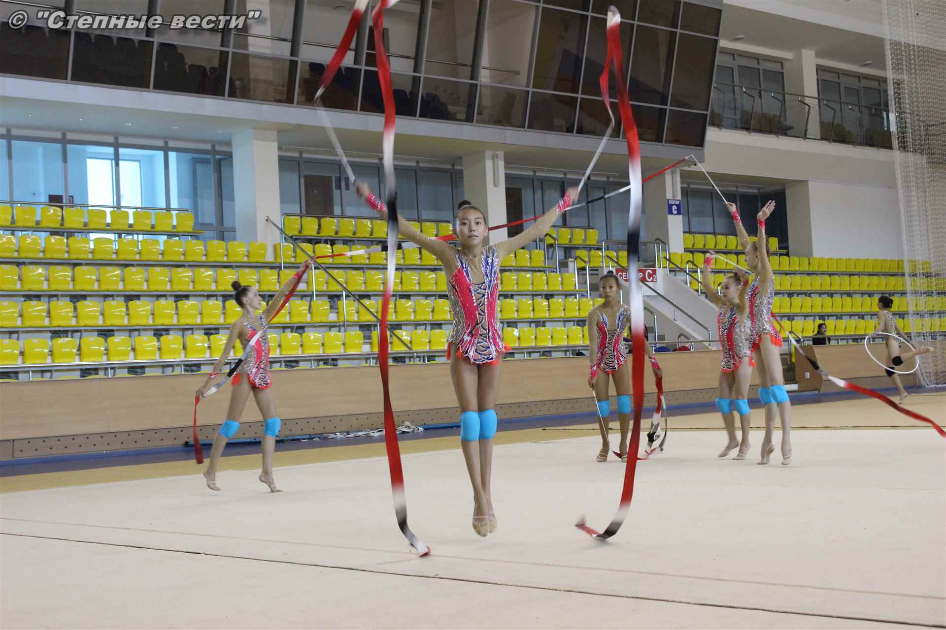 На универсальной арене, где сейчас занимаются юные гимнастки, с Павлом  Колобковым и Бату Хасиковым побеседовали  заслуженный тренер России Людмила Гальченко и олимпийская чемпионка по художественной гимнастике в Лондоне, Герой Калмыкии, президент Федерации художественной гимнастики РК Алина Макаренко.