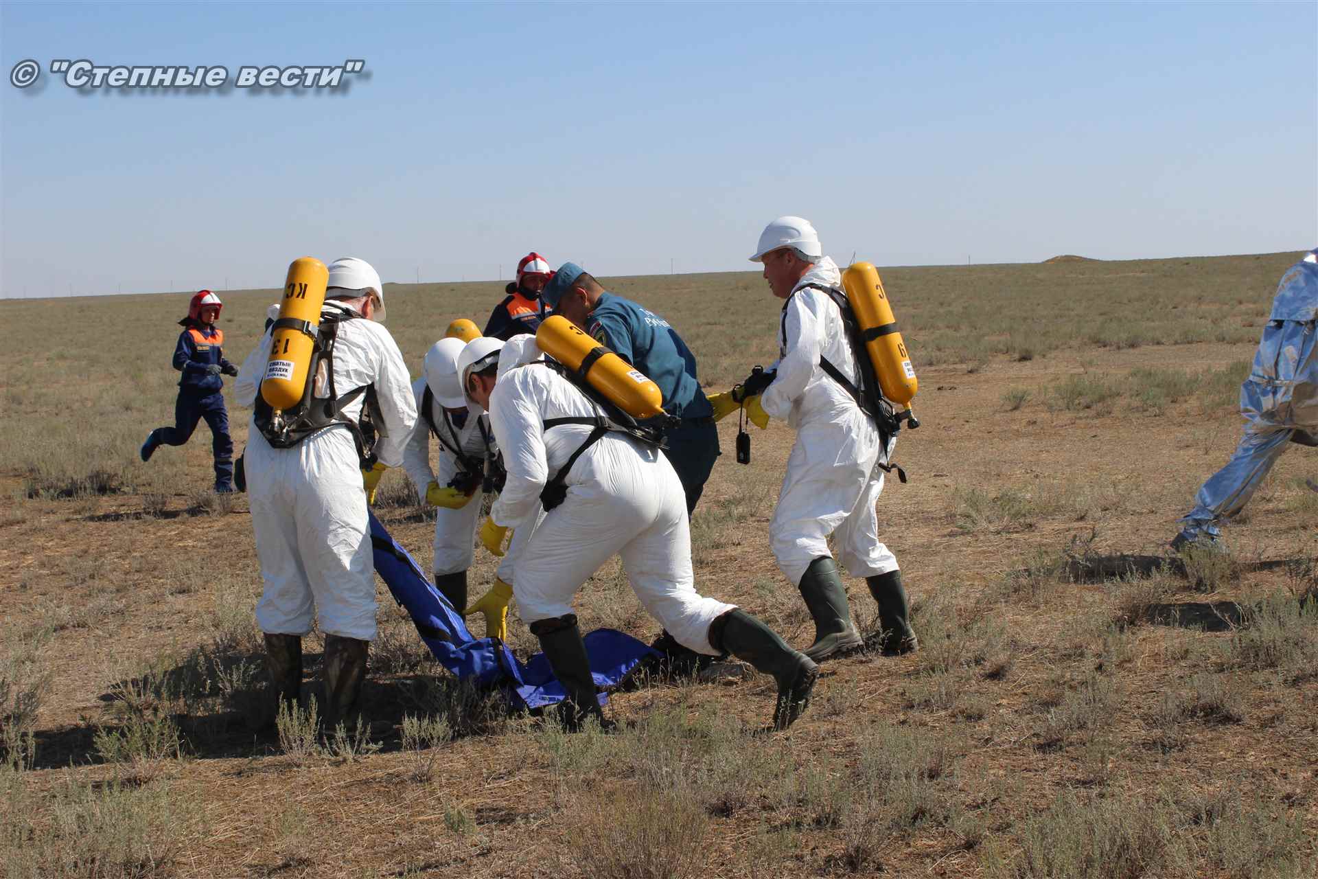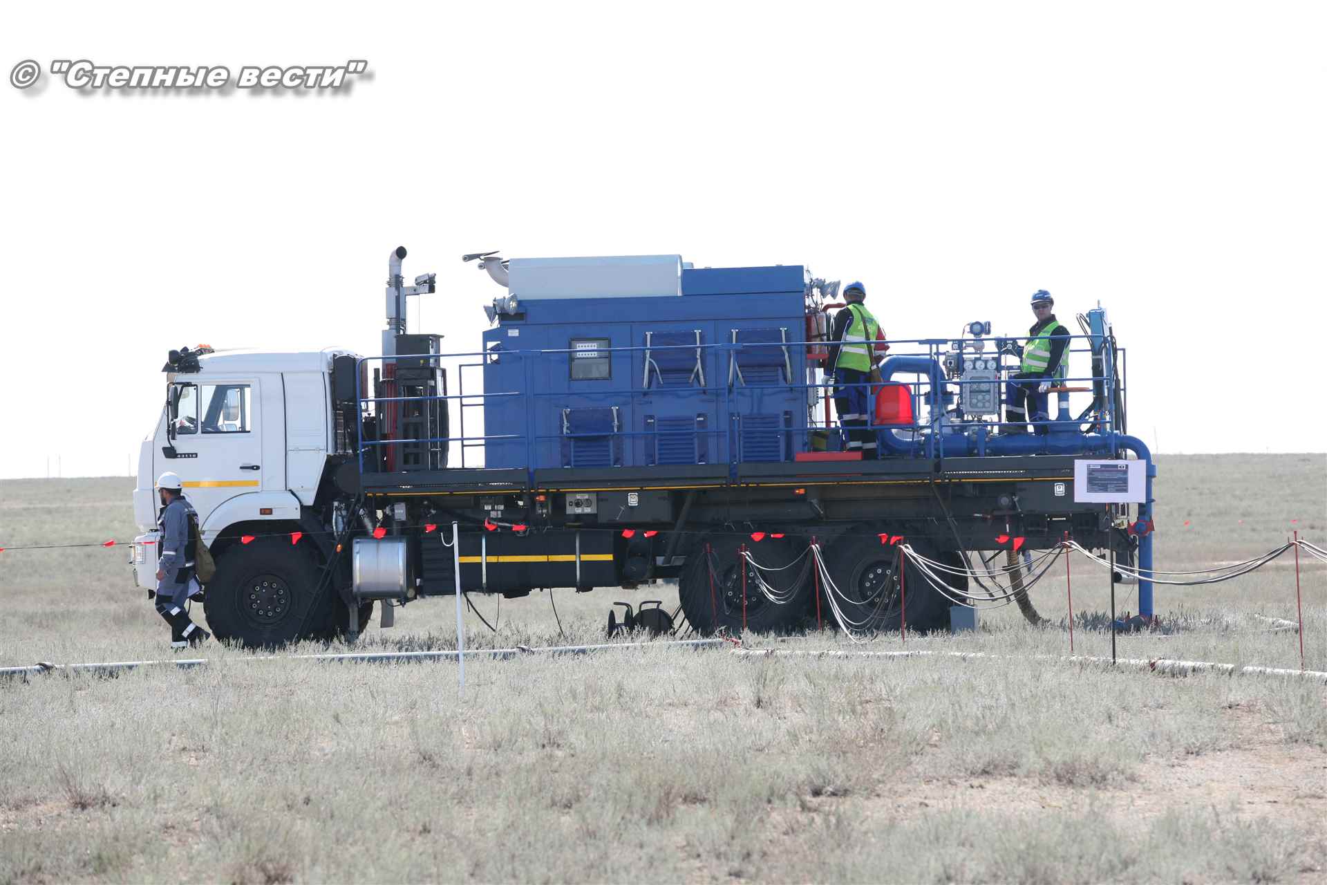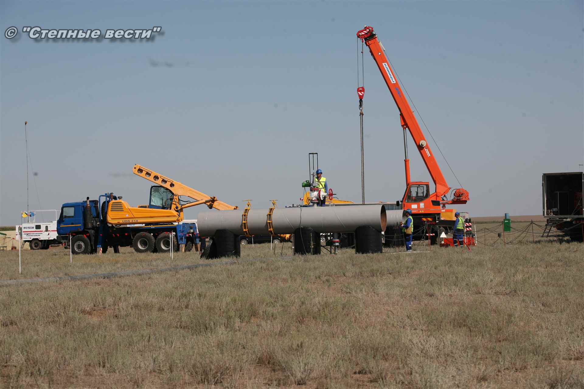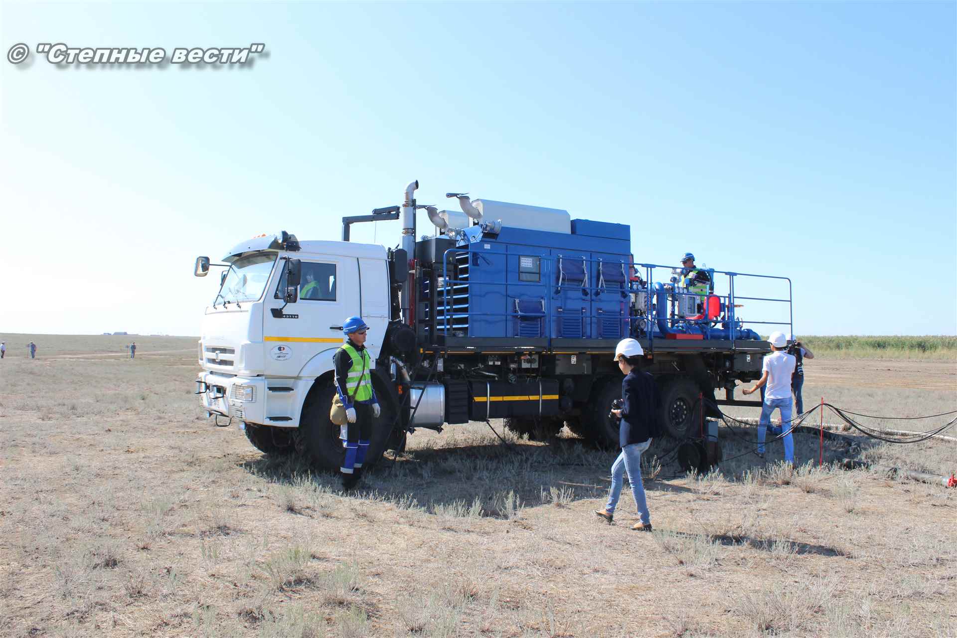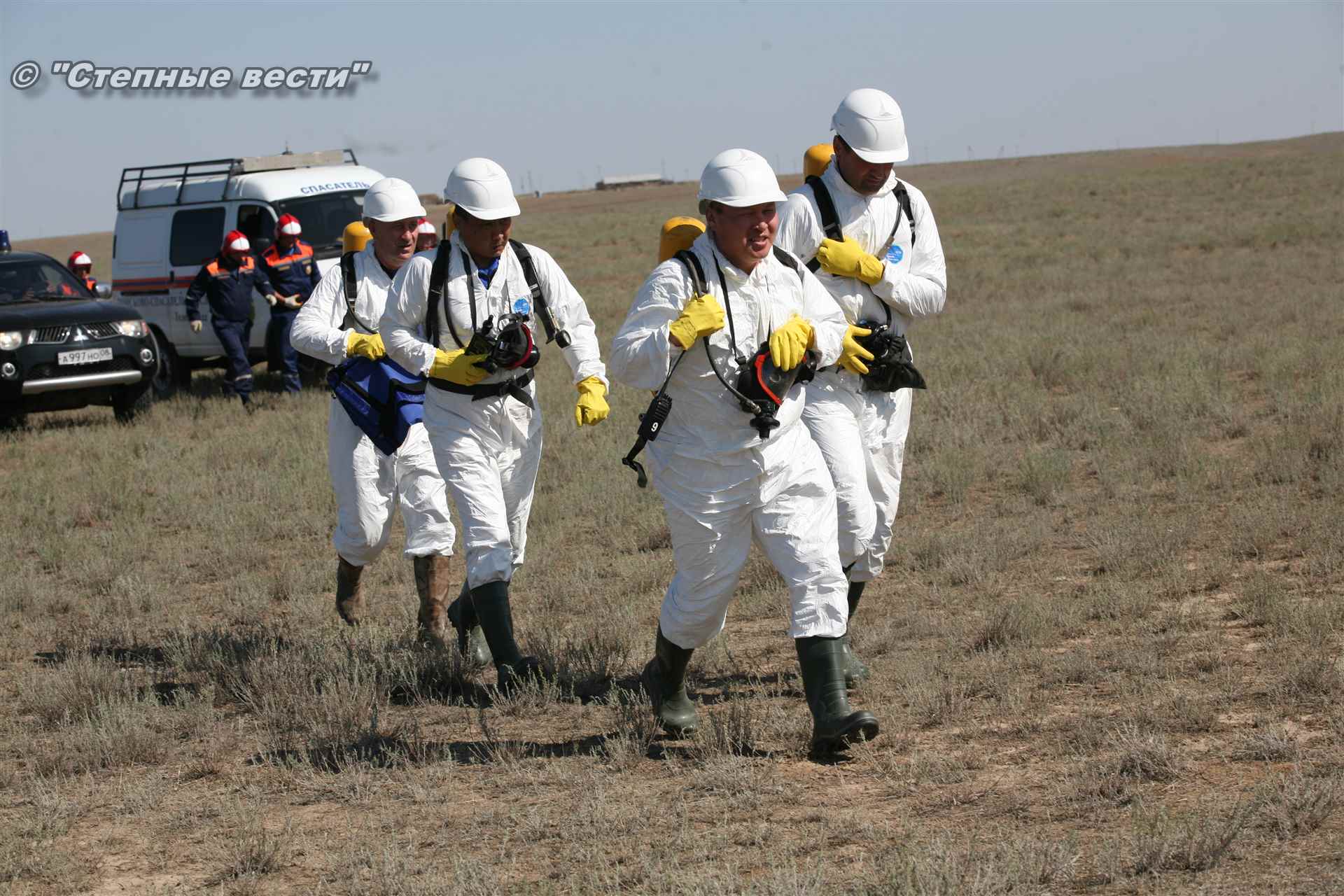 Ликвидация огня в степи — это один из этапов учений. Дело в том, что по замыслу в результате нарушения требований пожарной безопасности при проведении работ по откачке нефти из аварийного участка произошло возгорание нефти на площади около 500 квадратных метров. Создалась угроза распространения пожара на емкость для сбора нефтепродуктов, с которым сотрудники ГУ МЧС России по РК быстро справились.