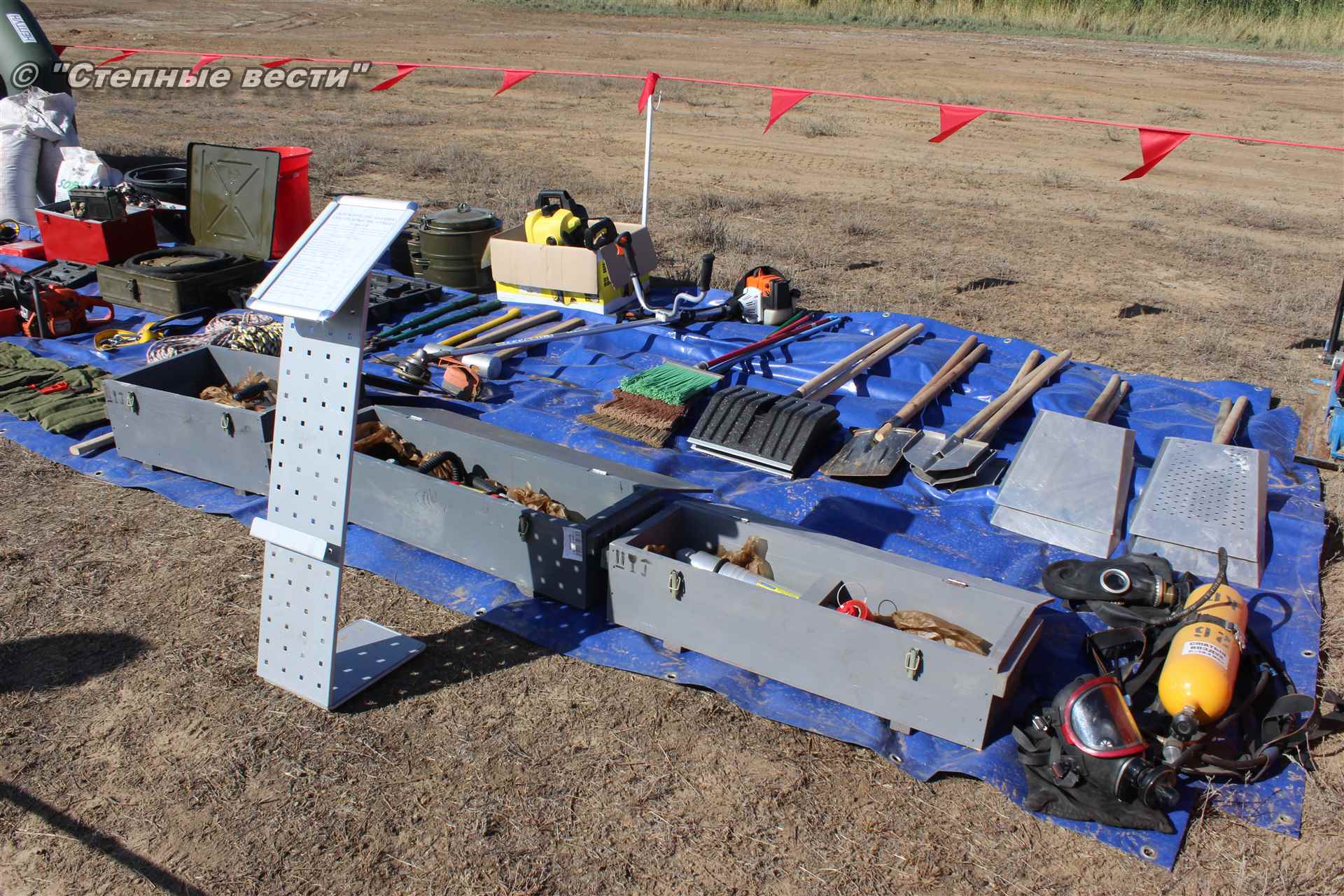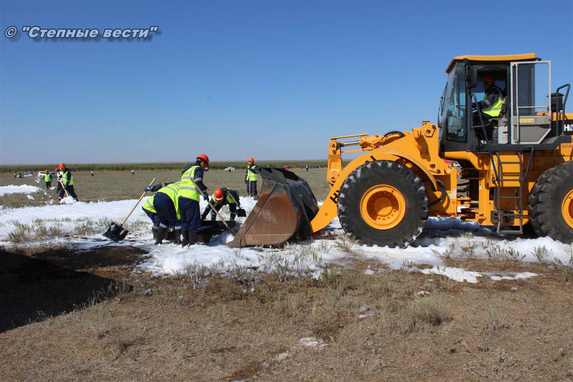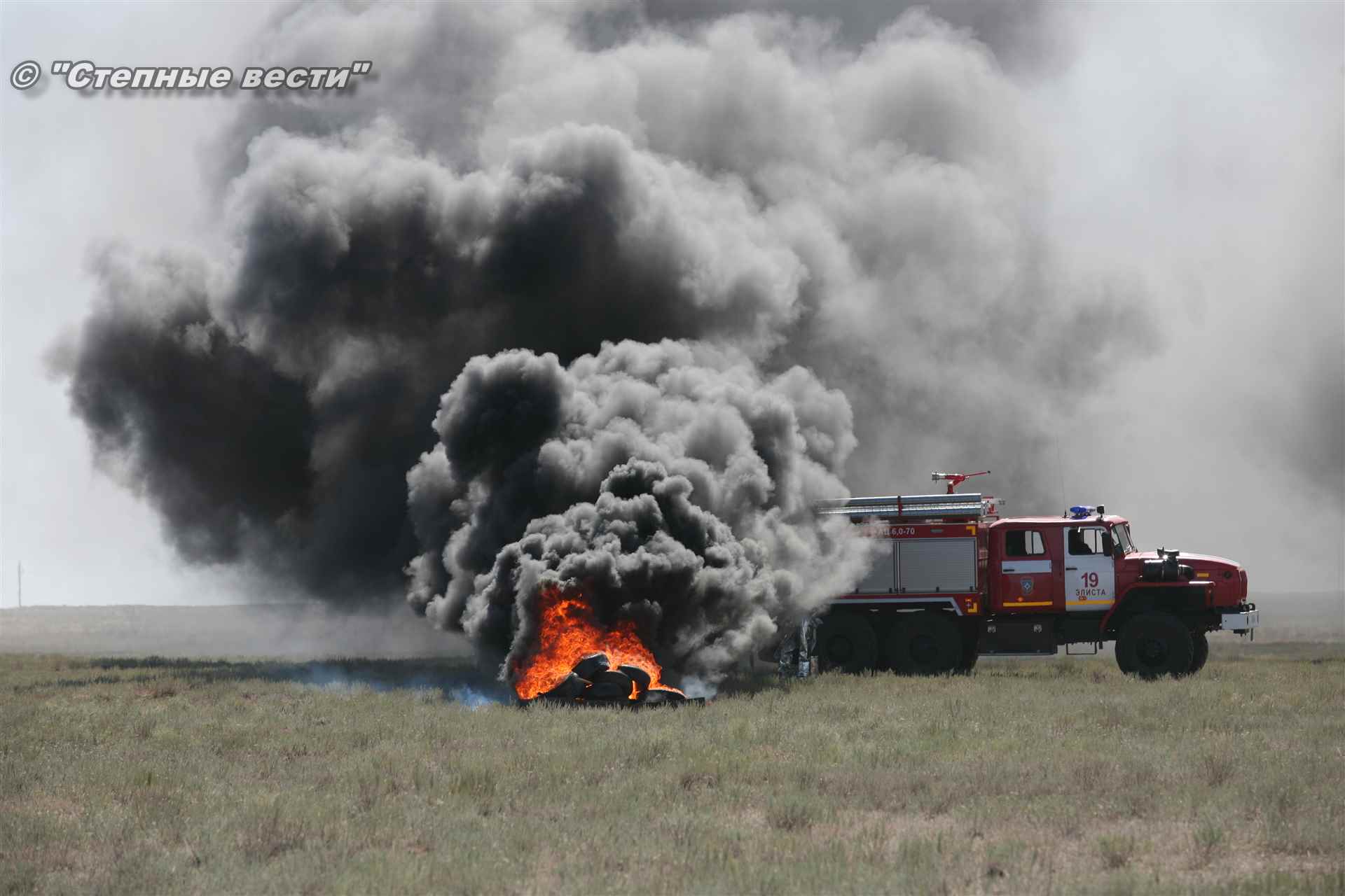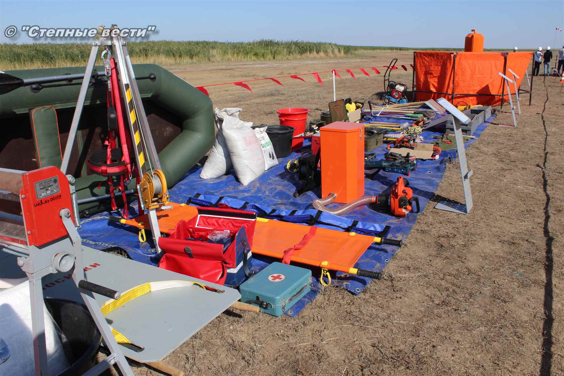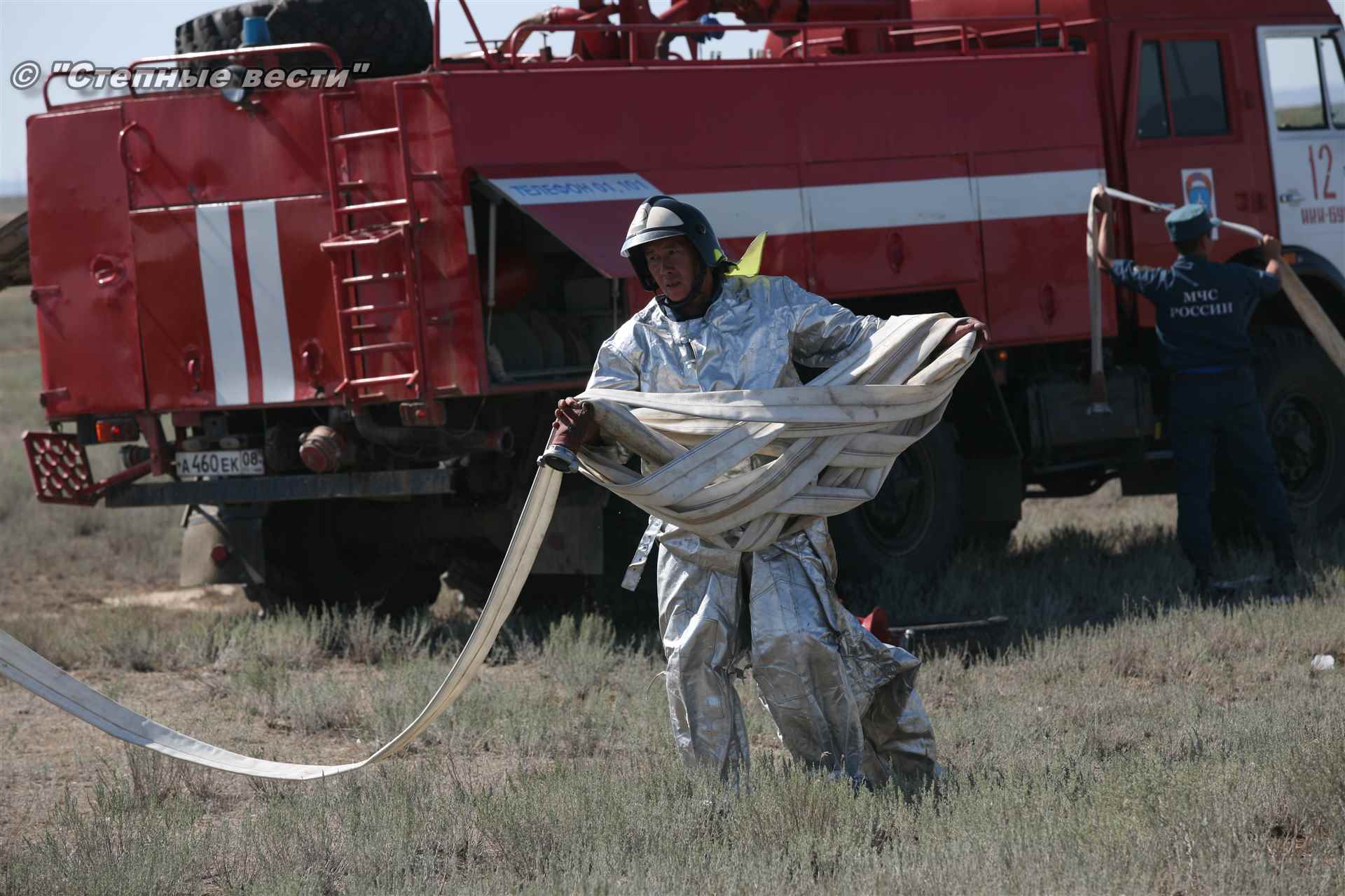 Учения развернулись в степи, близ реки Маныч. Здесь можно было насладиться ароматом полыни, посмотреть технику и оборудование, которые применяют во время подобных мероприятий, в том числе те же боновые заграждения, протянутые к водоему, и понаблюдать, как спасатели ловко тушат огонь с помощью пенной атаки. Зрелище получилось эффектное, в большей степени из-за контрастности: устрашающе-черный дым на фоне синего неба и белоснежная воздушно-механическая пена, полностью подавившая возгорание. Впечатлили и сами спасатели — в серебристой теплоотражательной одежде, предназначенной для защиты личного состава подразделений пожарной охраны от интенсивного теплового излучения, высоких температур окружающей среды и кратковременного контакта с открытым пламенем.