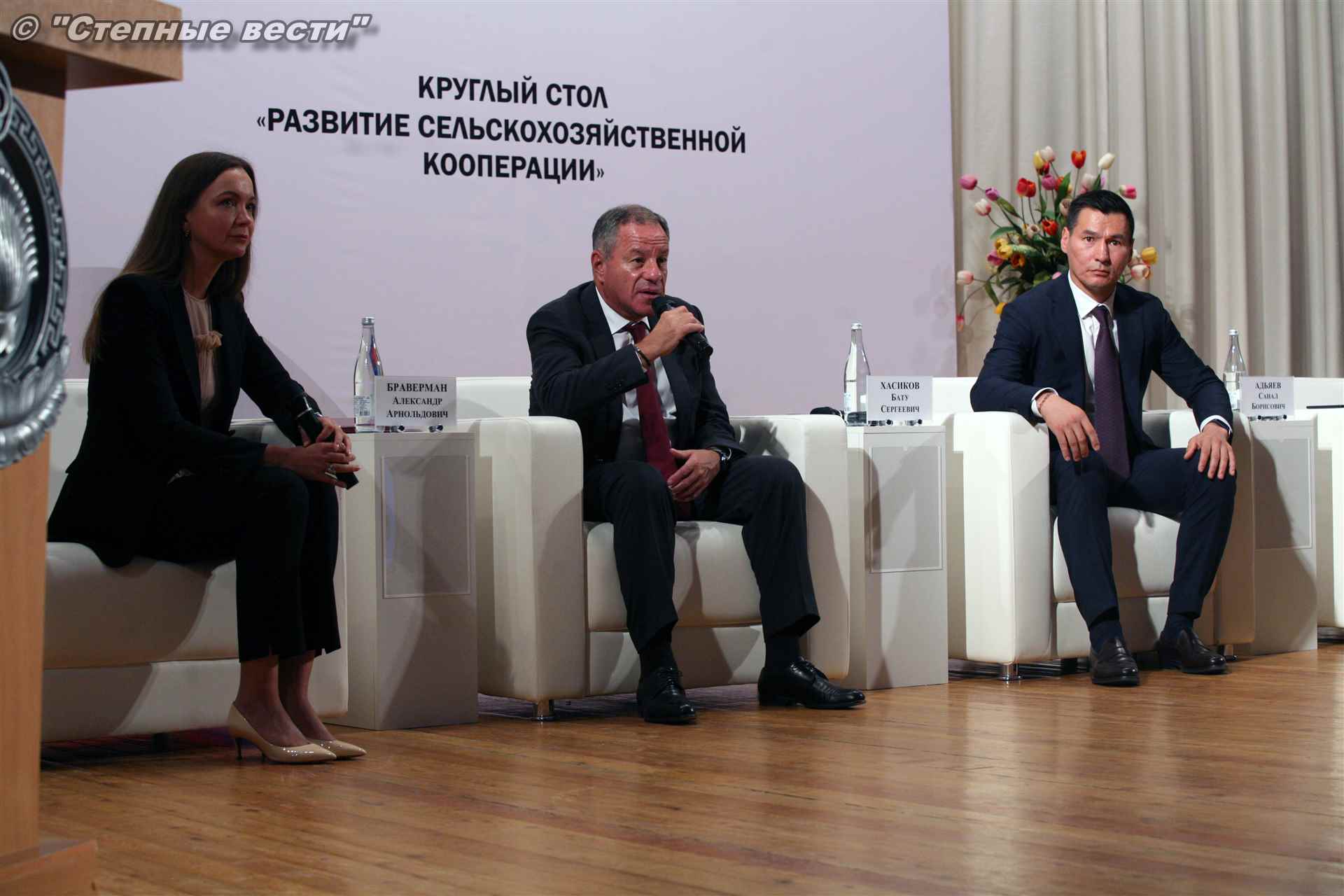 Руководитель АО «Корпорация «МСП» и врио главы республики Бату Хасиков также приняли участие в круглом столе, посвященном вопросам участия субъектов МСП в закупках крупнейших заказчиков, а также в диалоге с предпринимателями на тему перспектив сельскохозяйственной кооперации в регионе. Калмыцкие фермеры, занимающиеся выращиванием калмыцкого скота и переработкой продукции животноводства, с большим интересом восприняли выступления сотрудников дирекции по развитию сельхозкооперации  корпорации Елены Дубинчук и Алексея Рохлина, специалистов МСП-банка, а также советы самого Александра Бравермана о том, как лучше селянам из числа владельцев личных подворий организовать свое дело.