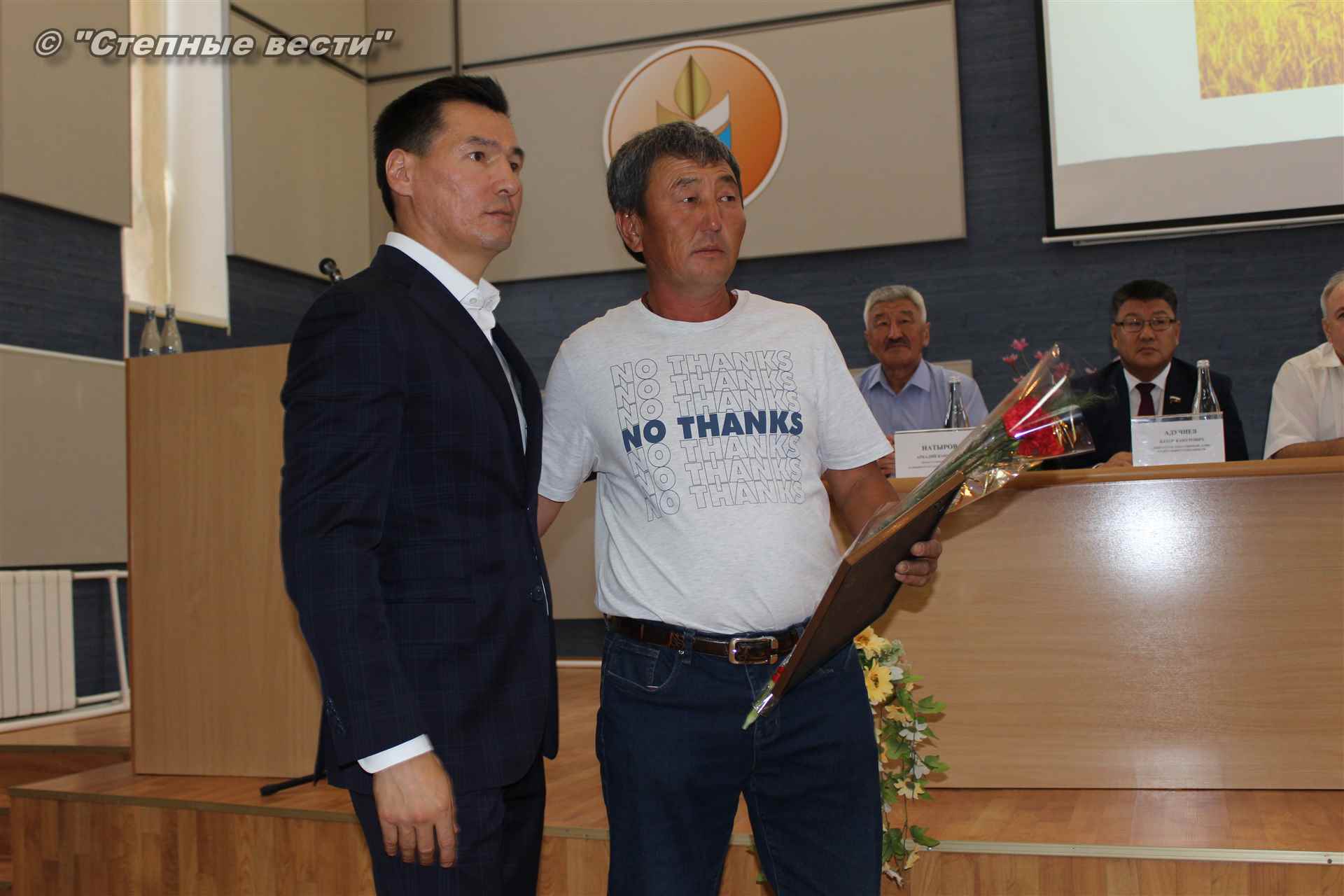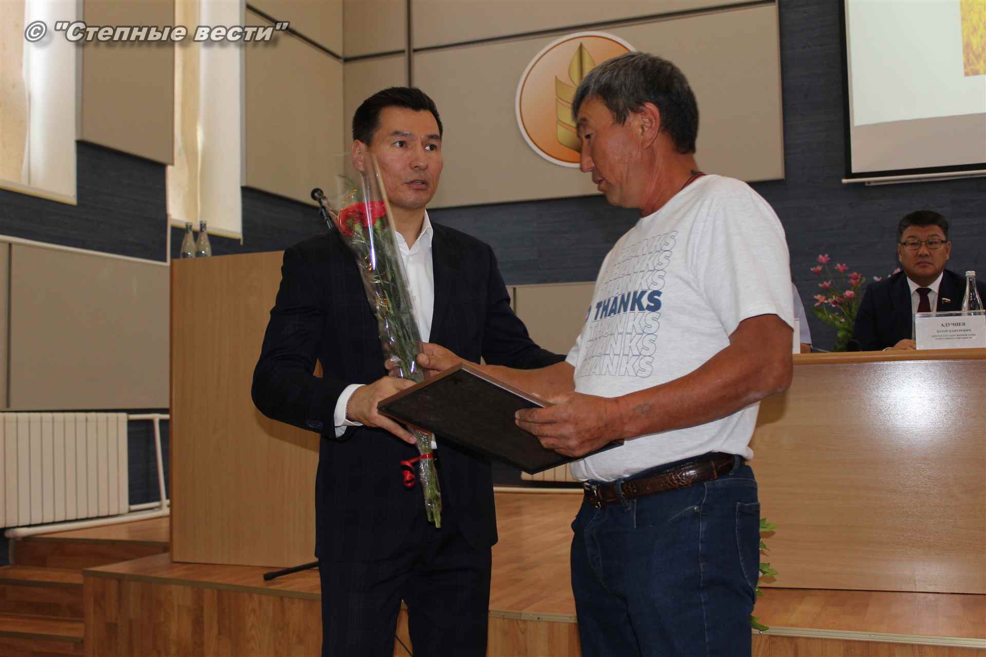 В ходе заседания Бату Хасиков также вручил благодарности комитета Совета Федерации РФ по аграрно-продовольственной политике и природопользованию главам КФХ Владимиру Булхукову и Александру Вороьеву, а также старшему гуртоправу КФХ Николаю Манджиеву.