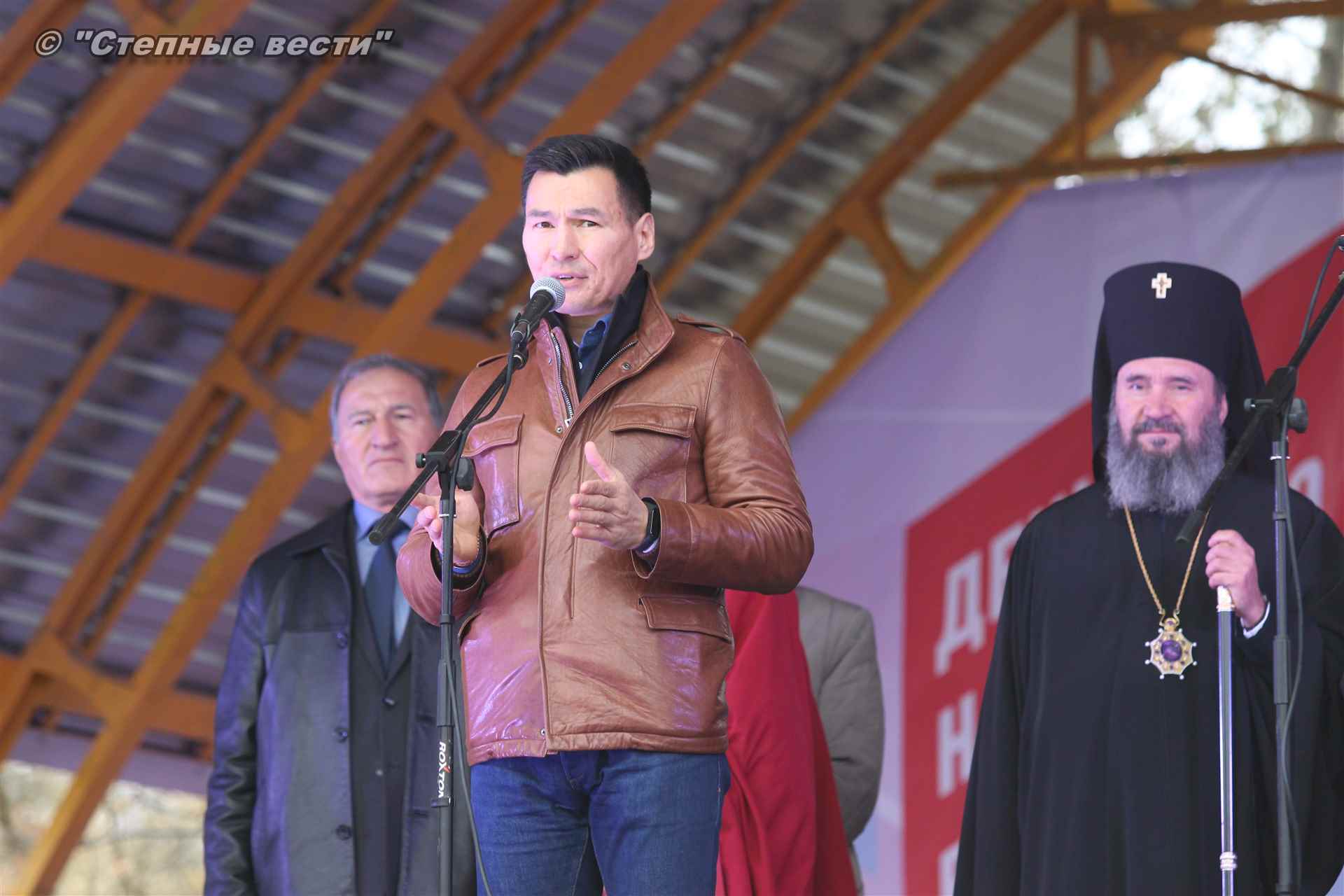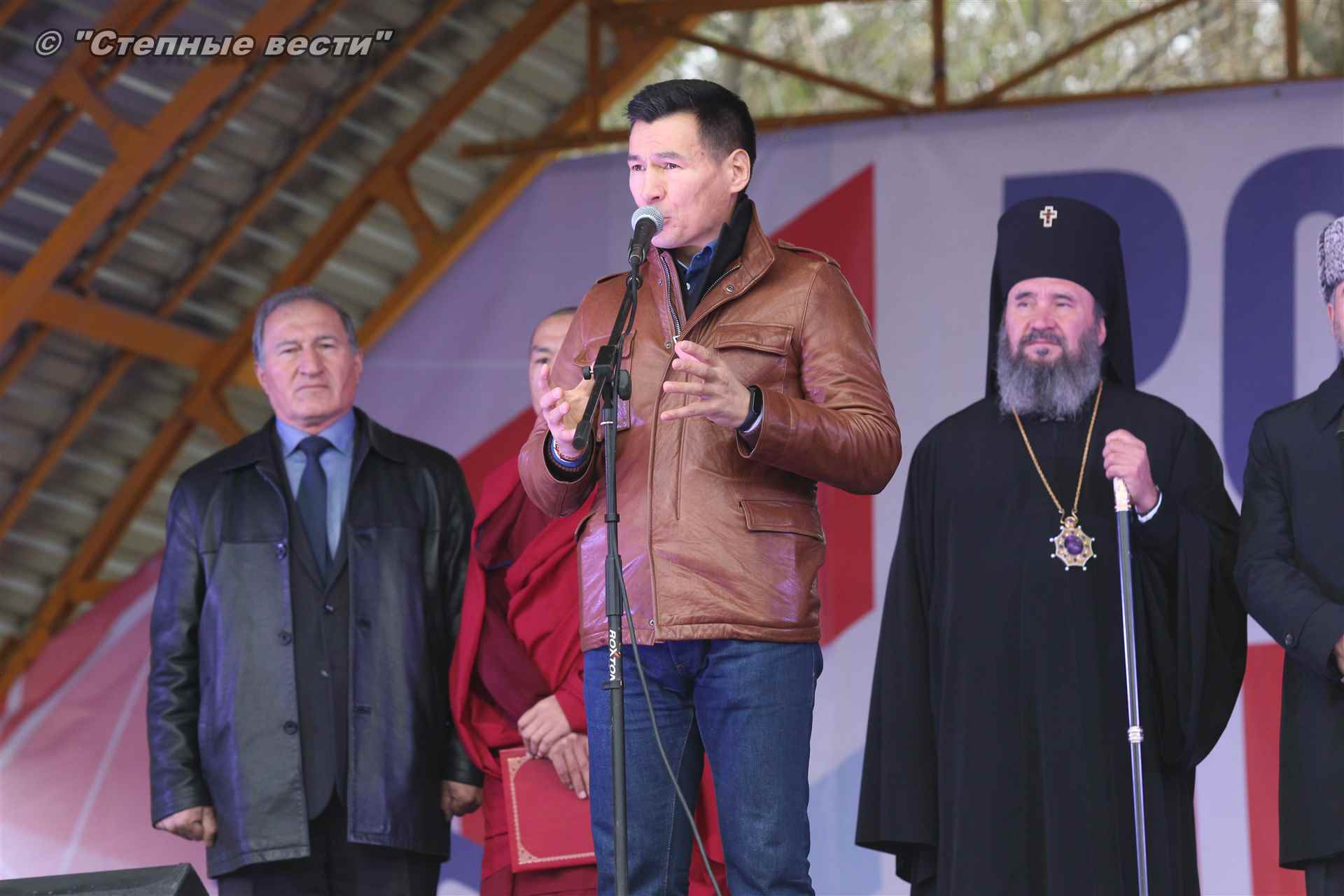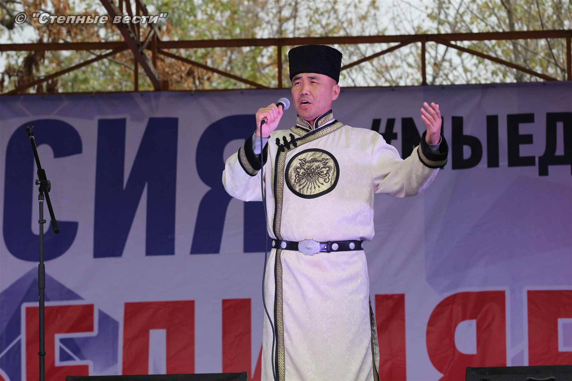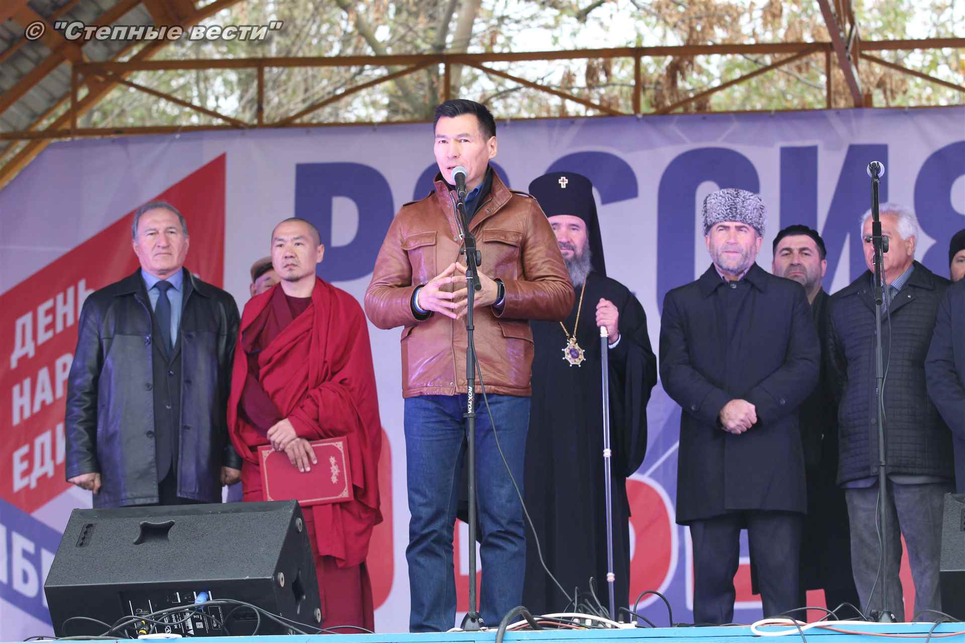 Глава РК Бату Хасиков приветствовал на калмыцком и русском языках собравшихся. Поздравляя жителей республики с Днем народного единства, он подчеркнул, что этот праздник несет глубокий смысл. Он отметил, что для нашей многонациональной страны этот праздник особый. Особый и для нашей республики, на территории которой на протяжении веков живут разные народы. Мы дружим искренне и крепко, в этом наши сила и мудрость, напомнил руководитель региона. «И если у нас есть этот фундамент, основанный на сплоченности, дружбе, взаимопонимании, то мы сможем преодолеть все сложности», — сказал Бату Сергеевич.
