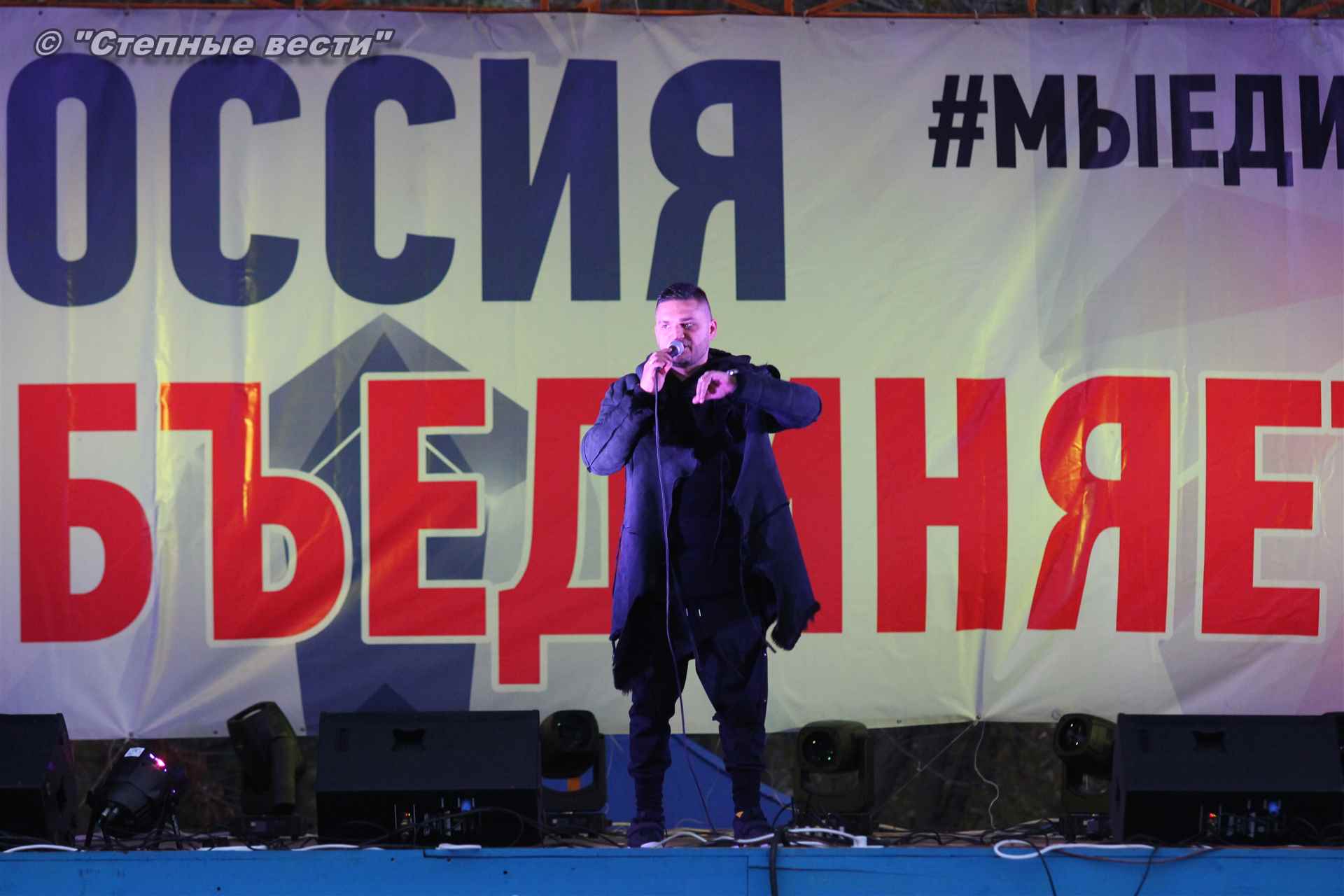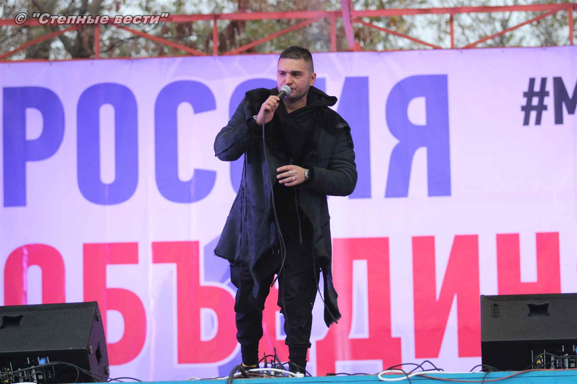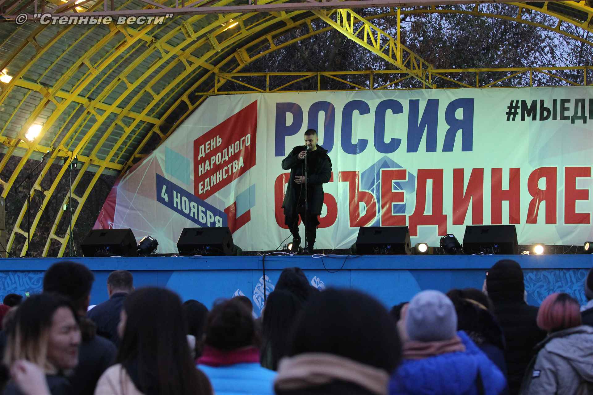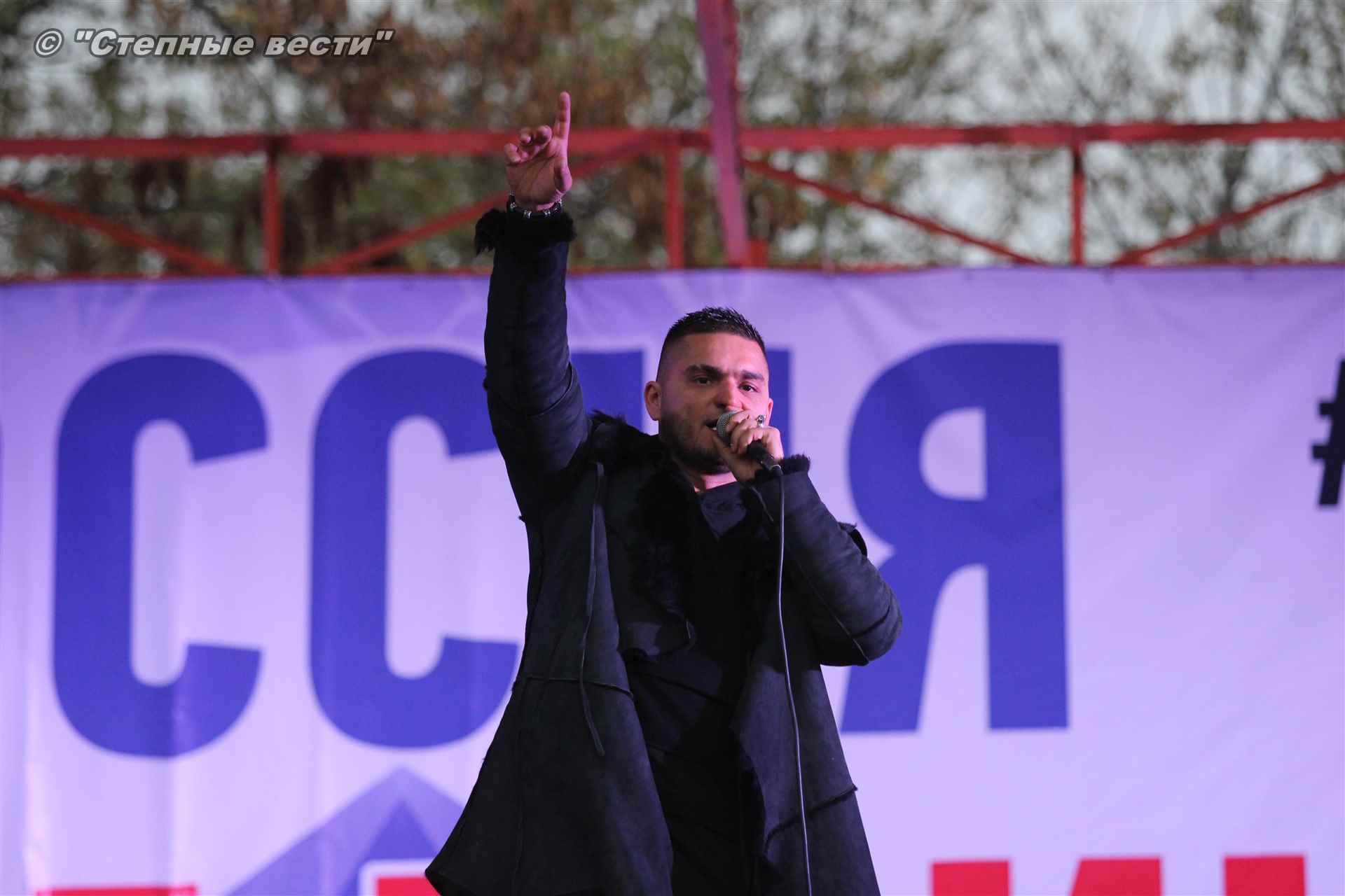 Почти до 16.00 час. на площади Победы перед жителями Элисты и гостями столицы выступали известные творческие коллективы и исполнители. А затем на сцене появились звезды российской эстрады – певец, поэт Батишта и рэп-исполнитель Dino MC 47.