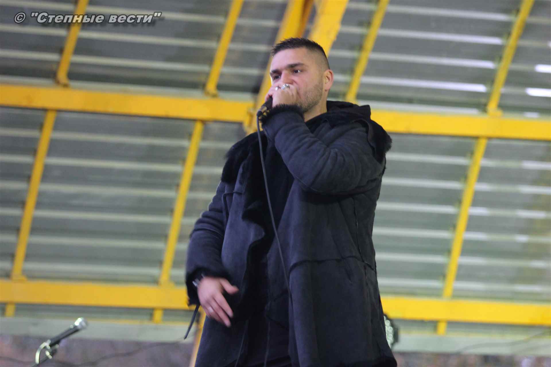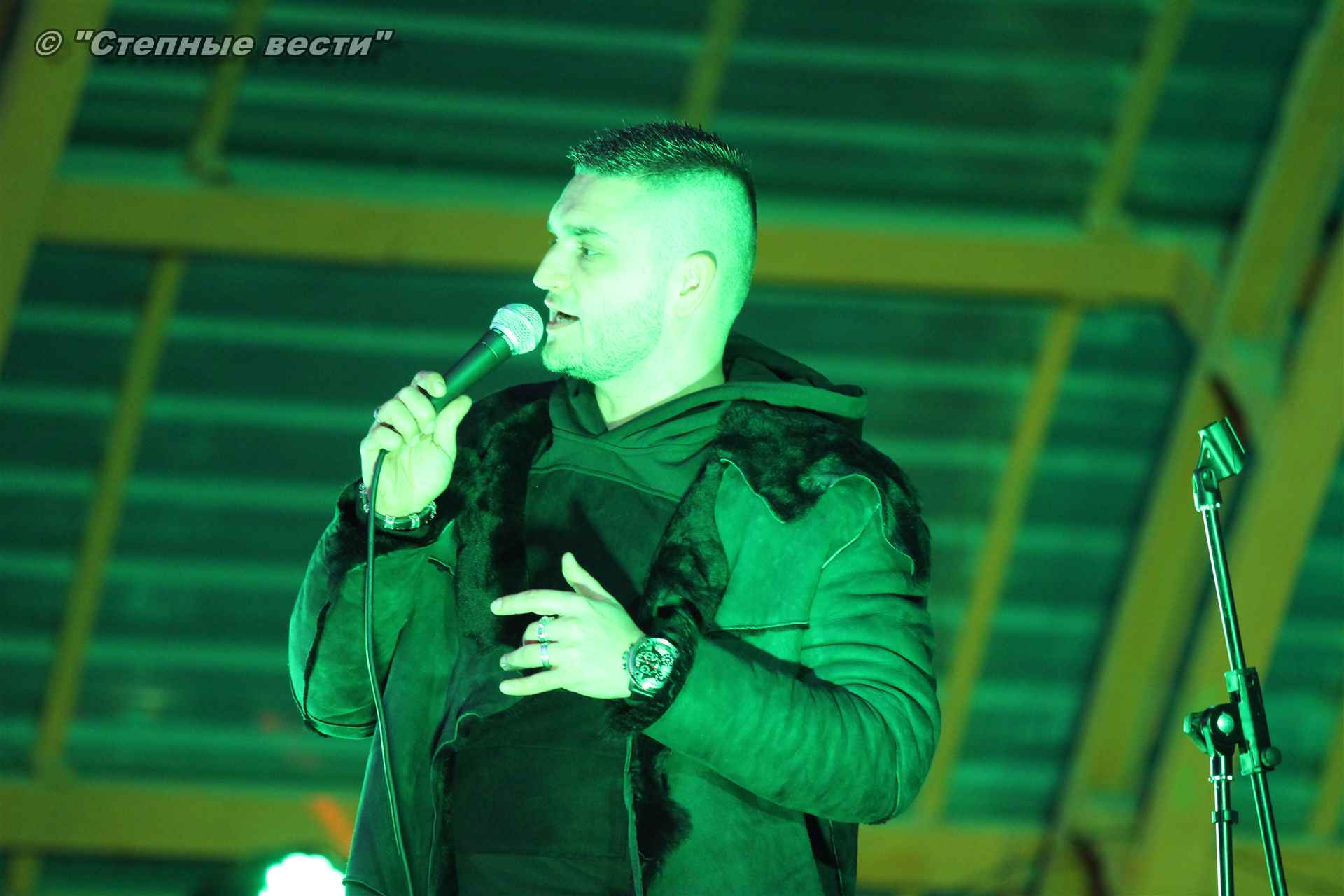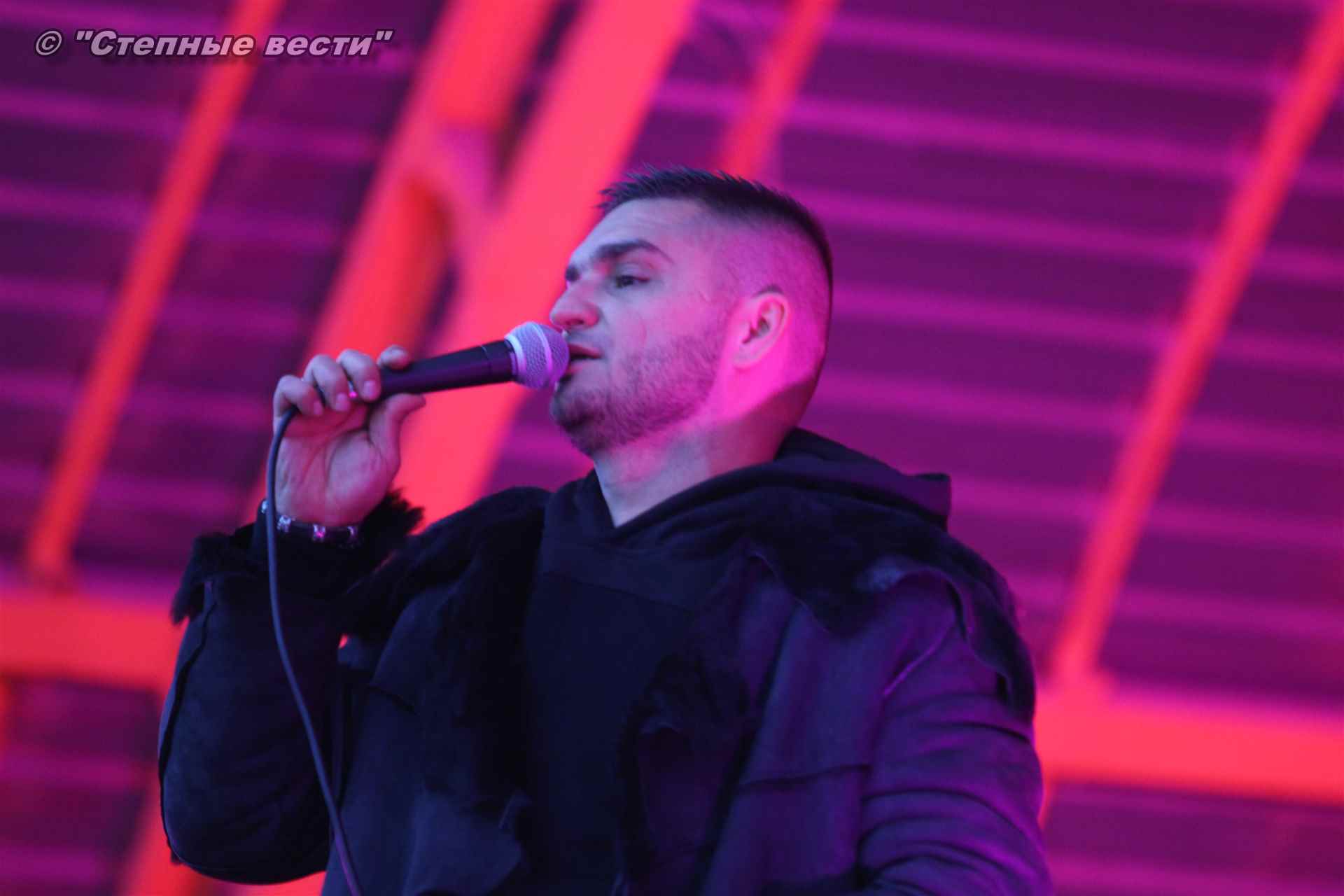 Dino MC 47, вышедший на сцену после Батишты, рассказал, что он не первый раз в Калмыкии. Молодой человек поздравил зрителей с праздником и предложил: «Давайте немного пошумим». То есть, повеселимся.