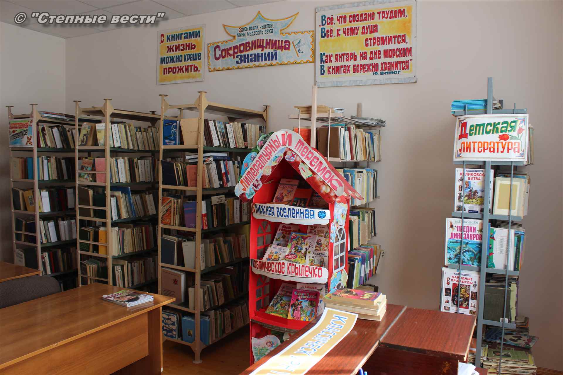 Библиотека располагается в небольшом кабинете. По словам Натальи Басанговны, прежде, до ремонта, «пол был ужасный, латала его вместе с техничками». Протекала и кровля, из-за чего приходилось, спасая от воды книги и журналы, накрывать полки полиэтиленовыми пленками, расставлять повсюду тазы. Зато теперь в библиотеке – красота! Наверняка это отметят и постоянные читатели, самые активные из которых уважаемые Лидия Коздуевна Хахирова и Иван Михайлович Столяренко.