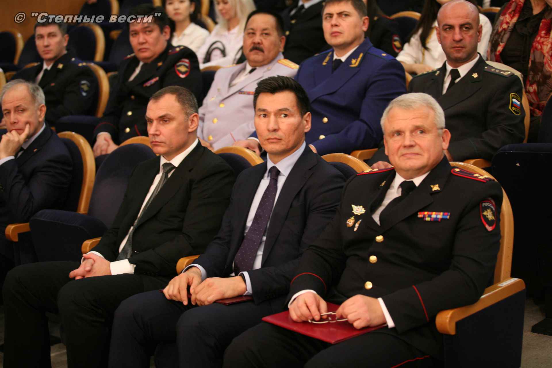 В начале мероприятия прозвучали гимны России и Калмыкии, было озвучено поздравление с праздником министра внутренних дел Российской Федерации генерала полиции РФ Владимира Колокольцева.