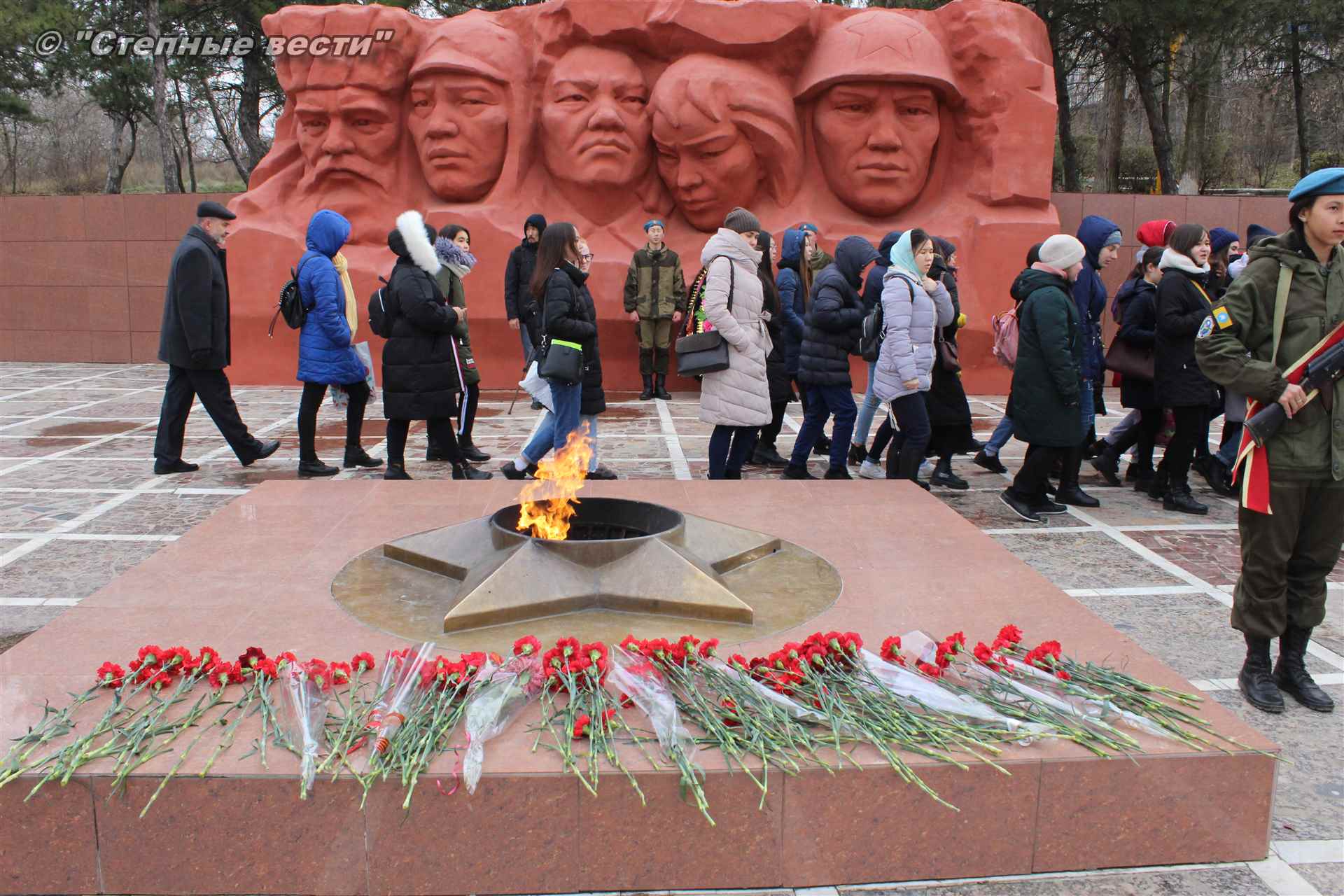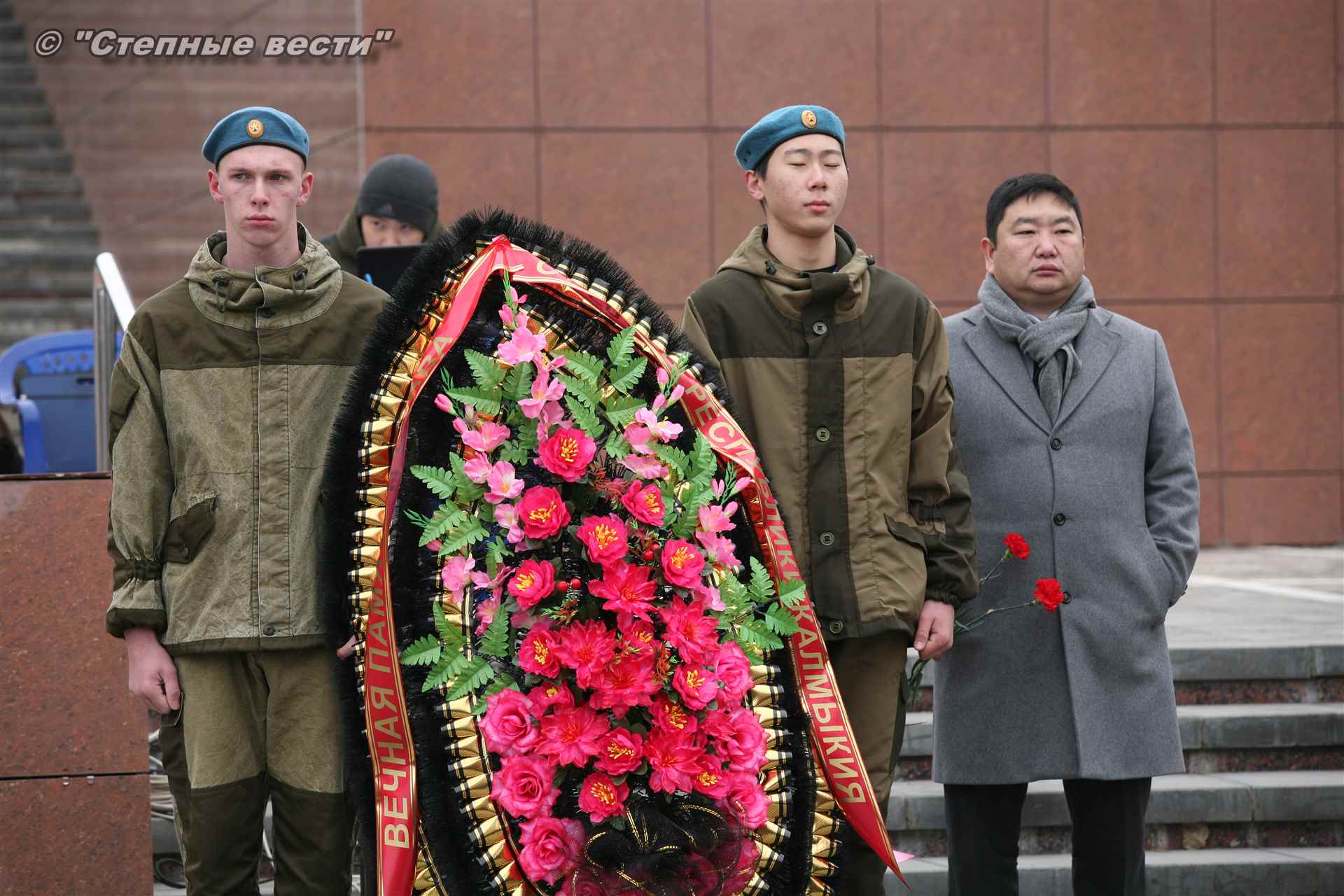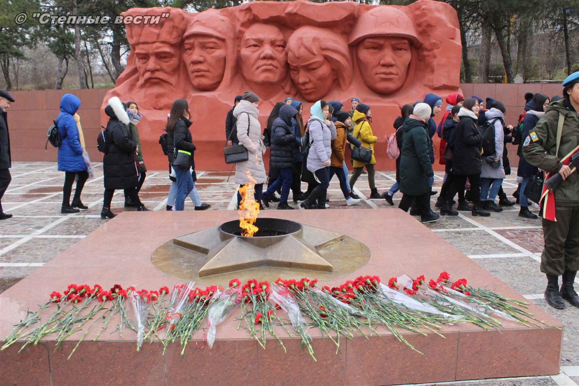 На территории мемориала «Вечный огонь» в Элисте сегодня собрались люди разных возрастов, представители общественных организаций. К Вечному огню были возложены живые цветы и памятные венки.