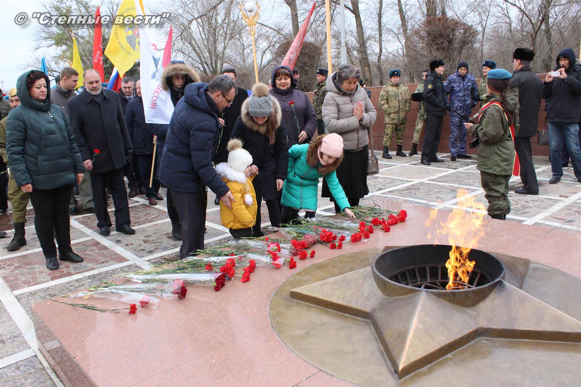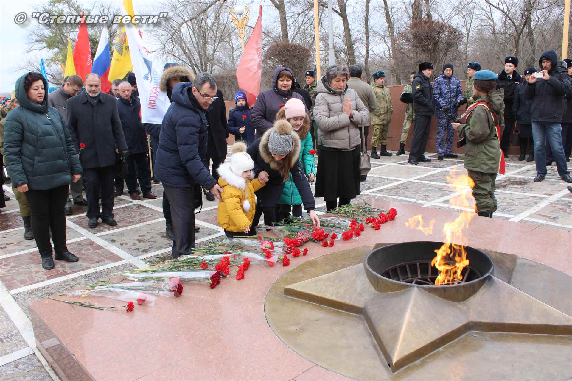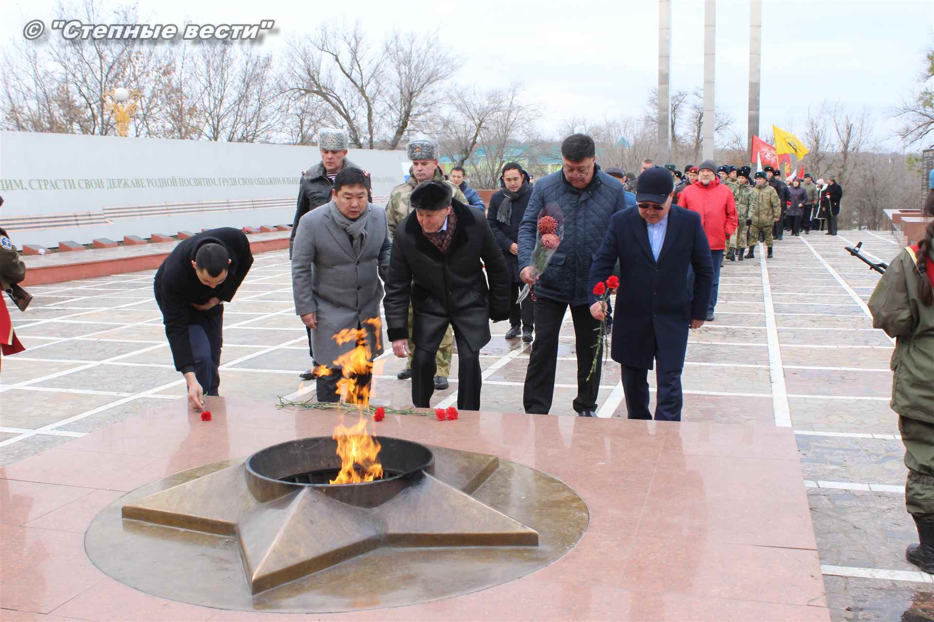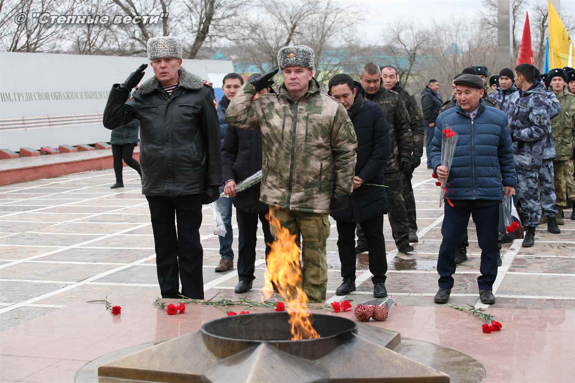 На территории мемориала «Вечный огонь» в Элисте сегодня собрались люди разных возрастов, представители общественных организаций. К Вечному огню были возложены живые цветы и памятные венки.