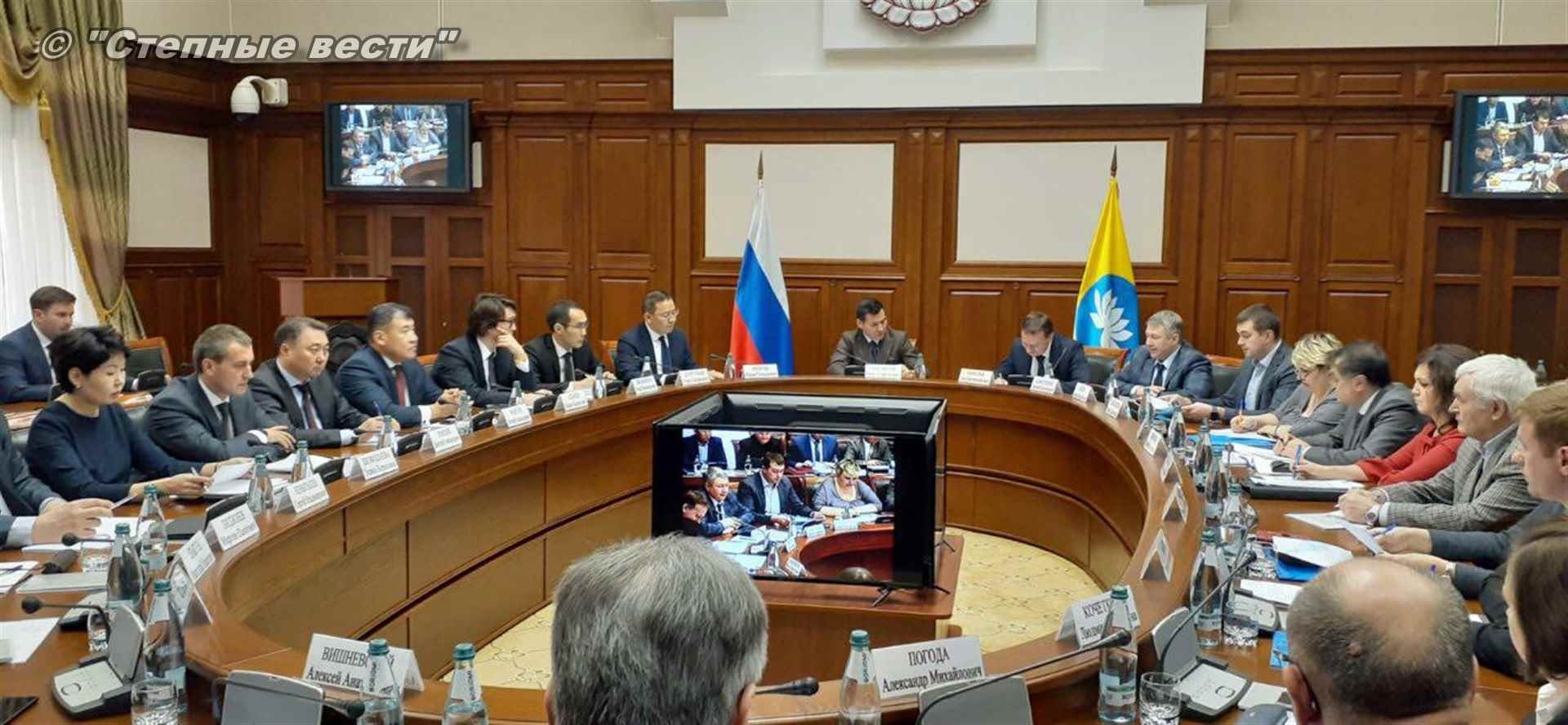 В Доме правительства сегодня состоялось первое заседание рабочей группы по вопросу обводнения Республики Калмыкия с участием главы региона Бату Хасикова и руководителя Федерального агентства водных ресурсов Дмитрия Кириллова, возглавившего делегацию от центрального аппарата Росводресурсов.
