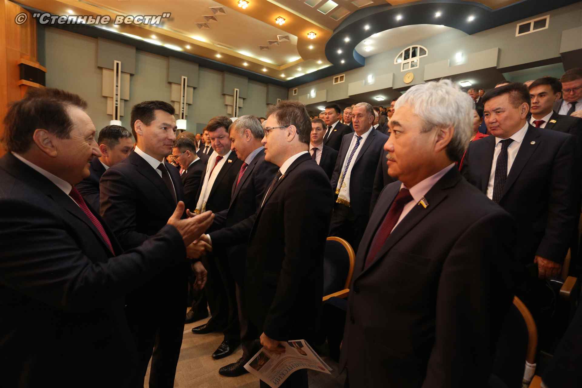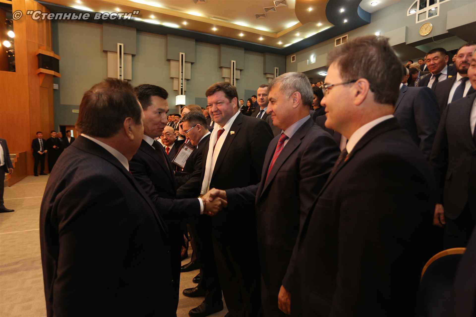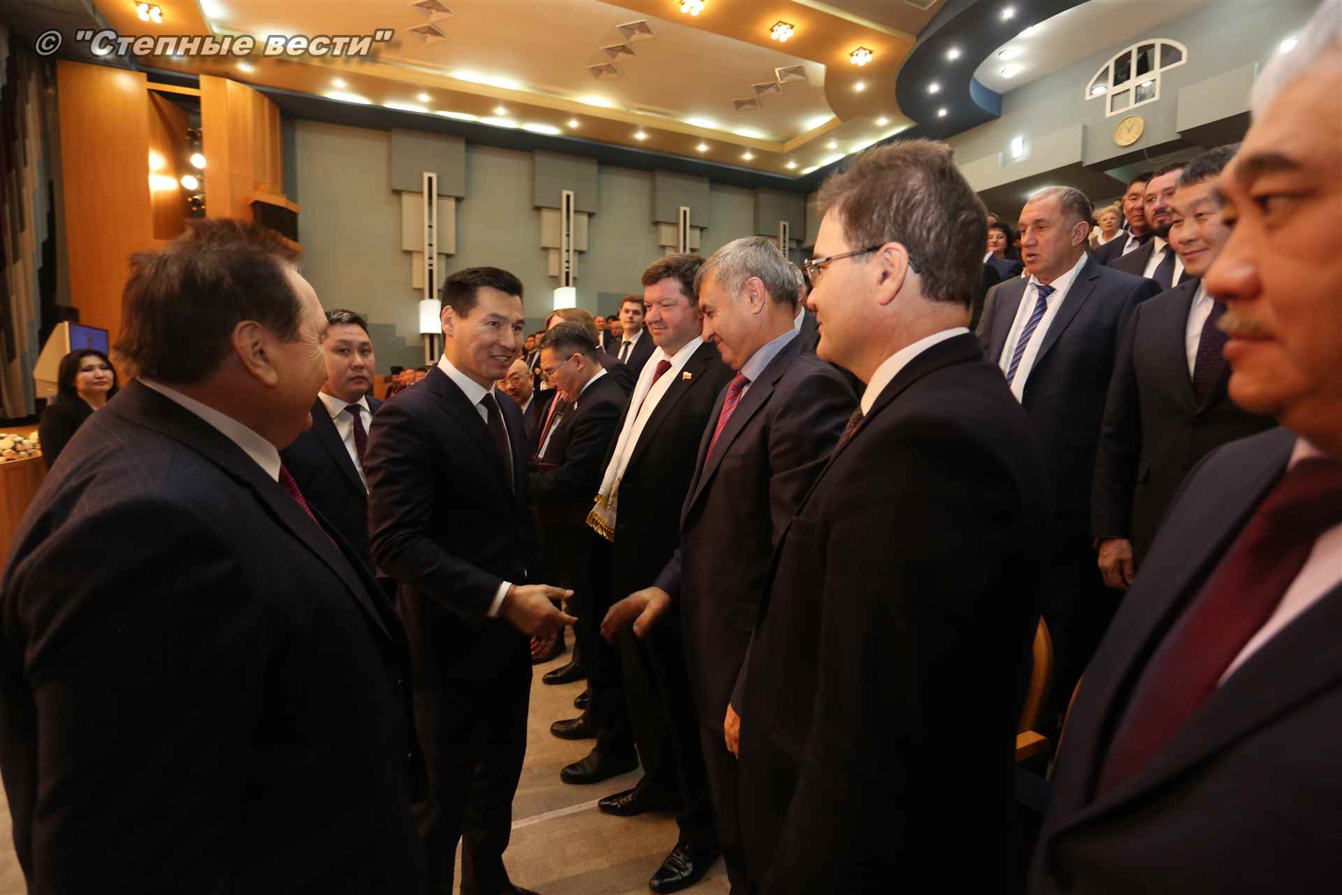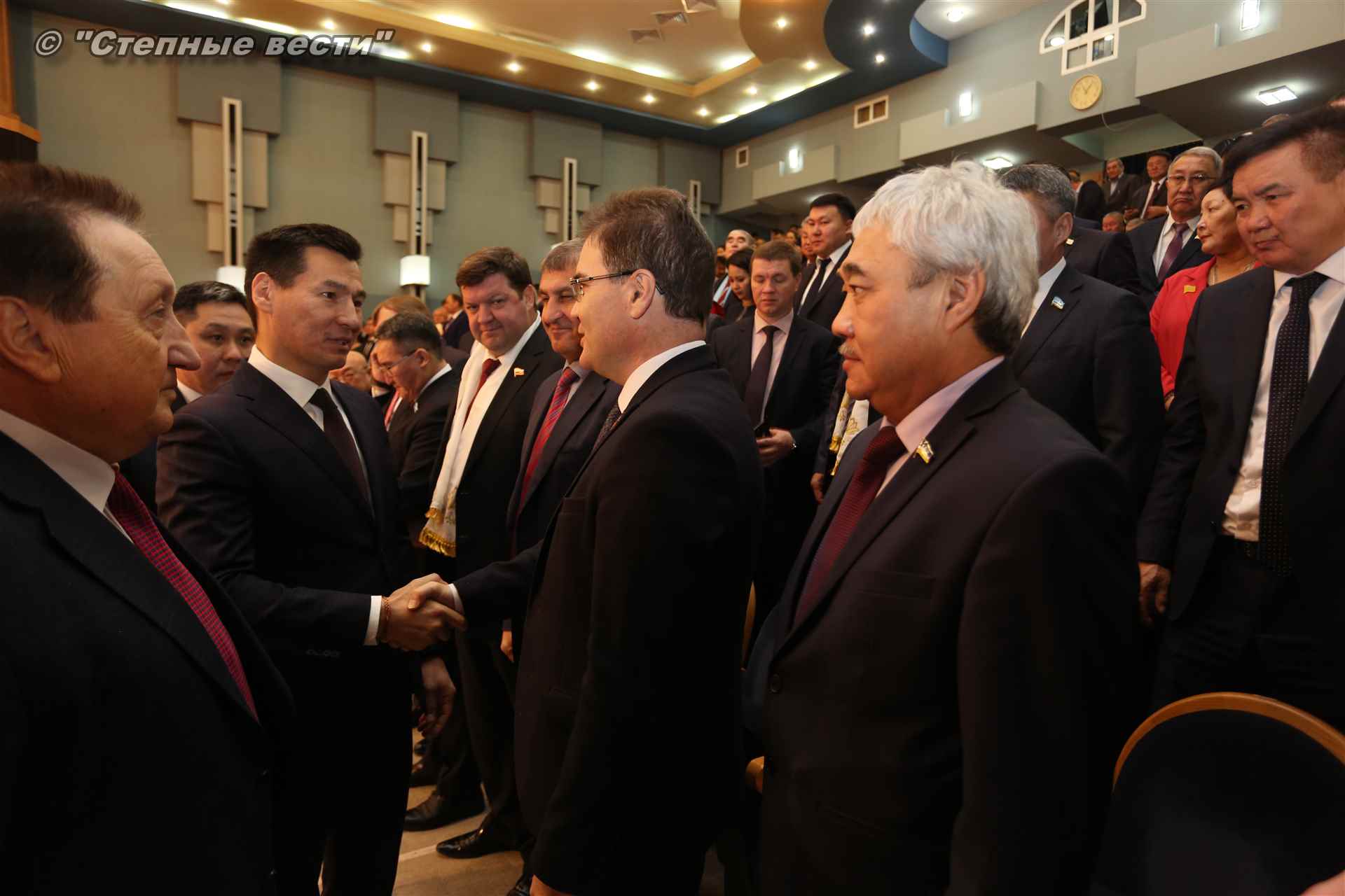Также на собрании со словами приветствия выступили депутат Госдумы Батор Адучиев, первый заместитель Председателя Правительства республики Боова Бадмаев, Председатель Законодательного Собрания Ростовской области Александр Ищенко, Председатель Государственного Собрания (Ил Тумэн) Республики Саха (Якутия) Петр Гоголев, Председатель Думы Ставропольского края Геннадий Ягубов.