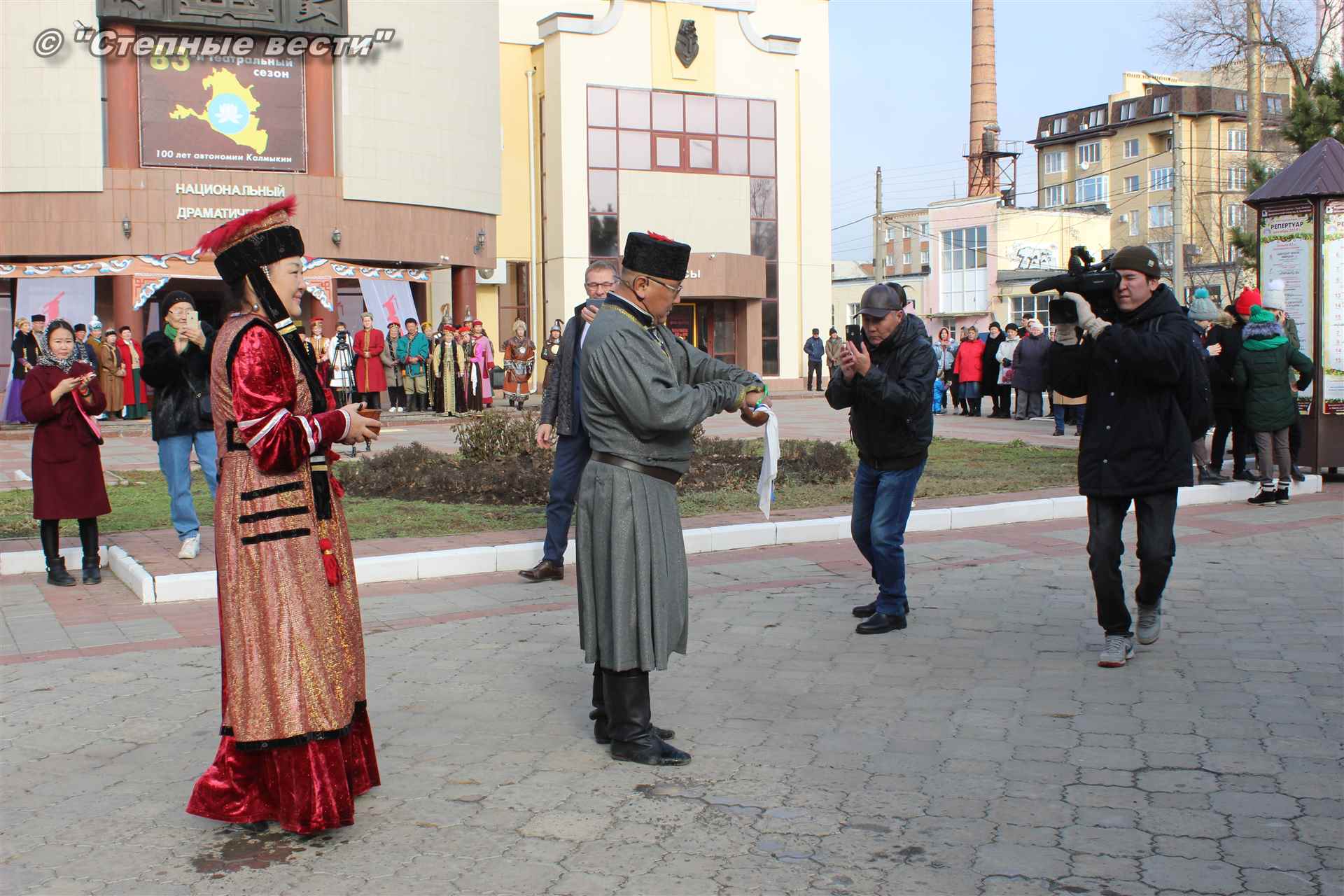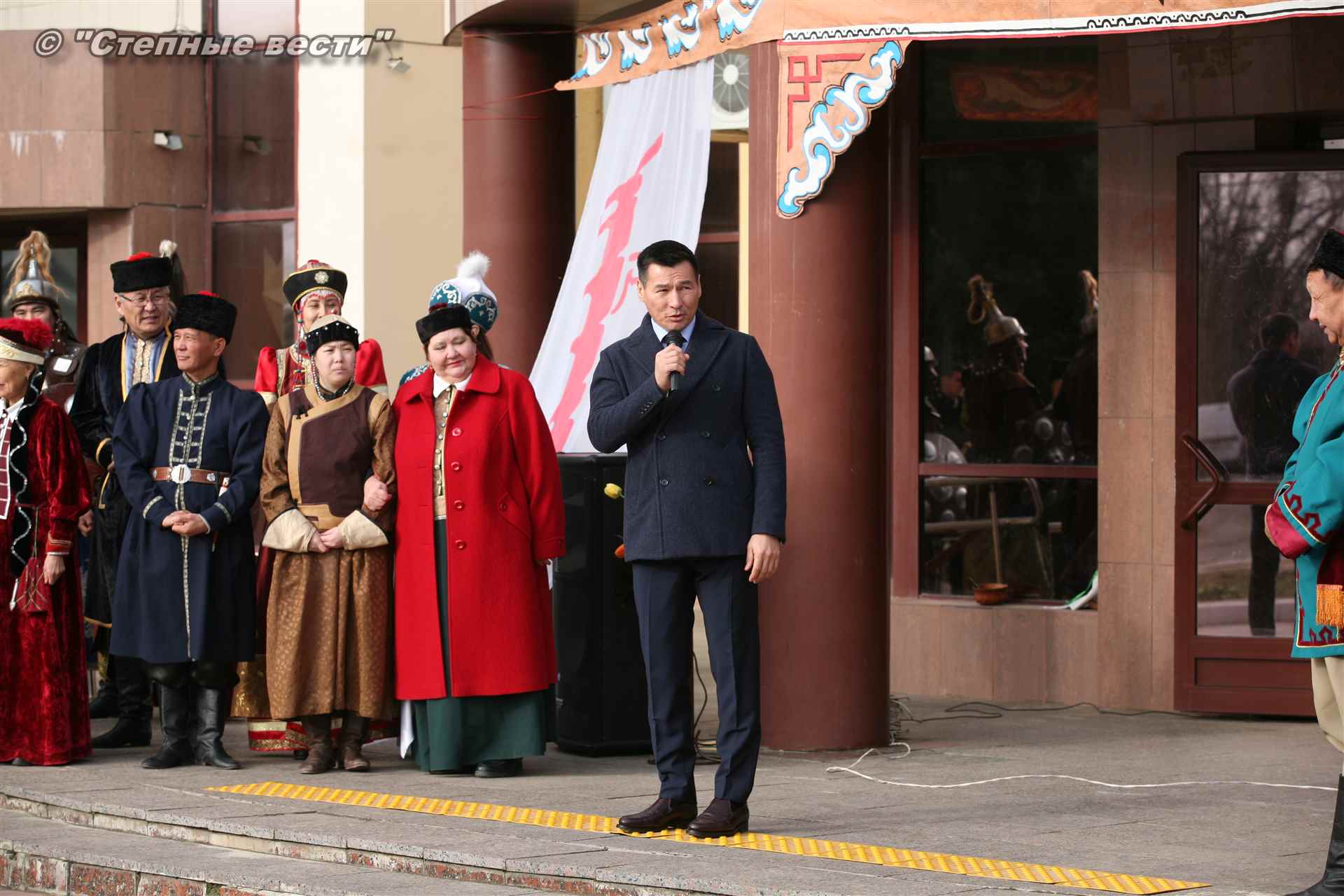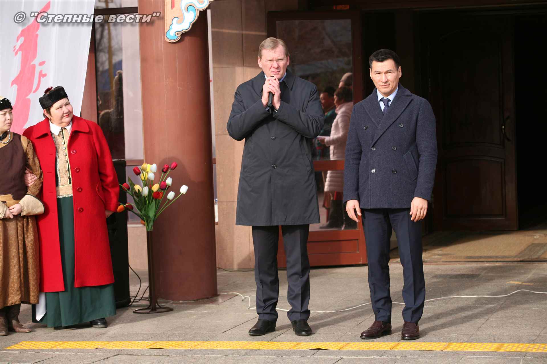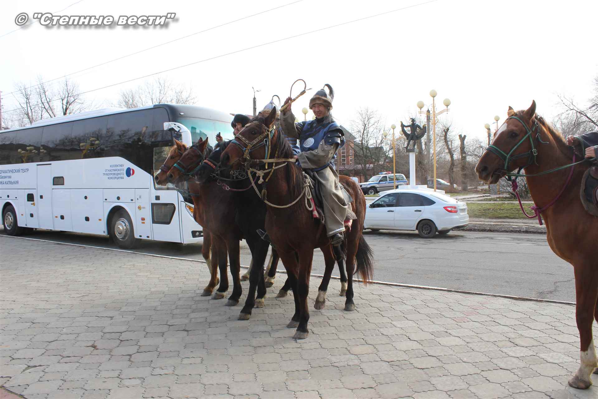 Торжественное вручение автотранспорта работникам творческого учреждения было обставлено соответственно – нетривиально, с элементами театрального действа. Почетных гостей мероприятия – Главу Калмыкии Бату Хасикова и генерального директора КТК-Р Николая Горбаня вышли встретить артисты, одетые в калмыцкие национальные костюмы, в образах героев эпоса «Джангар» — на лошадях и при доспехах.