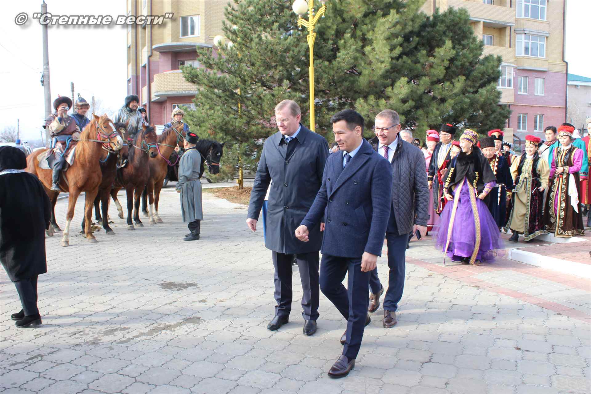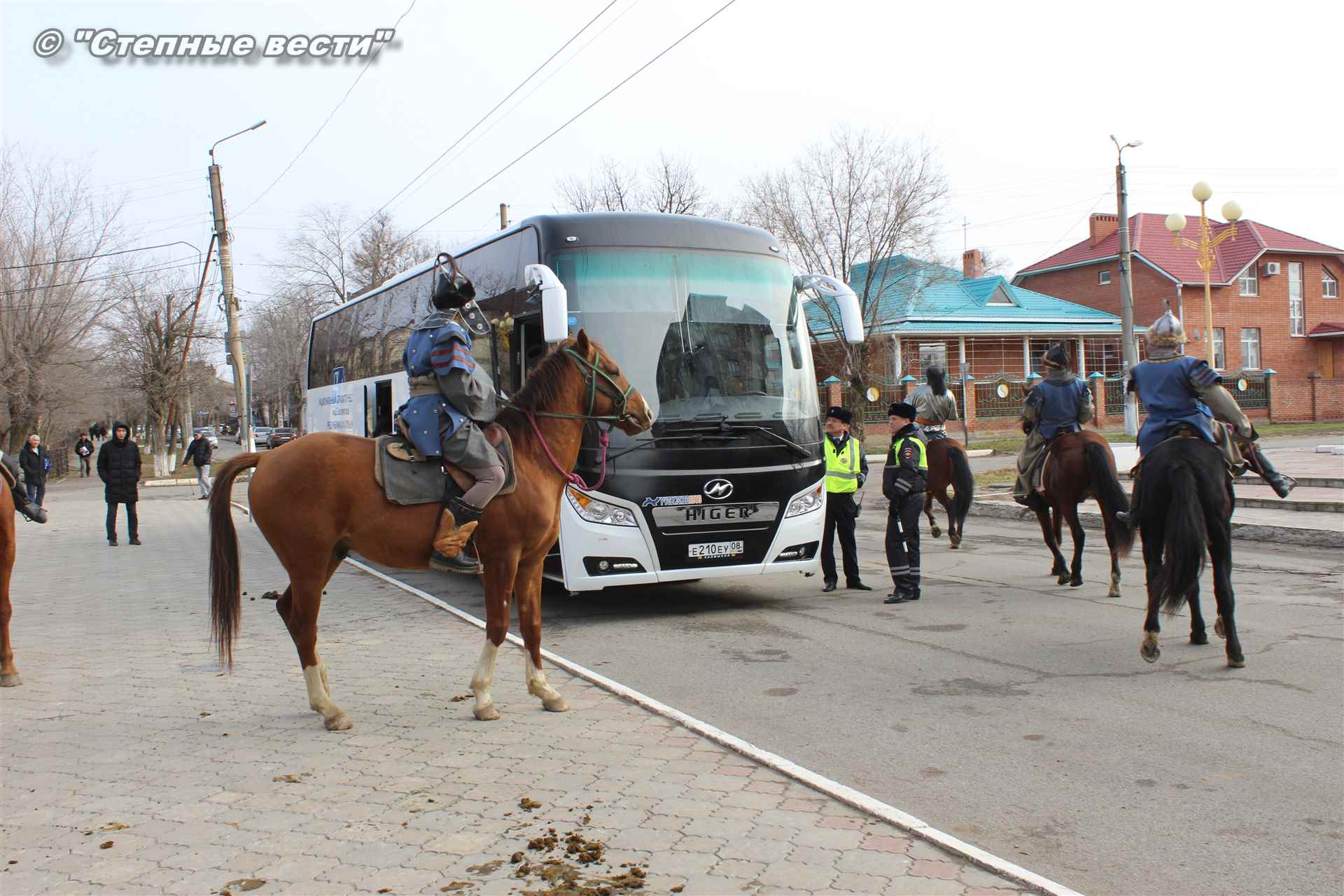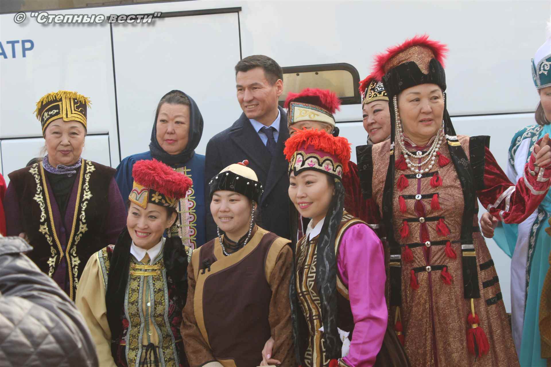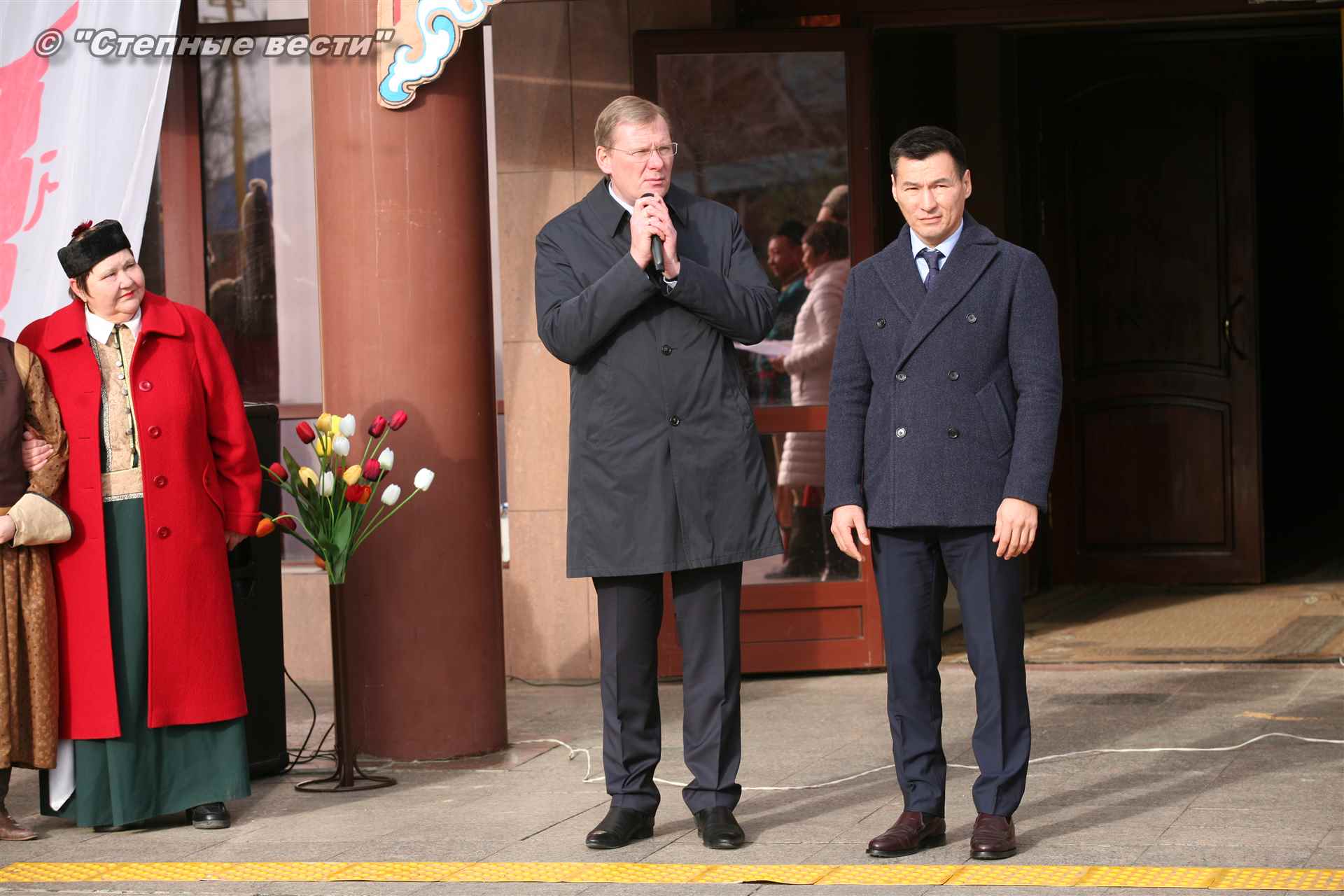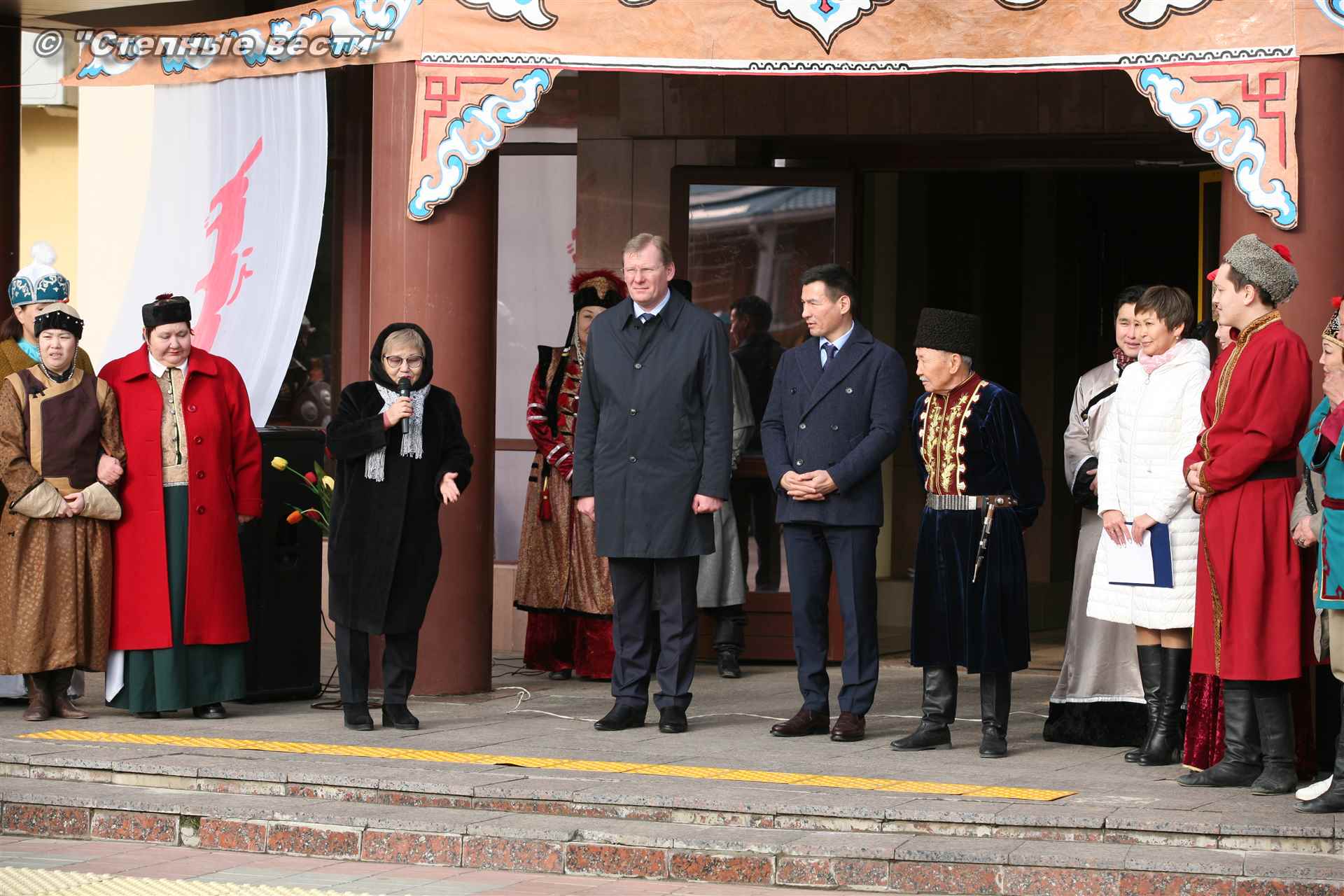Торжественное вручение автотранспорта работникам творческого учреждения было обставлено соответственно – нетривиально, с элементами театрального действа. Почетных гостей мероприятия – Главу Калмыкии Бату Хасикова и генерального директора КТК-Р Николая Горбаня вышли встретить артисты, одетые в калмыцкие национальные костюмы, в образах героев эпоса «Джангар» — на лошадях и при доспехах.