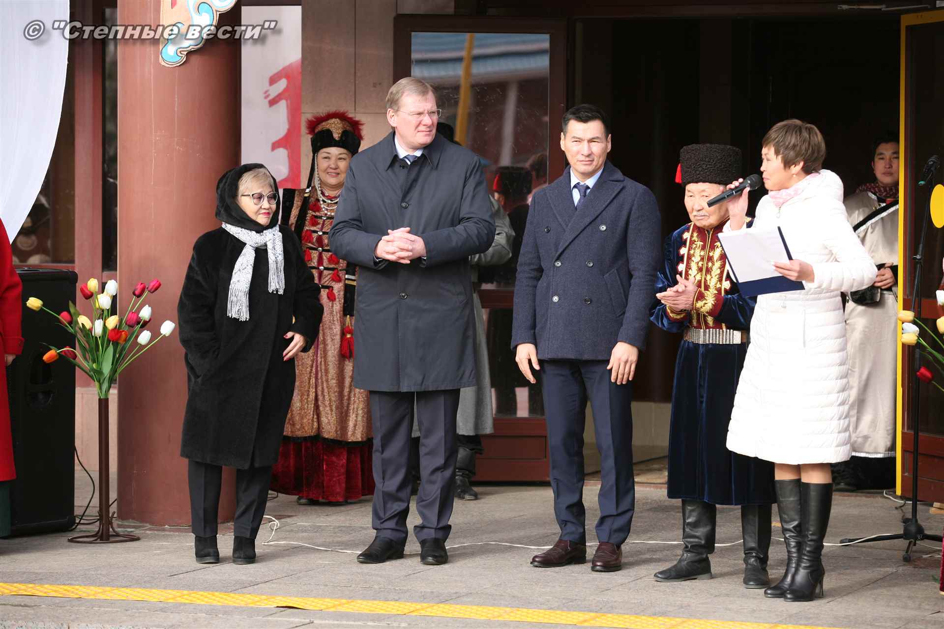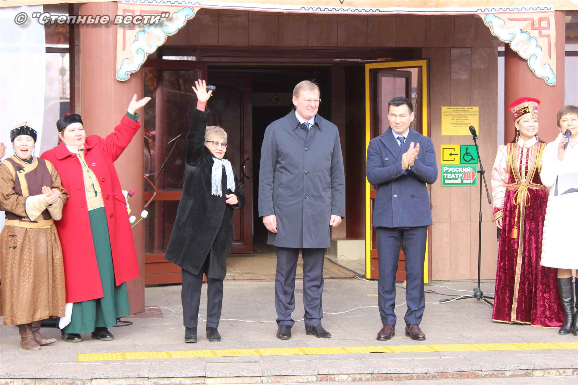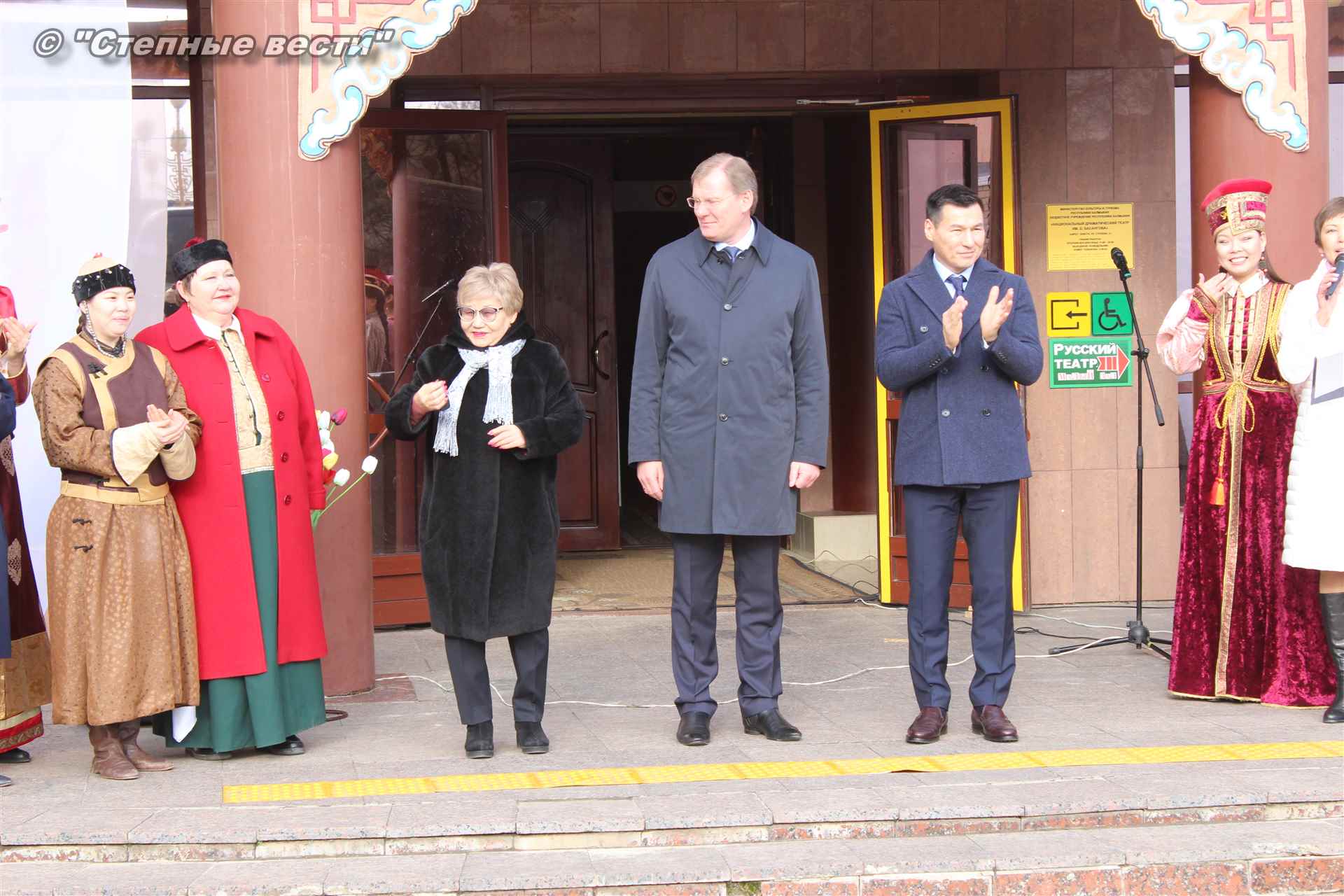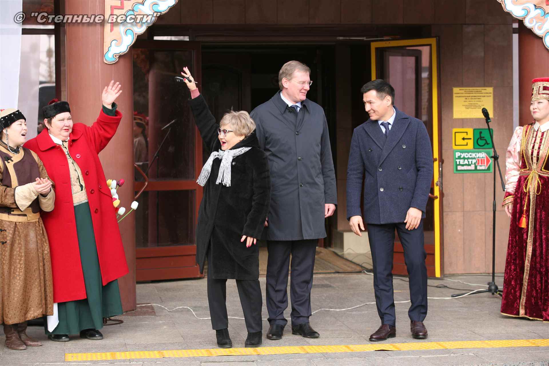 Торжественное вручение автотранспорта работникам творческого учреждения было обставлено соответственно – нетривиально, с элементами театрального действа. Почетных гостей мероприятия – Главу Калмыкии Бату Хасикова и генерального директора КТК-Р Николая Горбаня вышли встретить артисты, одетые в калмыцкие национальные костюмы, в образах героев эпоса «Джангар» — на лошадях и при доспехах.